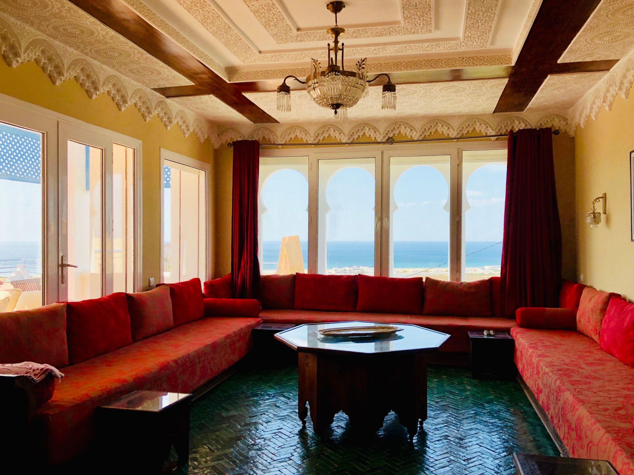 Gönnen Sie sich ein unvergessliches Erlebnis, indem Sie in unserer geräumigen Villa in Tanger übernachten. Sie wurde entworfen, um bequem bis zu 20 Personen zu beherbergen, und ist der ideale Ort für Familientreffen oder ein Wiedersehen mit Freunden. Genießen Sie die ruhige Umgebung und den atemberaubenden Blick auf den Atlantik, während Sie die besten Annehmlichkeiten für einen entspannten und sorgenfreien Aufenthalt nutzen können.