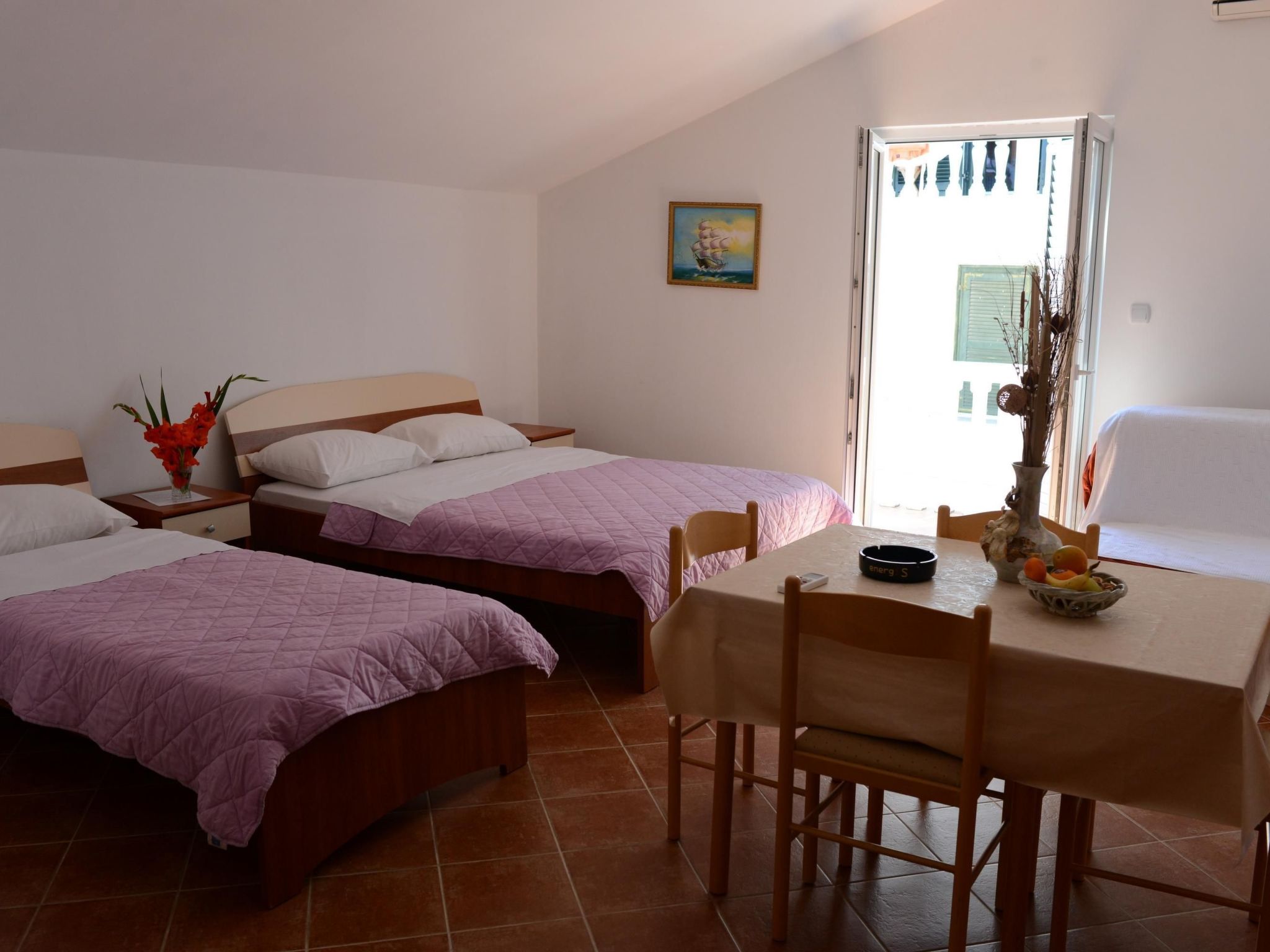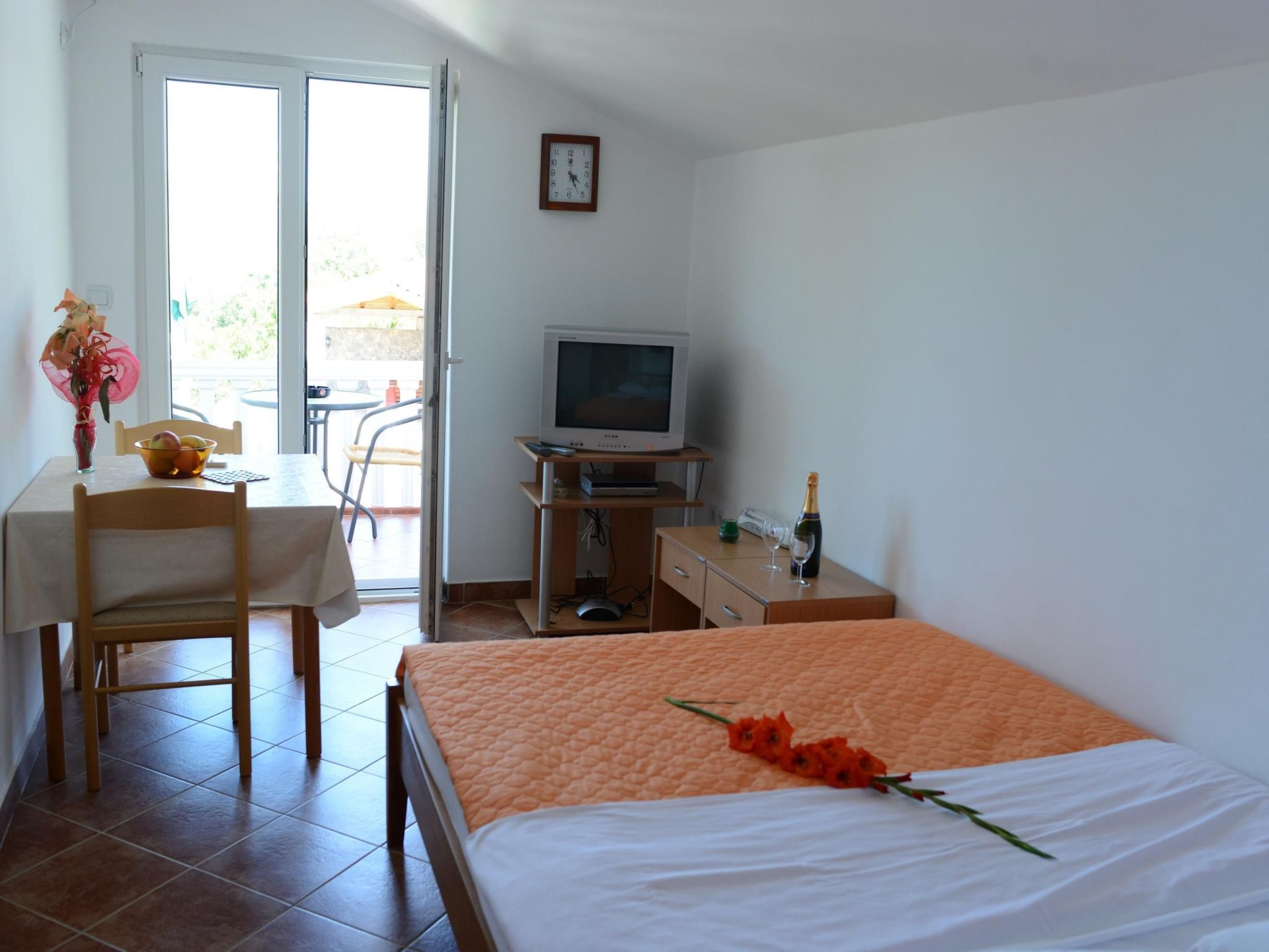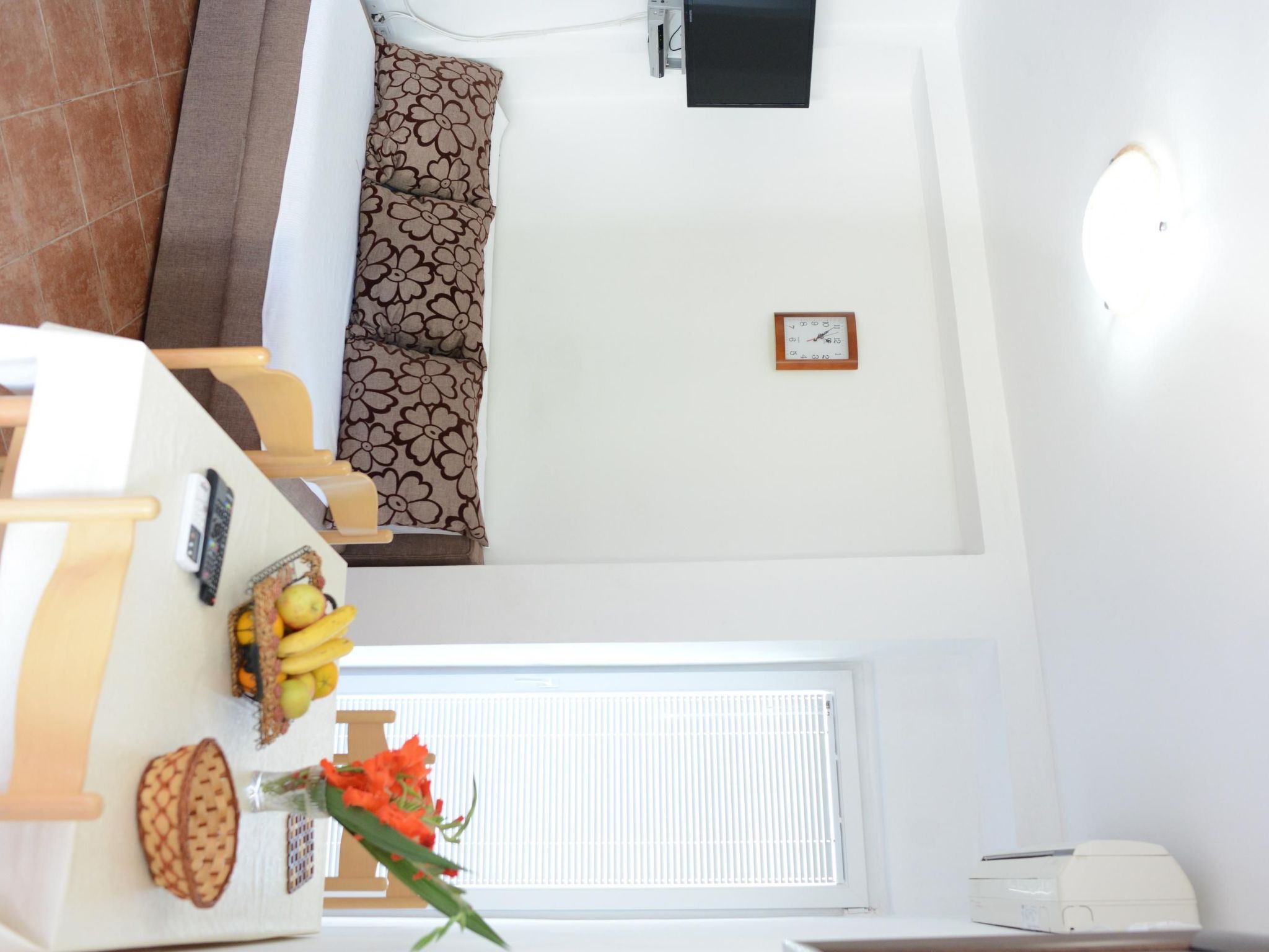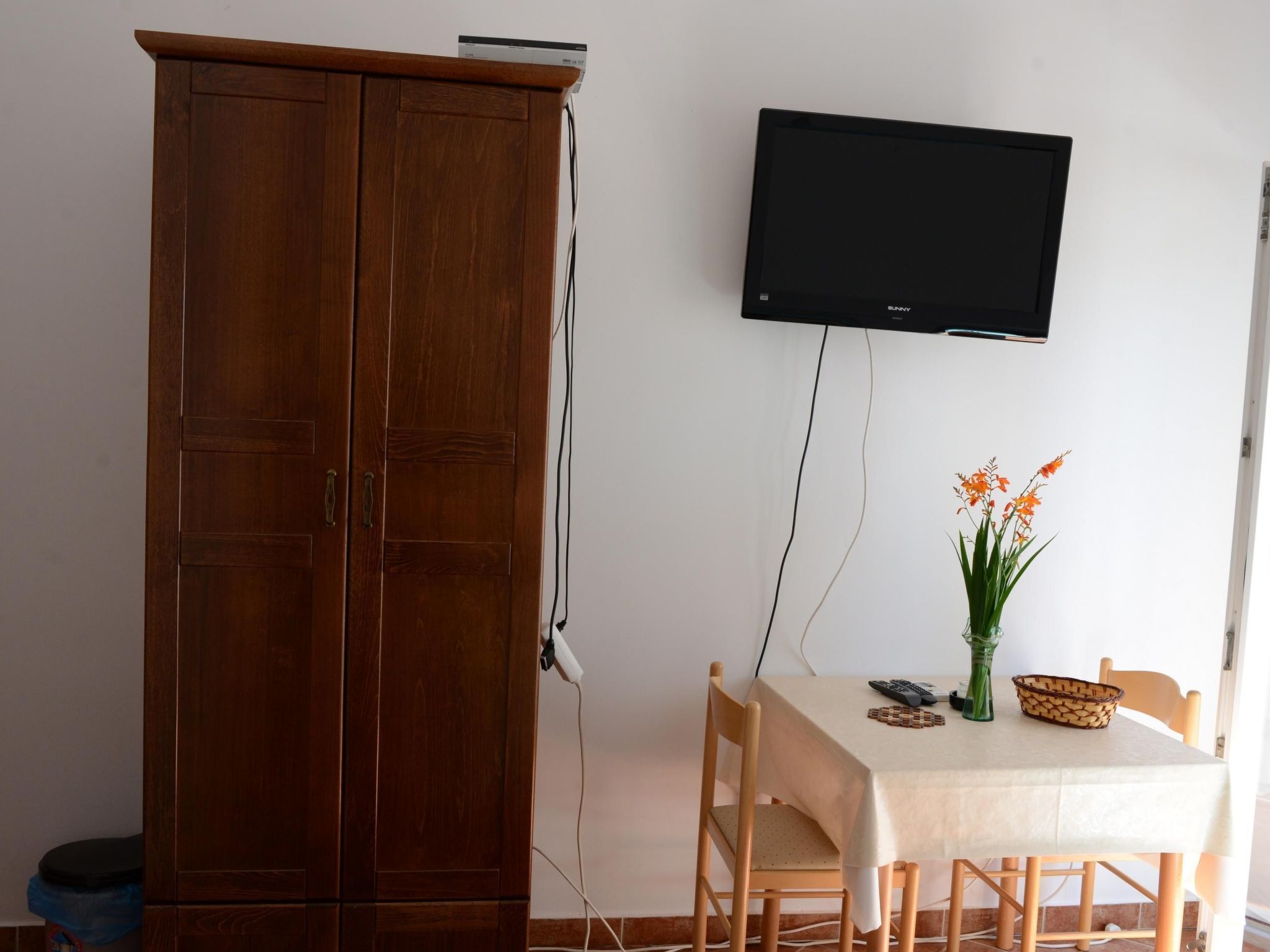 Dieses klimatisierte Studio-Appartement liegt auf der dritten Etage und bietet vier Personen Platz. Als Schlafgelegenheiten verfügt es über ein Doppelbett, ein Einzelbett und eine Schlafcouch. Weiterhin stehen ein Kleiderschrank, ein Fernseher mit Sat.-TV sowie ein Esstisch mit Stühlen bereit. Die Küchenzeile ist mit einem 2-Platten-Herd, Kühlschrank mit Gefrierfach, Wasserkocher und Kaffeemaschine ausgestattet. Das Badezimmer ist mit einer Dusche, Waschbecken und Toilette eingerichtet.