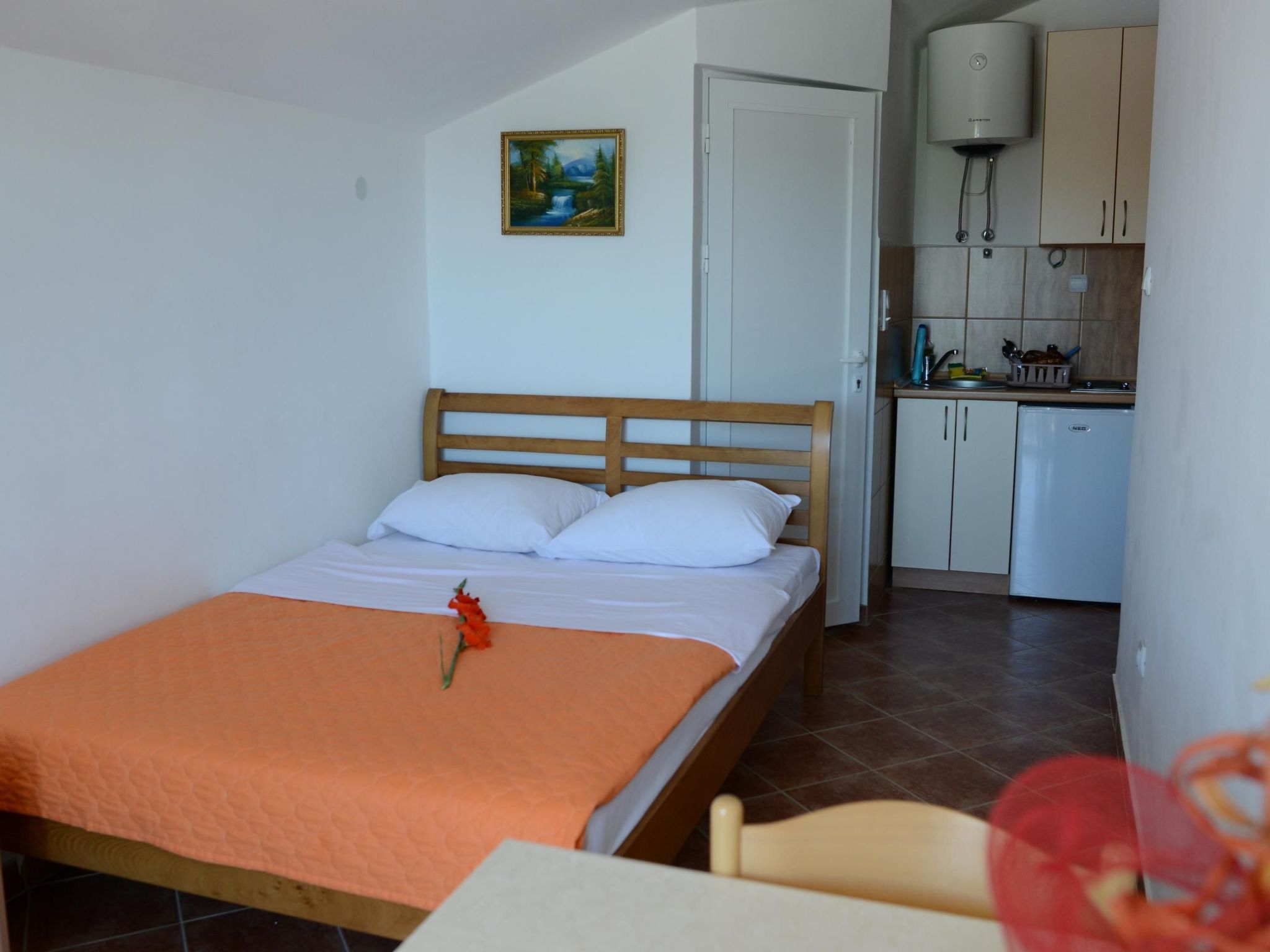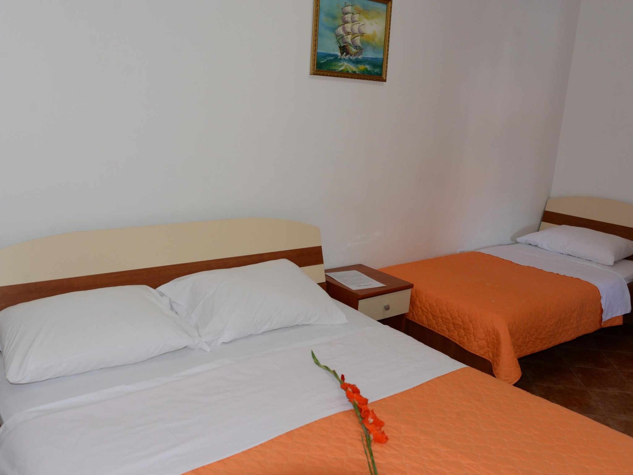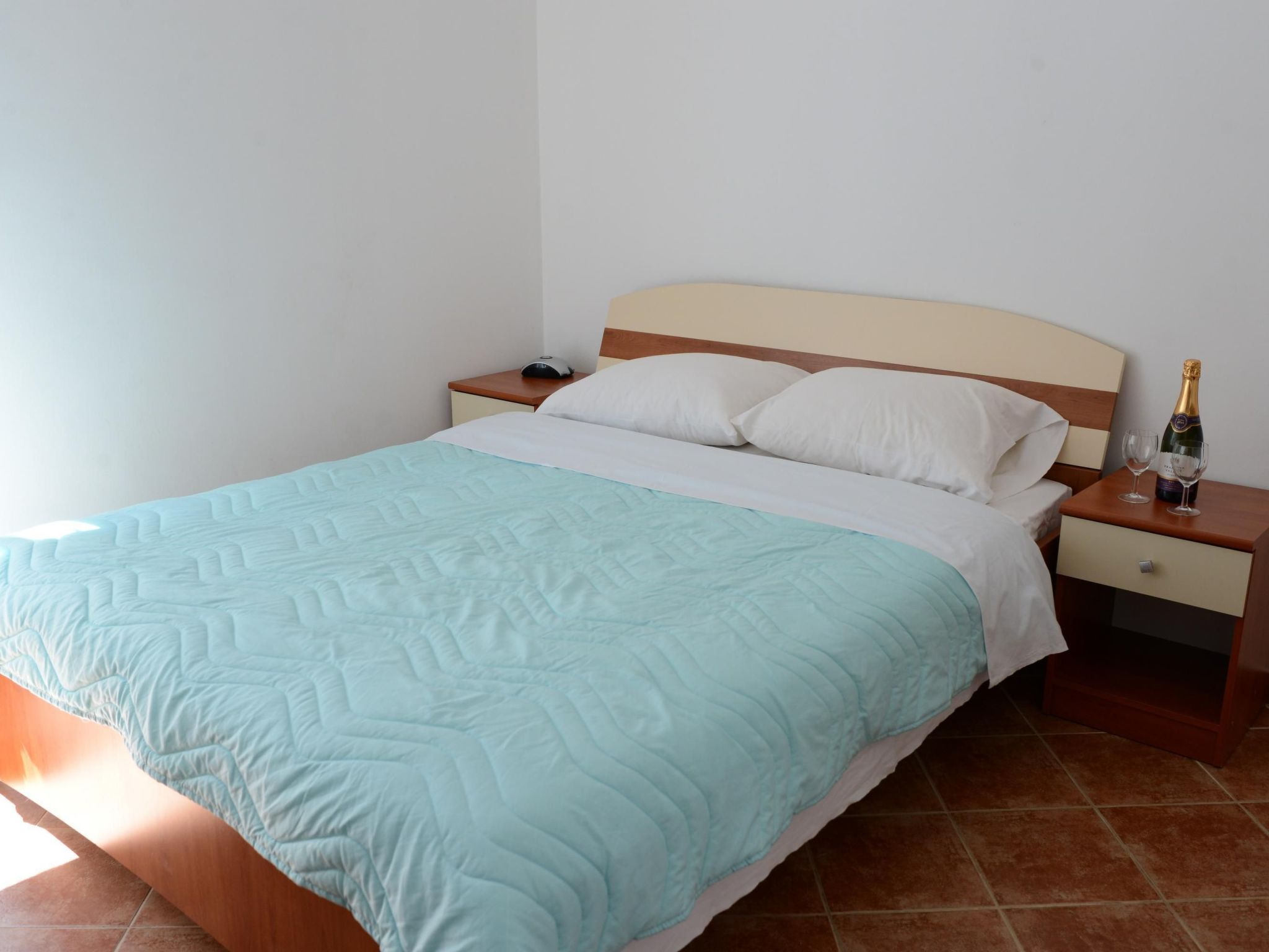 Dieses klimatisierte Studio-Appartement liegt auf der dritten Etage und bietet vier Personen Platz. Als Schlafgelegenheiten verfügt es über ein Doppelbett, ein Einzelbett und eine Schlafcouch. Weiterhin stehen ein Kleiderschrank, ein Fernseher mit Sat.-TV sowie ein Esstisch mit Stühlen bereit. Die Küchenzeile ist mit einem 2-Platten-Herd, Kühlschrank mit Gefrierfach, Wasserkocher und Kaffeemaschine ausgestattet. Das Badezimmer ist mit einer Dusche, Waschbecken und Toilette eingerichtet.