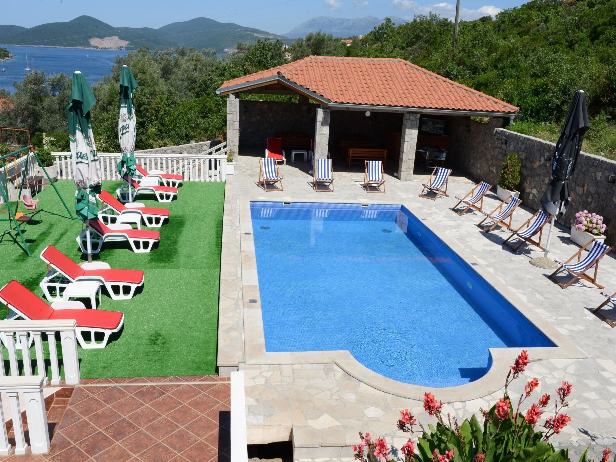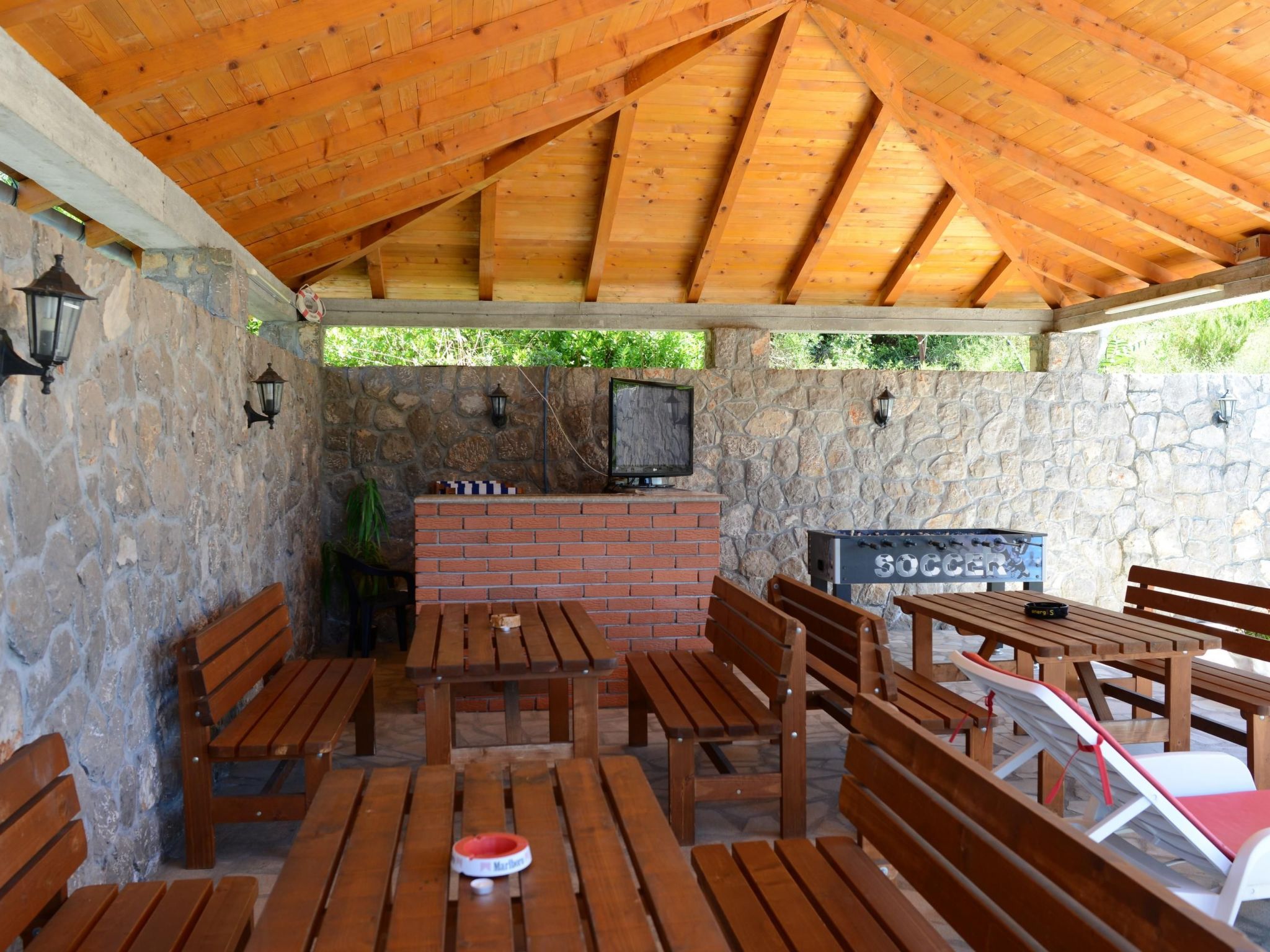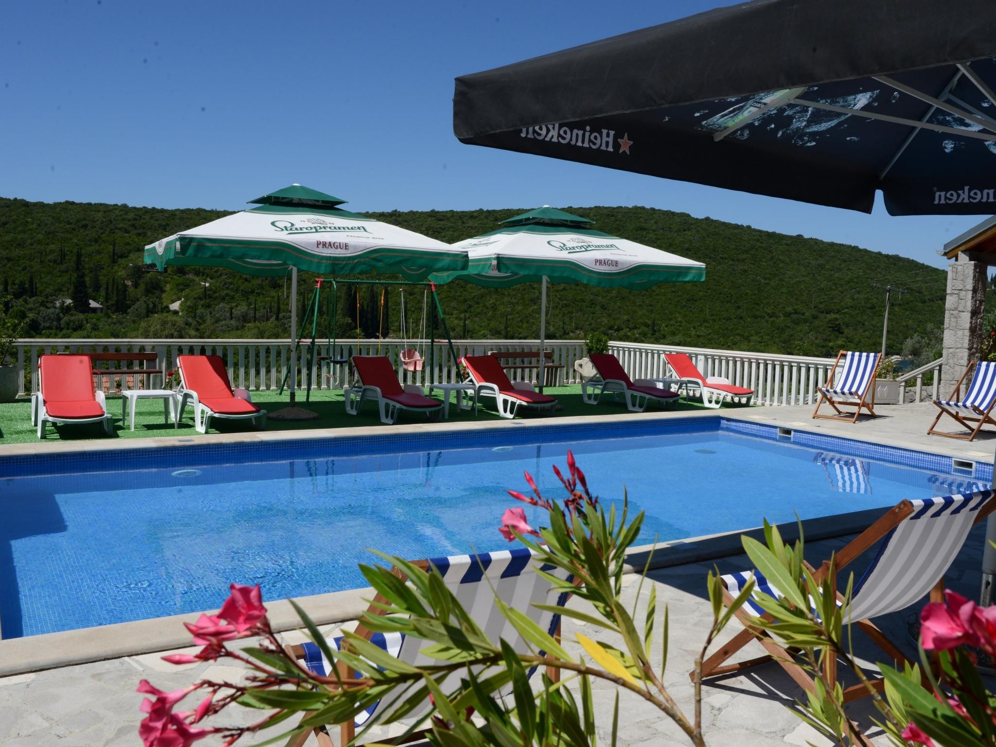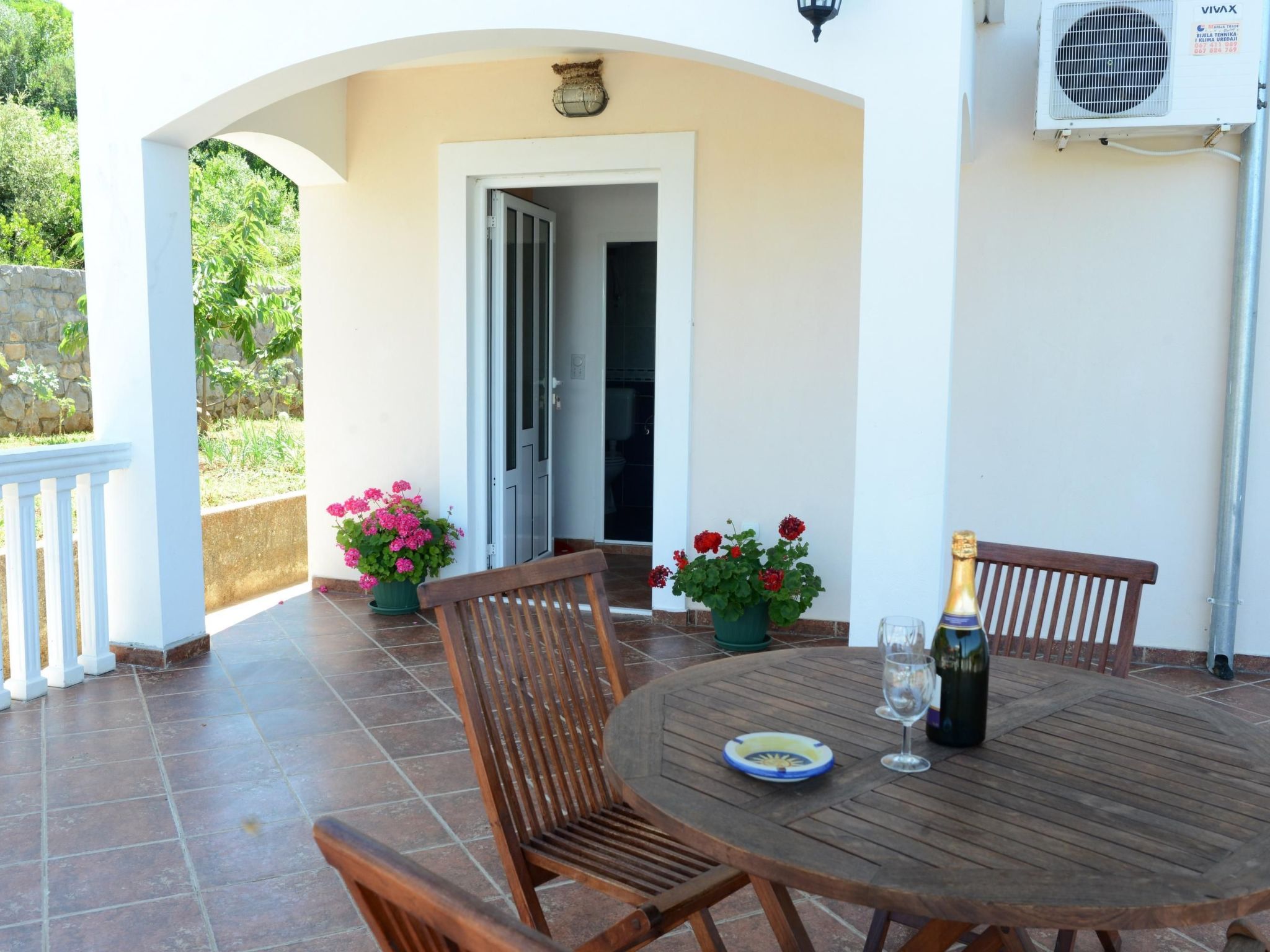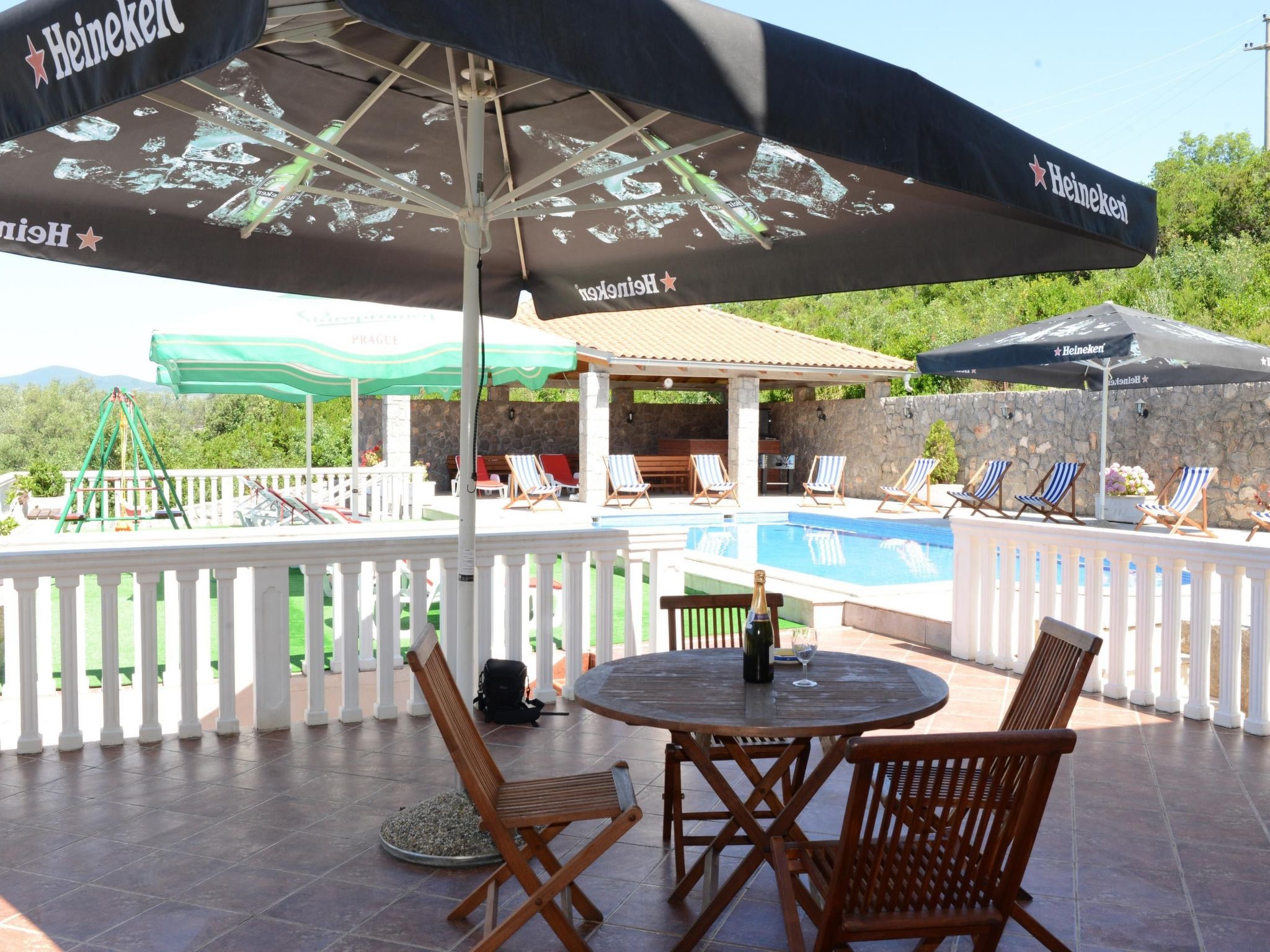 Auf dem Balkon, der über einen Tisch mit Stühlen sowie einen Sonnenschirm verfügt, genießen Sie eine herrliche Aussicht bis zum Meer.