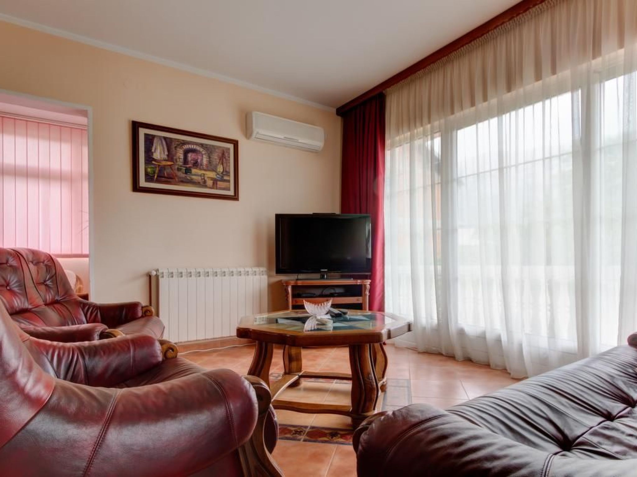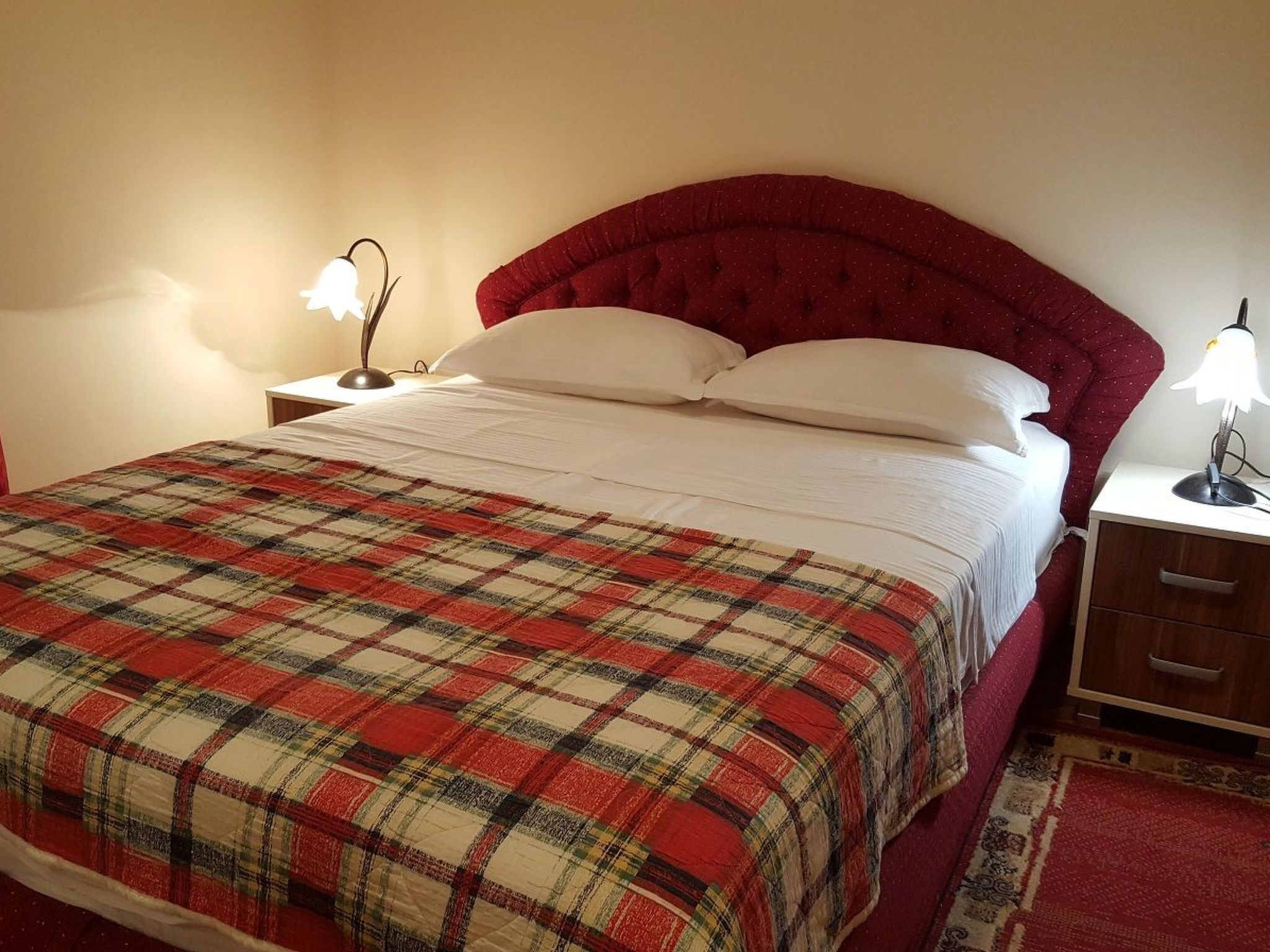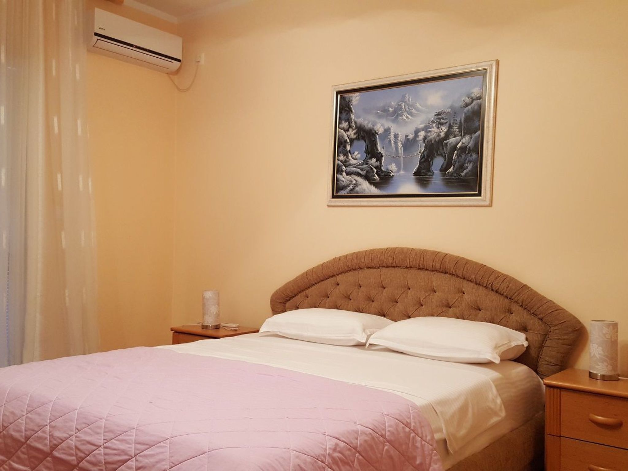 Die Wohnung befindet sich im ersten Stock eines Einfamilienhauses und ist 90 Quadratmeter groß. Sie besteht aus 2 Schlafzimmern, einem Wohnzimmer mit Essecke und einer offenen, voll ausgestatteten Küche, einem Badezimmer und einem Balkon. Die Schlafzimmer sind mit einem Doppelbett und einem Kleiderschrank ausgestattet. Für diejenigen, die mit kleinen Kindern reisen, kann ein Babybett auf Anfrage zur Verfügung gestellt werden.