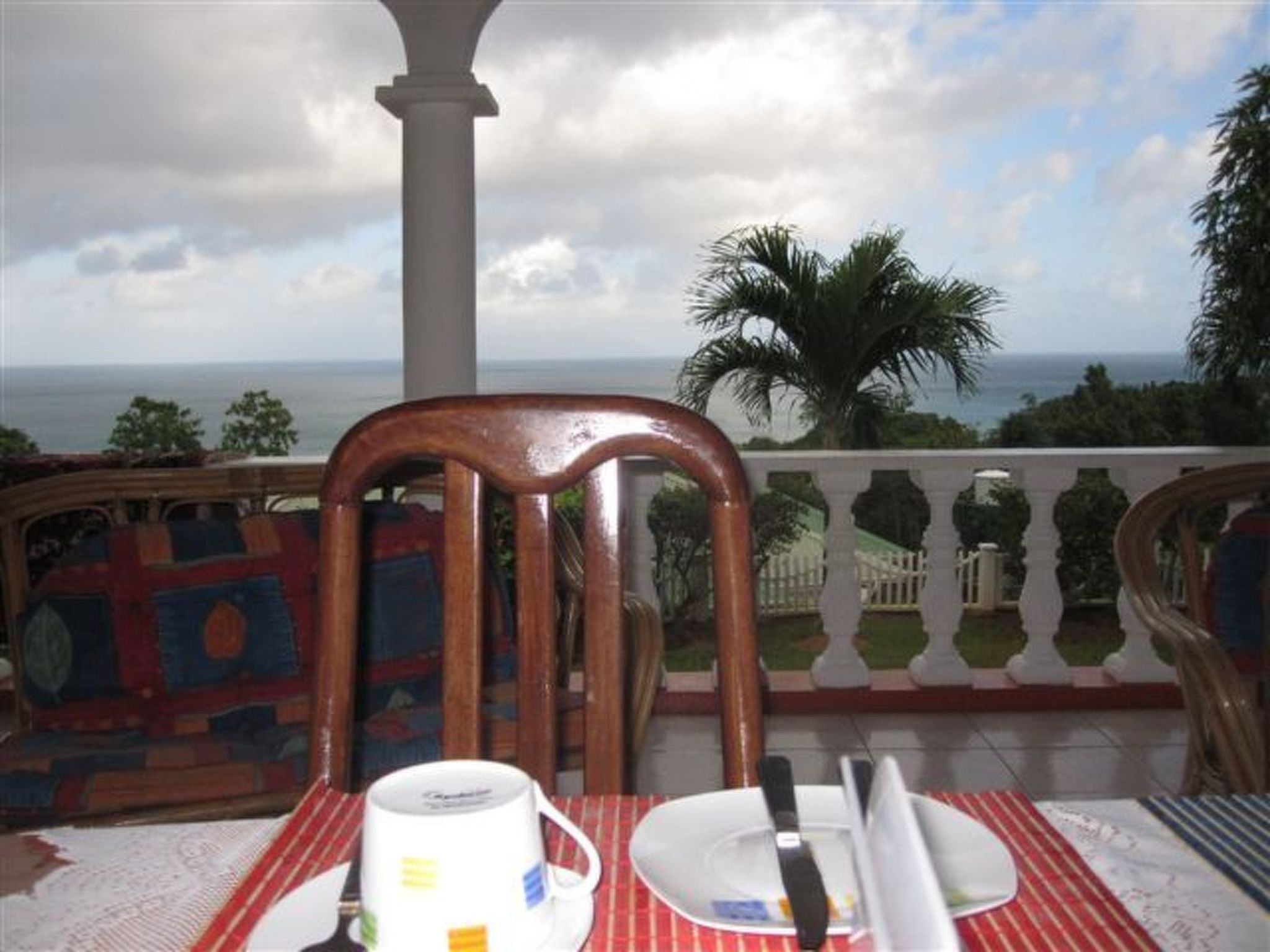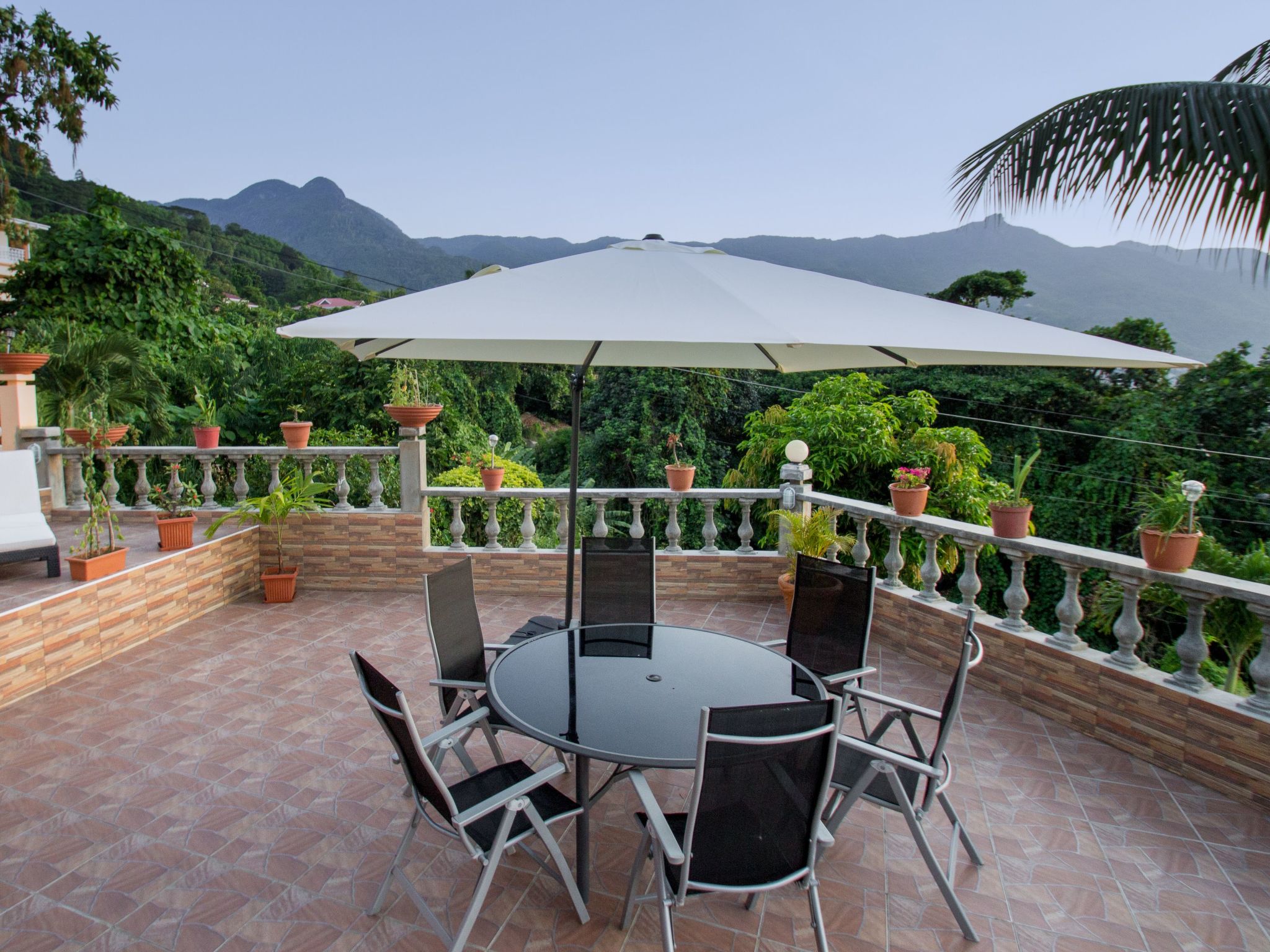 Das Apartment hat einen eigenen Eingangsbereich mit Terrasse. Es kann aber auch die größere Terrasse im Haupthaus -- siehe Bilder -- genutzt werden. Parkplätze stehen kostenfrei zur Verfügung. Von der Terrasse des Haupthauses hat man einen herrlichen Blick auf die Beau vallon Bucht.