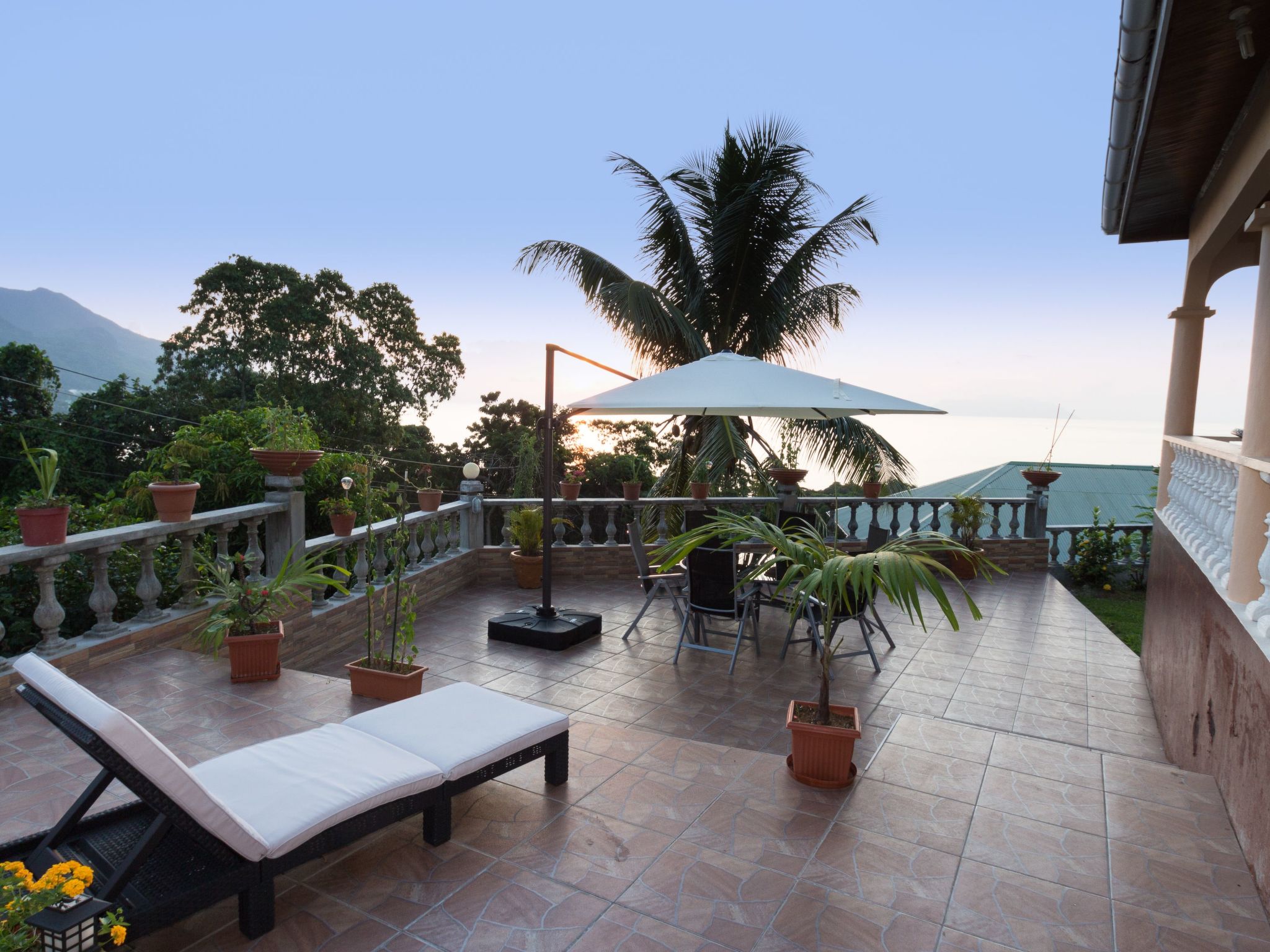 Von der Terrasse des Haupthauses hat man einen grandiosen Blick über die Beau Vallon Bucht. Der Strand ist in 15 Minuten zu Fuss erreichbar. Richtung Beau Vallon ist ein Sandstrand -- Richtung Norden ist ein großes Riff vorgelagert. Hier kann man schnorcheln. Es gibt eigentlich alles zu sehen,-- Korallen, Fische, auch Schildkröten. Am Strand von Beau Vallon gibt es einige Restaurants . Wir enpfehlen jedoch frischen , günstigen Fisch von den Fischern am Beau Vallon zu kaufen und diesen selber zuzubereiten . Ein Grill ist vorhanden.
