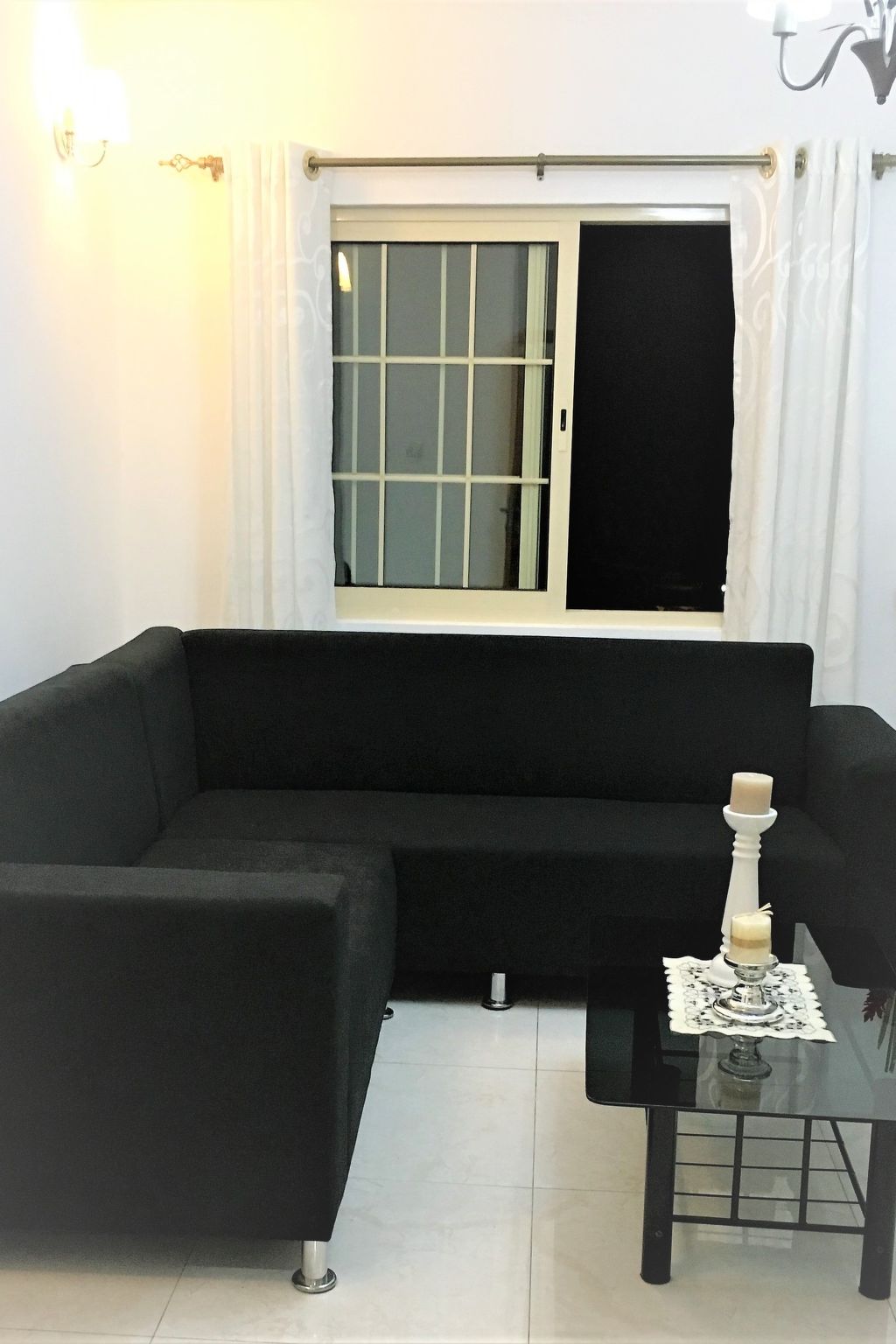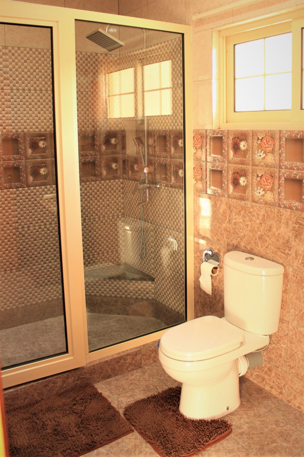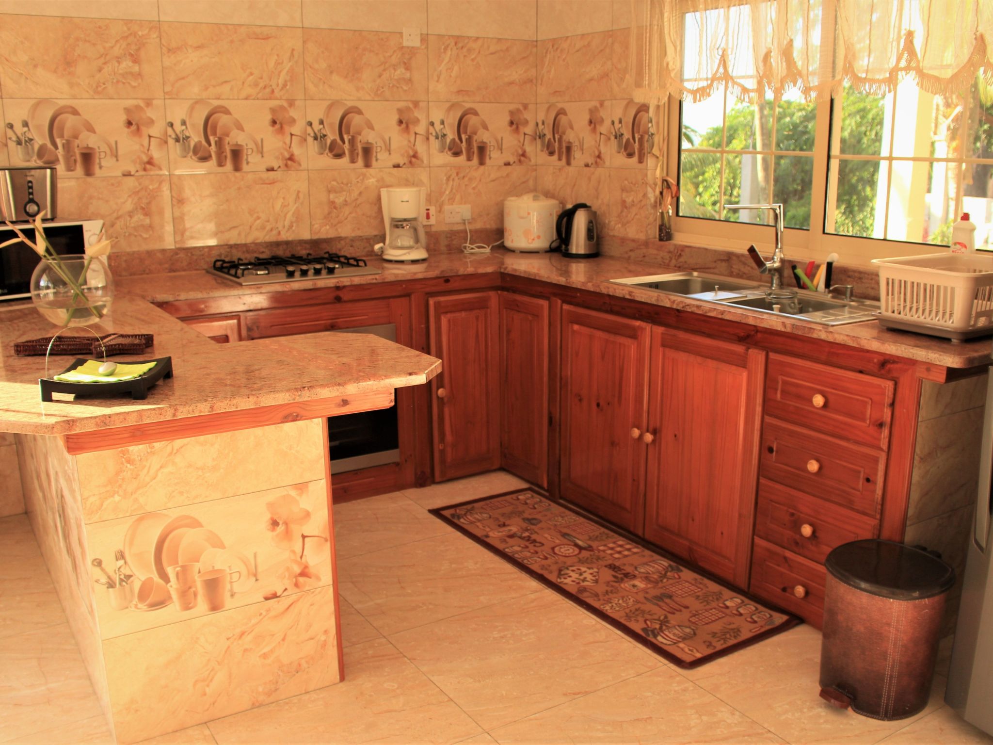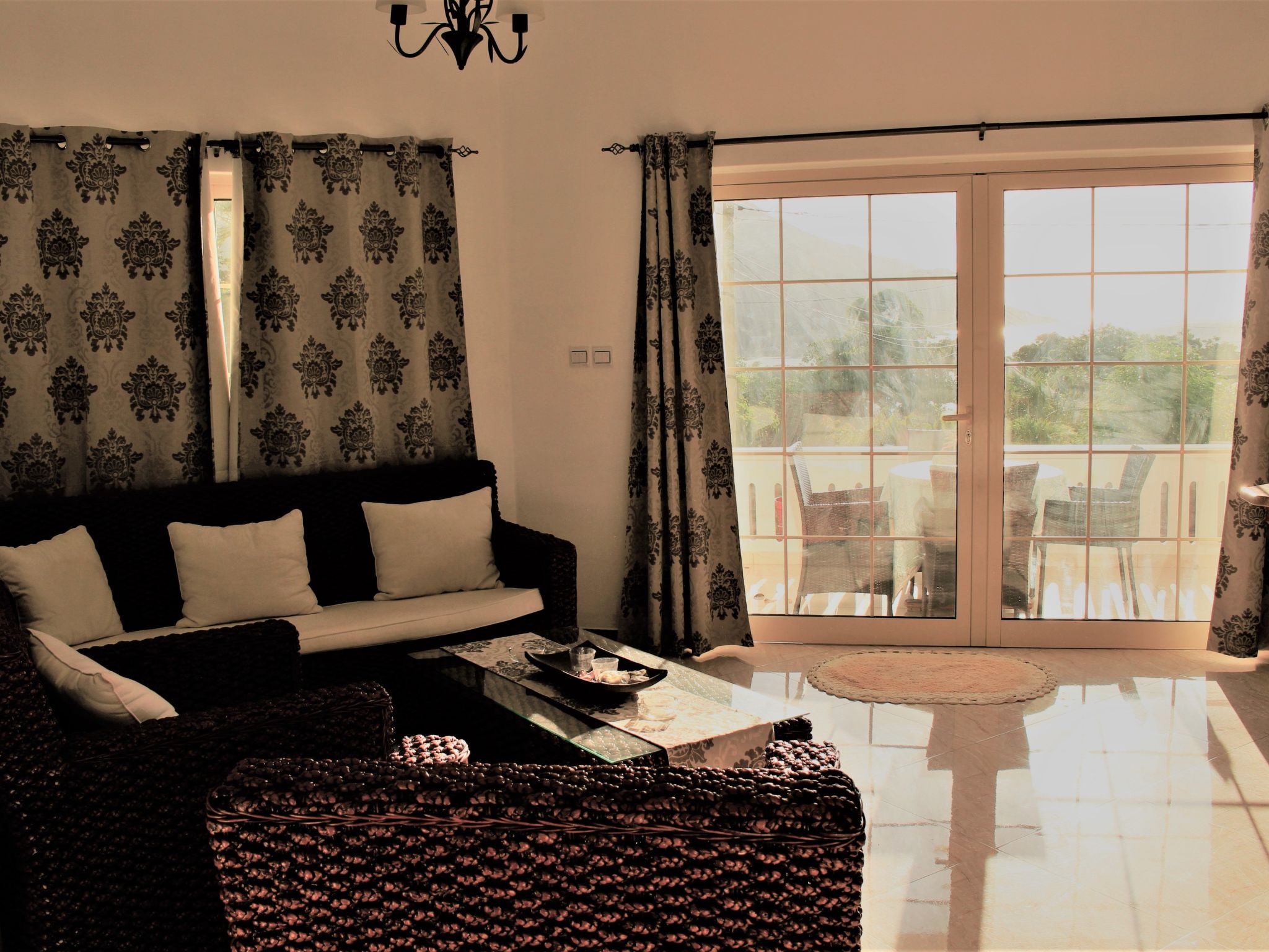 Das Apartmenthaus ist neu und hochwertig ausgestattet. Das zweigeschössige Haus ist in zwei identische Ferienwohnungen unterteilt, von denen Ihnen an dieser Stelle die Erdgeschosswohnung präsentiert wird. Die im März 2017 fertiggestellte Unterkunft erstreckt sich über eine Wohnfläche von 70 m² und bietet Ihnen im voll klimatisierten Innenraum zwei Schlafzimmer mit jeweils einem eigenen Duschbad, sowie einen geselligen Wohn-, Ess- und Kochbereich mit Zugang zur Terrasse. Im ersten Schlafzimmer schlafen Sie in einem Doppelbett einer Maße von 160 cm x 200 cm. Im zweiten Schlafzimmer stehen zwei 90 cm x 200 cm große Einzelbetten nebeneinander als Doppelbett. Kleiderschränke zur Verstauung Ihrer Reisegarderobe sind in den Zimmern ebenfalls vorhanden. Während Sie aus dem einen Schlafzimmer direkt ins angrenzende en-suite Bdaezimmer gelangen, ist das Badezimmer für das zweite Schlafzimmer über den Flur zugänglich. Beide Tageslichtbäder sind gleichermaßen als Duschbad mit Duschkabine, WC und Handwaschbecken konzipiert. Gegenüber des Wohnbereichs lädt die offene Küche zu einer umfangreichen Selbstversorgung ein. Diese besteht aus einem Gasherd mit vier Flammen, einem Backofen, einem Kühlschrank, sowie Kaffeemaschine, Toaster und Wasserkocher. Eine Waschmaschine zur gemeinschaftlichen Nutzung im Haus und die Internetverbindung per WLAN runden die Ausstattung ab. Das Apartment wird alle drei bis vier Tage gereinigt. Bettwäsche und Handtücher werden gestellt.