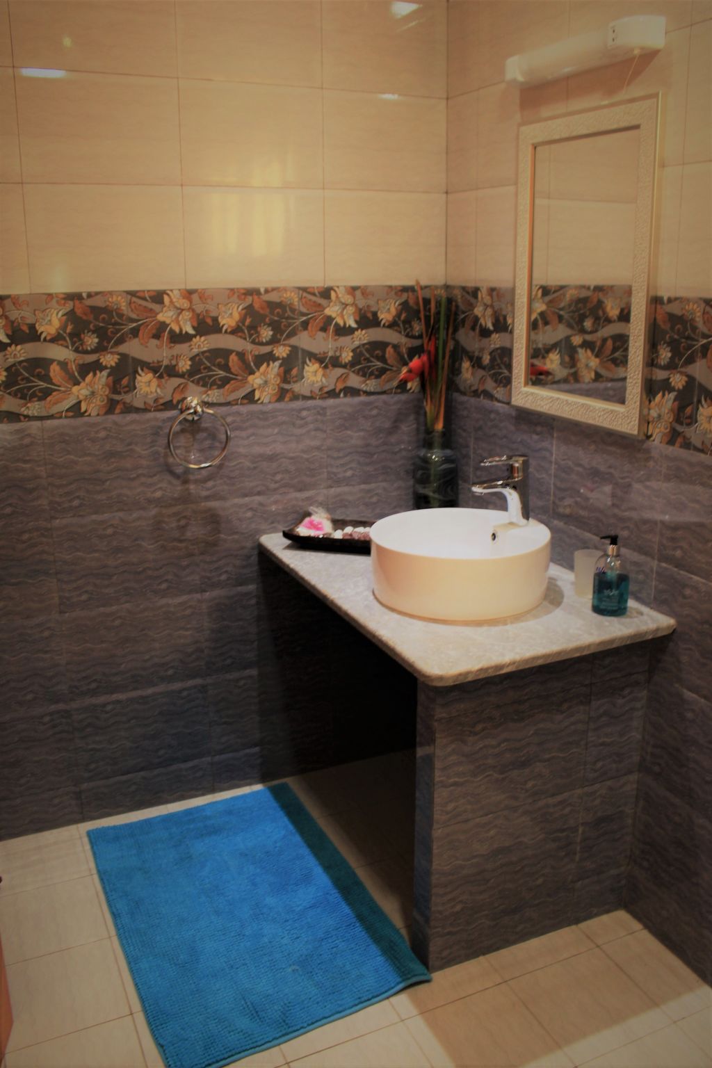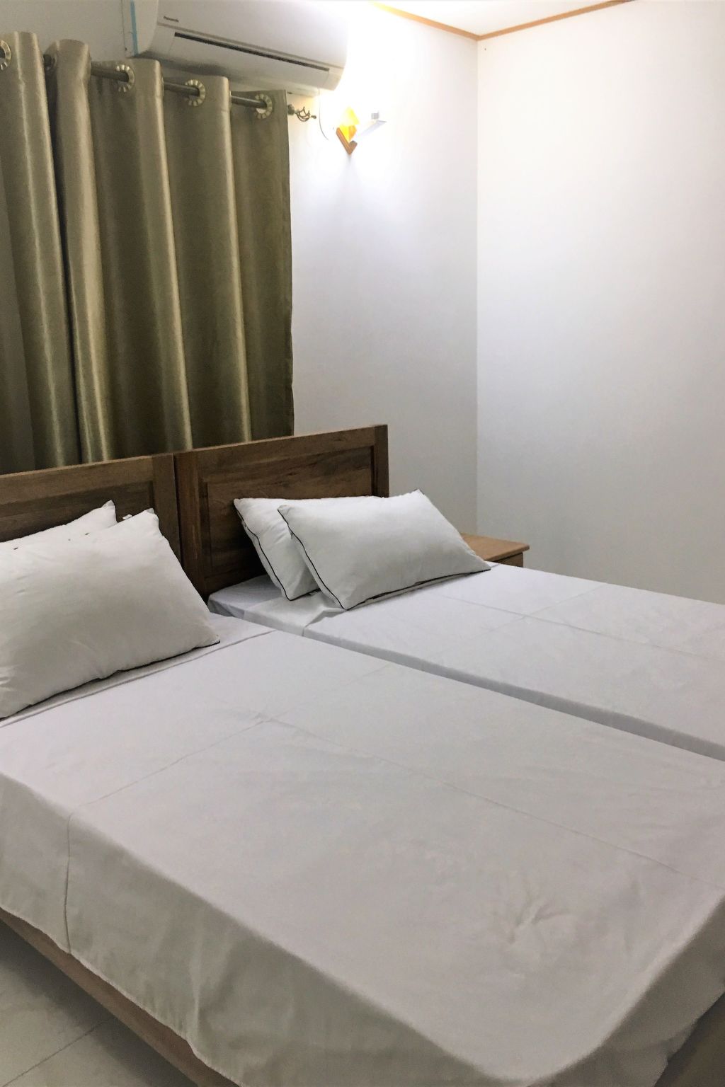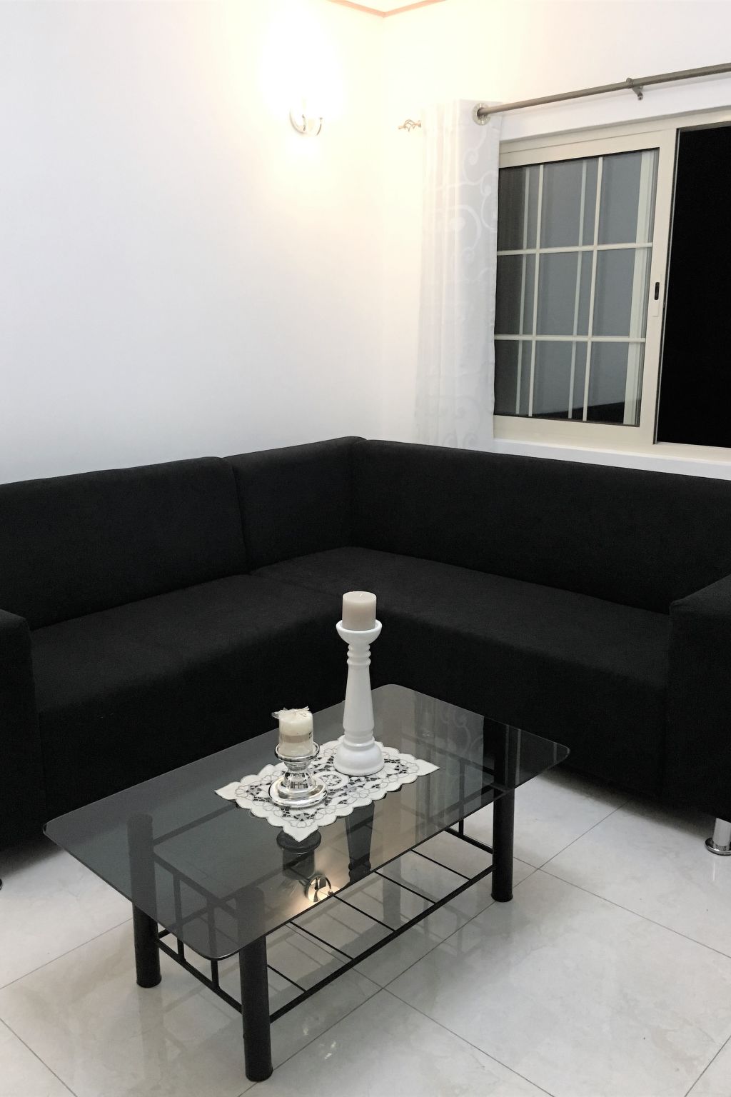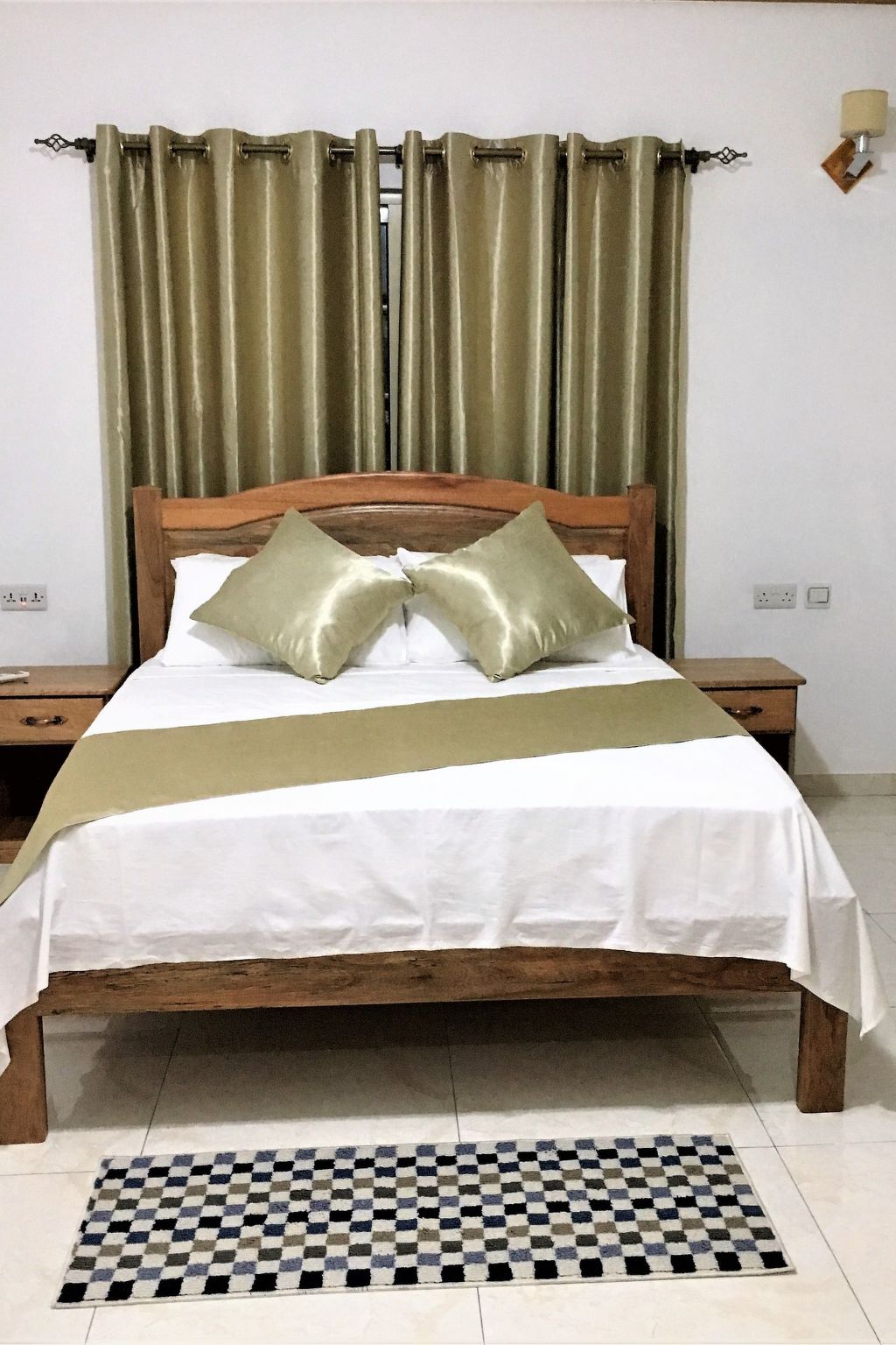 Das Apartmenthaus ist neu und hochwertig ausgestattet. Das zweigeschössige Haus ist in zwei identische Ferienwohnungen unterteilt, von denen Ihnen an dieser Stelle die Erdgeschosswohnung präsentiert wird. Die im März 2017 fertiggestellte Unterkunft erstreckt sich über eine Wohnfläche von 70 m² und bietet Ihnen im voll klimatisierten Innenraum zwei Schlafzimmer mit jeweils einem eigenen Duschbad, sowie einen geselligen Wohn-, Ess- und Kochbereich mit Zugang zur Terrasse. Im ersten Schlafzimmer schlafen Sie in einem Doppelbett einer Maße von 160 cm x 200 cm. Im zweiten Schlafzimmer stehen zwei 90 cm x 200 cm große Einzelbetten nebeneinander als Doppelbett. Kleiderschränke zur Verstauung Ihrer Reisegarderobe sind in den Zimmern ebenfalls vorhanden. Während Sie aus dem einen Schlafzimmer direkt ins angrenzende en-suite Bdaezimmer gelangen, ist das Badezimmer für das zweite Schlafzimmer über den Flur zugänglich. Beide Tageslichtbäder sind gleichermaßen als Duschbad mit Duschkabine, WC und Handwaschbecken konzipiert. Gegenüber des Wohnbereichs lädt die offene Küche zu einer umfangreichen Selbstversorgung ein. Diese besteht aus einem Gasherd mit vier Flammen, einem Backofen, einem Kühlschrank, sowie Kaffeemaschine, Toaster und Wasserkocher. Eine Waschmaschine zur gemeinschaftlichen Nutzung im Haus und die Internetverbindung per WLAN runden die Ausstattung ab. Das Apartment wird alle drei bis vier Tage gereinigt. Bettwäsche und Handtücher werden gestellt.
