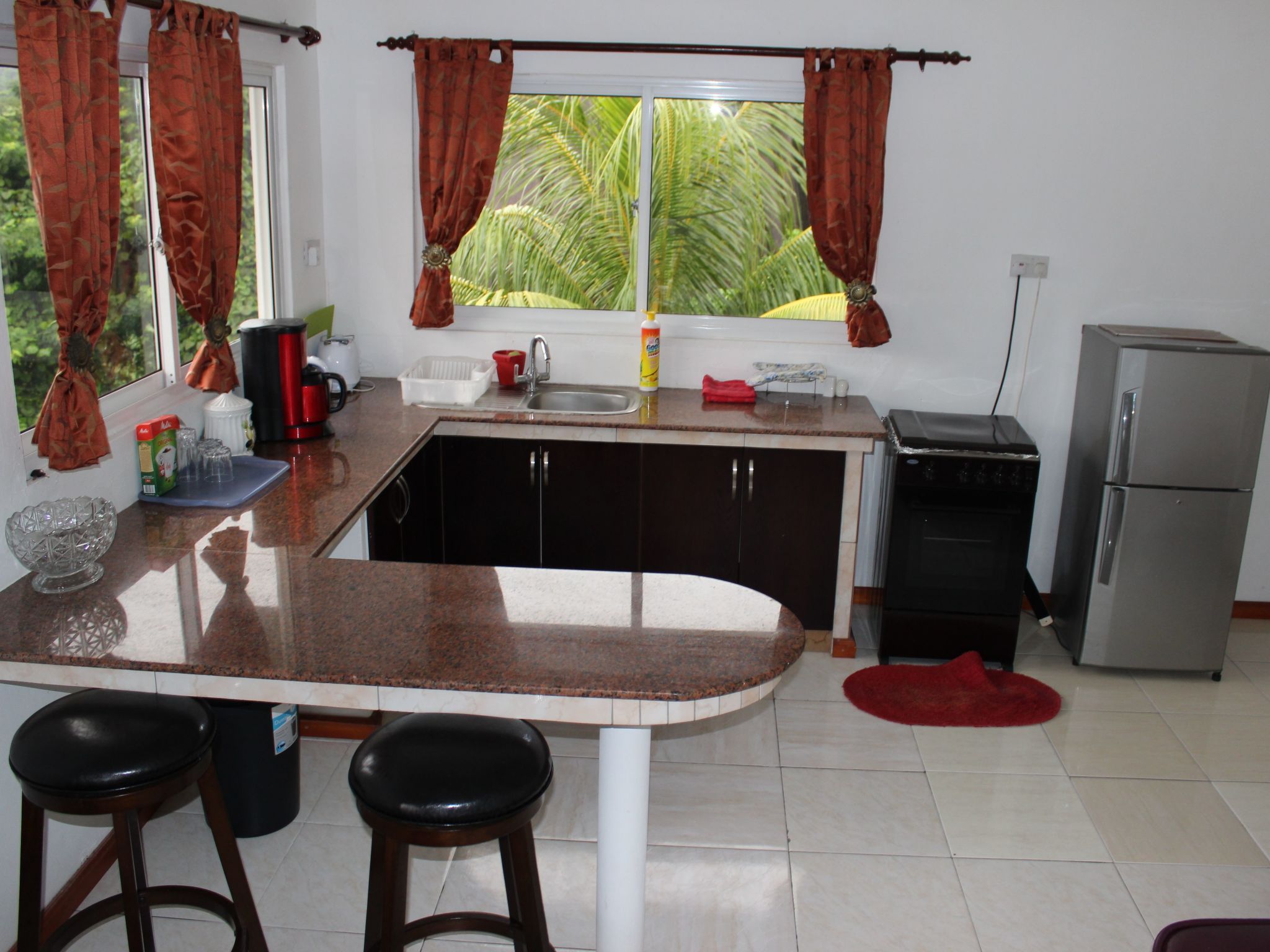 Das Apartment liegt auf der Hauptinsel MAHE an der Beau Vallon Bucht. Das Apartment liegt erhöht mit großartigem Blick auf die Beau Vallon Bucht. Aufgrund der erhöhten Lage ist ein Mietwagen, wie überall auf der Insel, zu empfehlen. ( siehe auch Bild ) . Ein Mietwagen kann auf Anfrage günstig über uns bestellt werden,