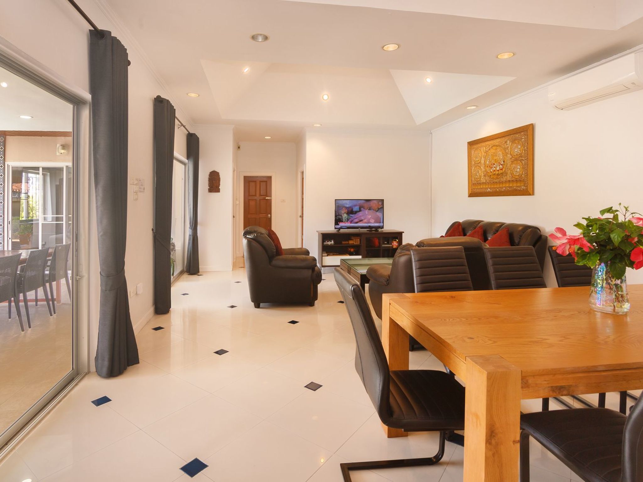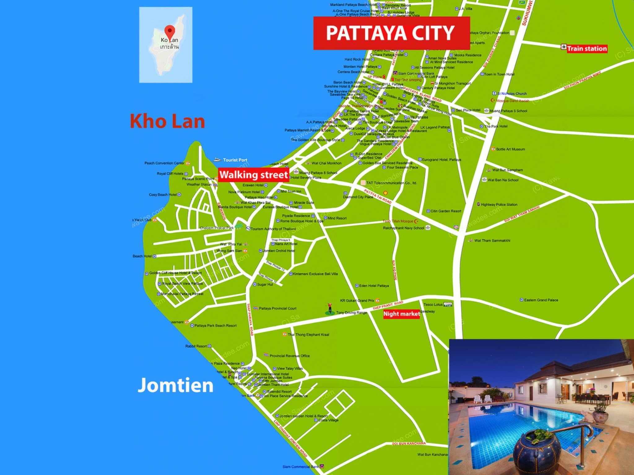 Die Umgebung der Villa Bos bietet das Beste aus zwei Welten: die ruhige Schönheit des Jomtien Beach für entspannende Tage in der Sonne und die pulsierende Energie von Pattaya für abenteuerliche Ausflüge und kulturelle Entdeckungen. Der Taxiservice, der zwar nicht im Preis inbegriffen ist, macht die lokalen Attraktionen leicht erreichbar, so dass Sie vom ersten Moment an alles genießen können, was diese schöne Region zu bieten hat.