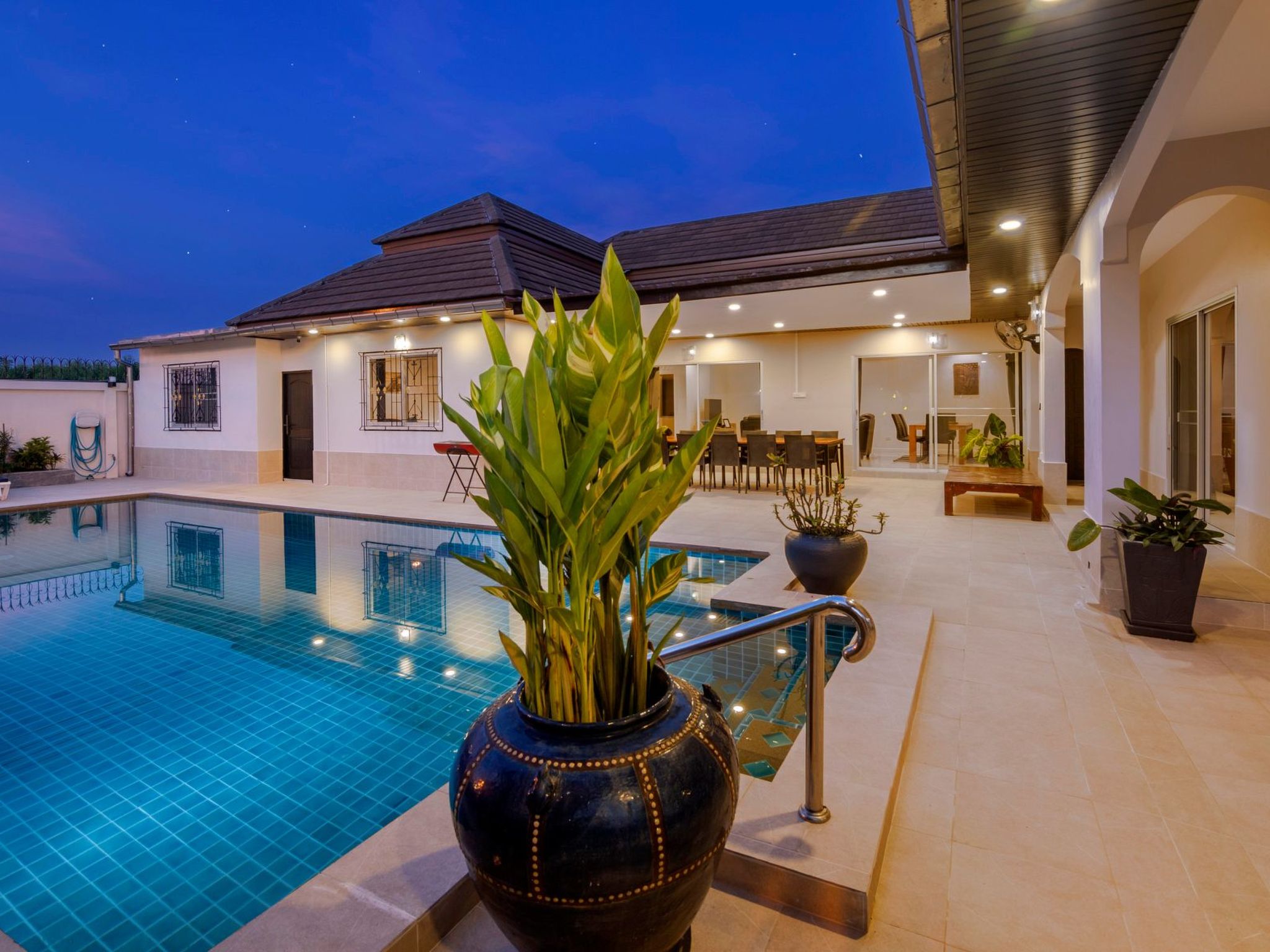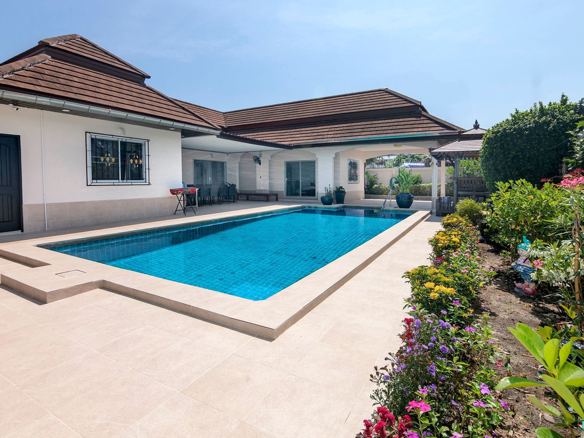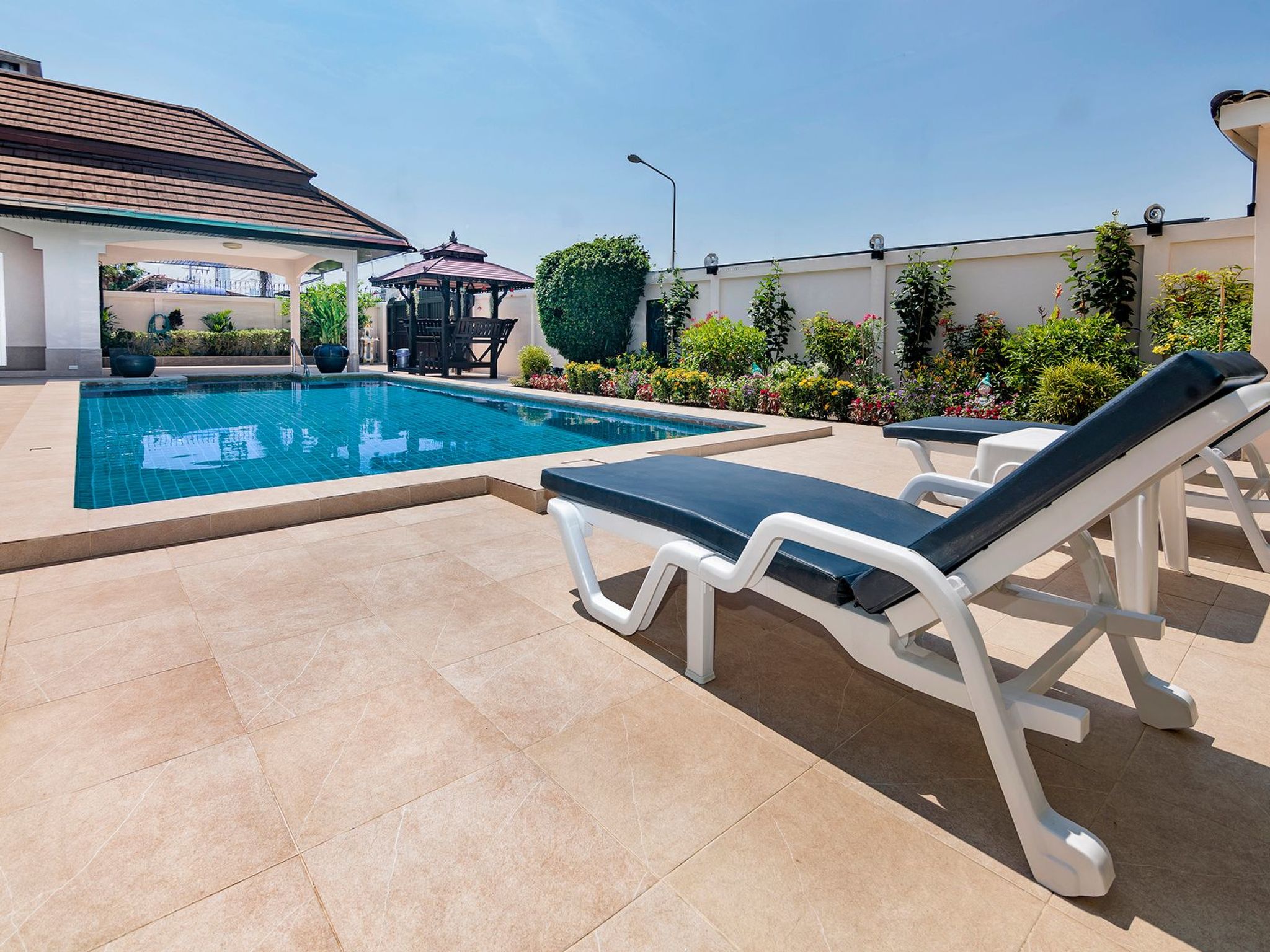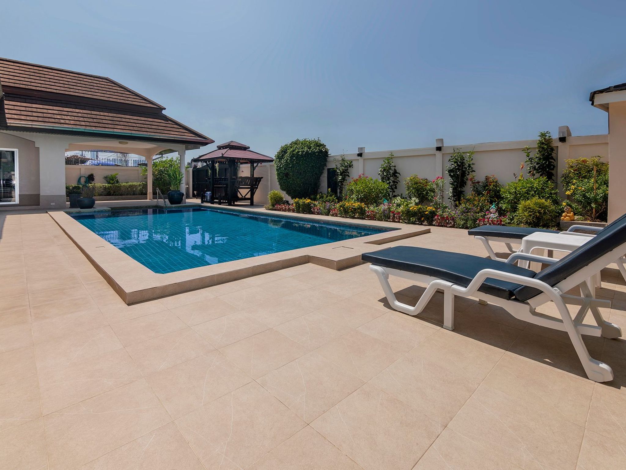 Entdecken Sie den unvergleichlichen Charme der Villa Bos, Ihrem exklusiven Rückzugsort in der Nähe des ruhigen Jomtien Beach. Nur fünf Autominuten vom Strand entfernt, bietet diese freistehende Villa die perfekte Kombination aus Privatsphäre ohne unmittelbare Nachbarn und einer direkten Verbindung zum pulsierenden Pattaya und seinen verführerischen Stränden. Die Villa Bos ist der ideale Ausgangspunkt sowohl für Ruhesuchende als auch für Abenteurer.