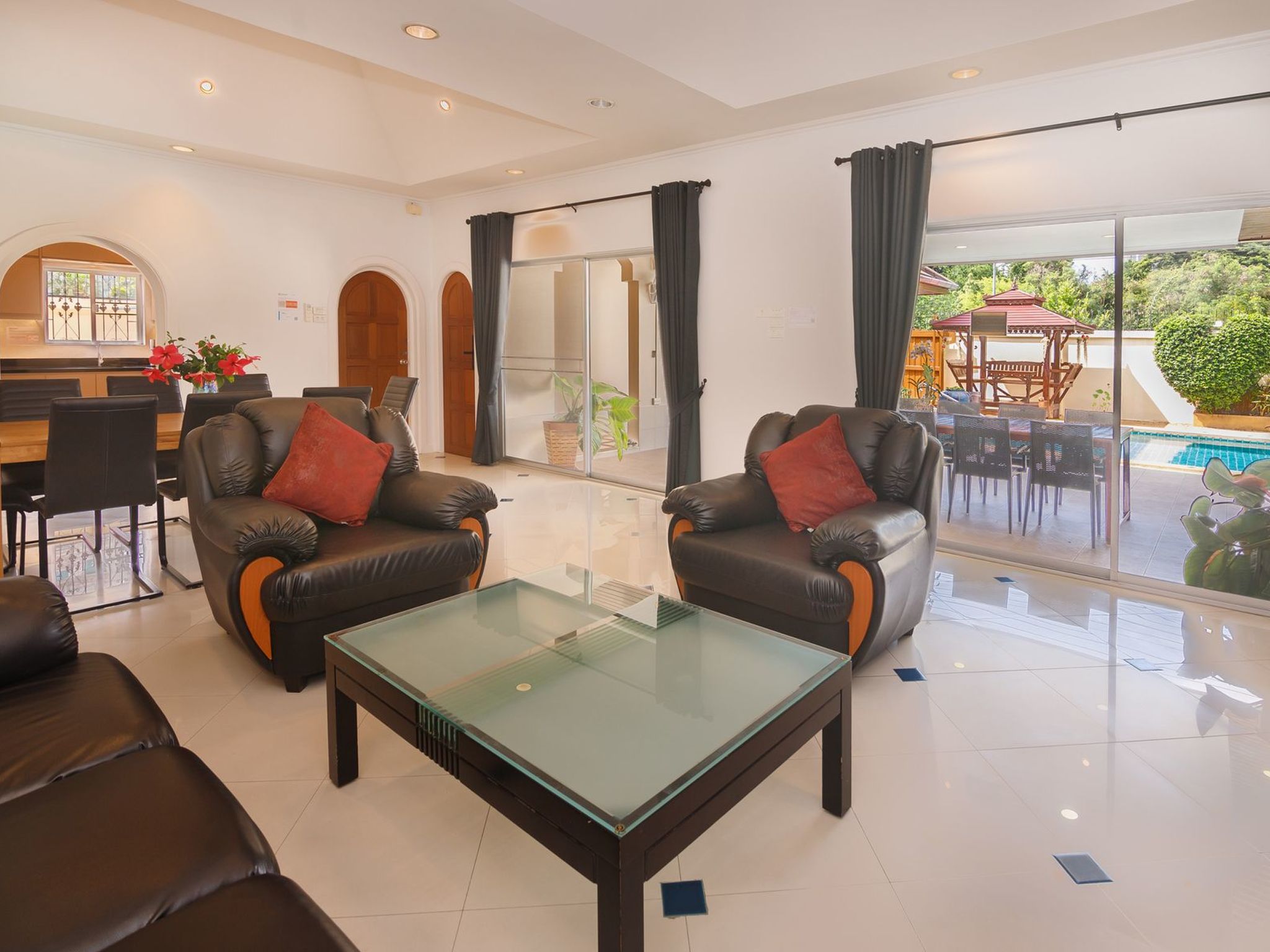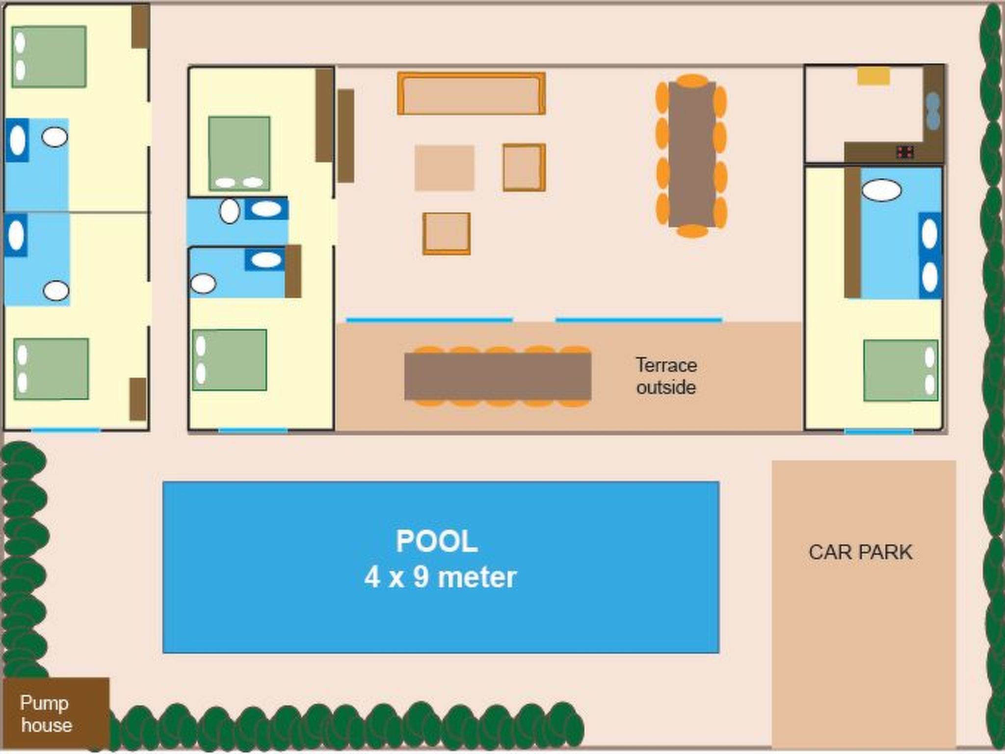 Im Außenbereich glänzt die Villa mit einem einladenden Privatpool, in dem Privatsphäre und Entspannung an erster Stelle stehen. Raucher können sich auf der Terrasse vergnügen, wo das Rauchen erlaubt ist, ohne die Frische des Innenraums zu beeinträchtigen. Außerdem steht ein Grill mit kostenloser Holzkohle bereit, perfekt für gemütliche Abende unter dem Sternenhimmel mit der Familie oder Freunden.