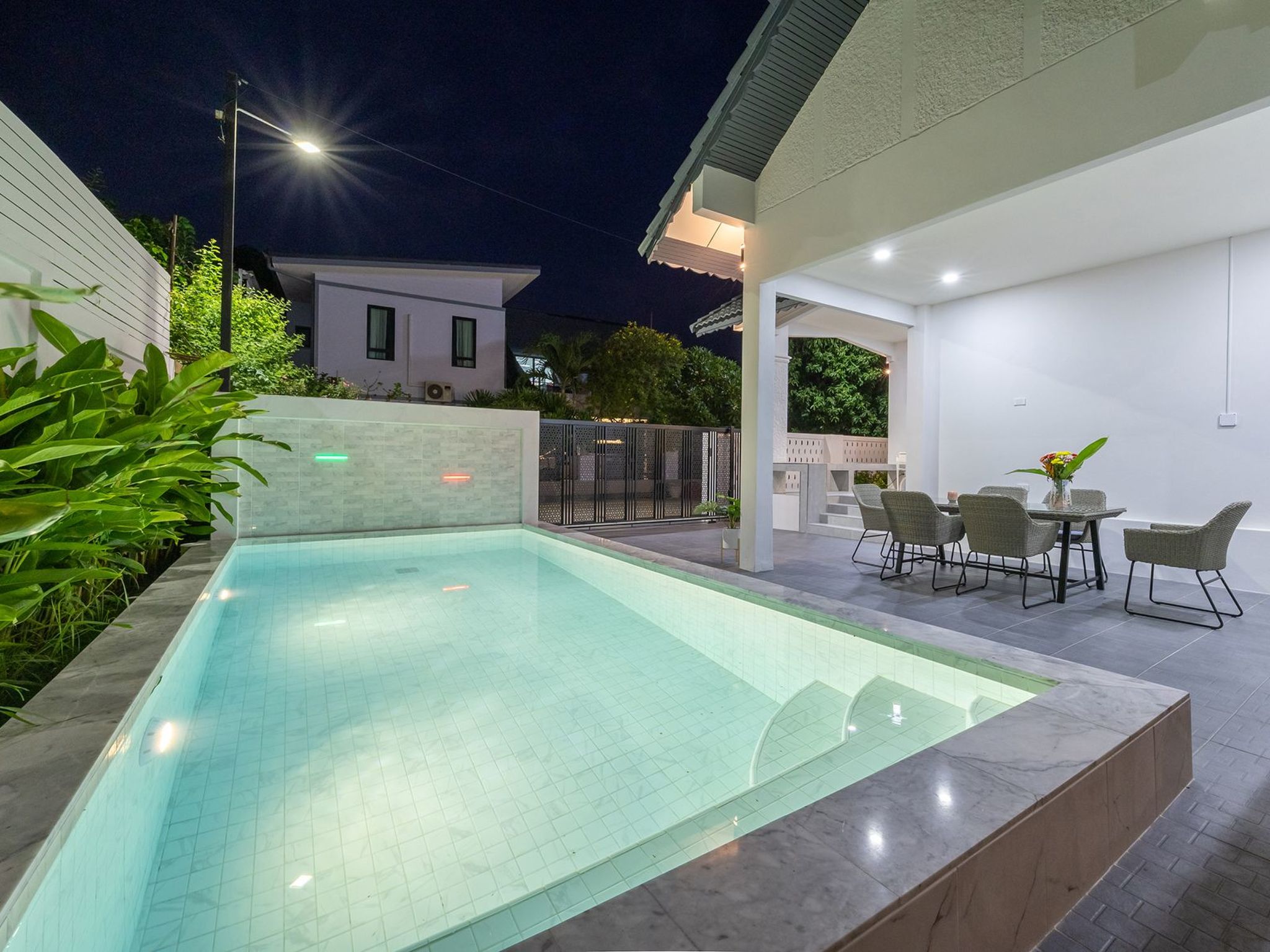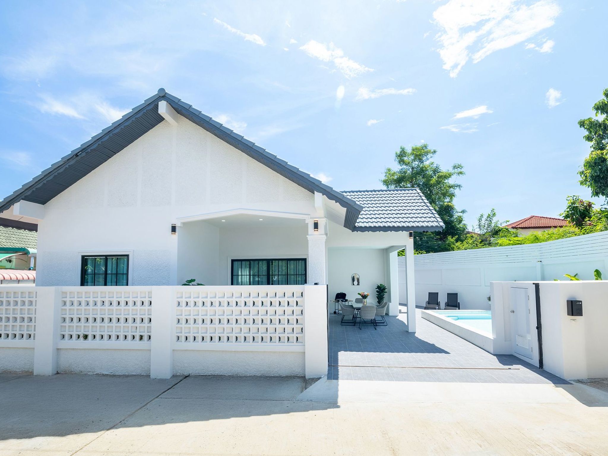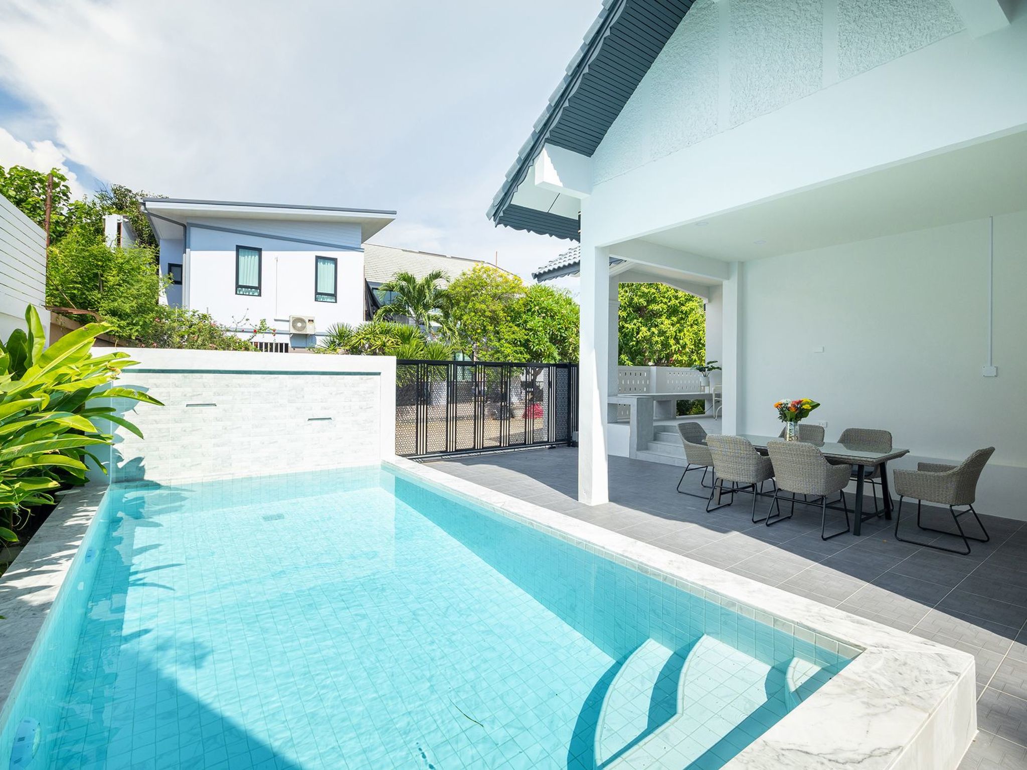 Diese Villa mit privatem Pool ist nur wenige Minuten vom geschäftigen Pattaya mit seinen Einkaufszentren, dem pulsierenden Nachtleben und den schönen Stränden entfernt.