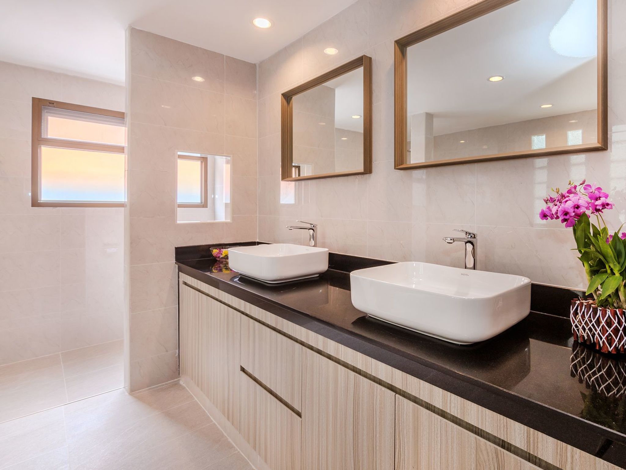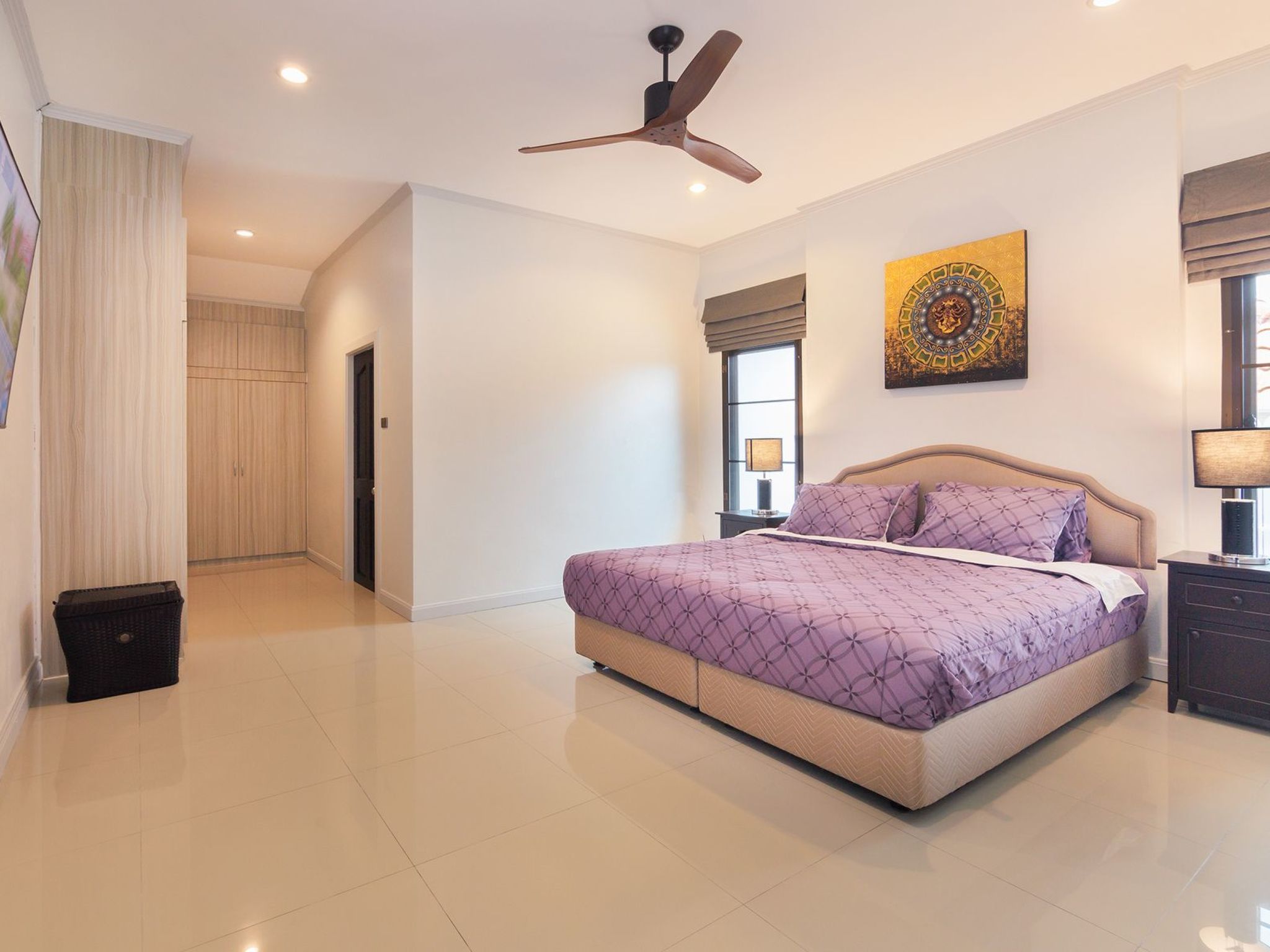 Das Hauptschlafzimmer hat einen großen Fernseher mit Wi-Fi, einen begehbaren Kleiderschrank und ein eigenes Badezimmer mit Badewanne, separater Dusche und Toilette. Das zweite Schlafzimmer hat ebenfalls ein eigenes Bad mit Dusche und Toilette. Die anderen 2 Schlafzimmer teilen sich ein Badezimmer mit Dusche und Toilette.