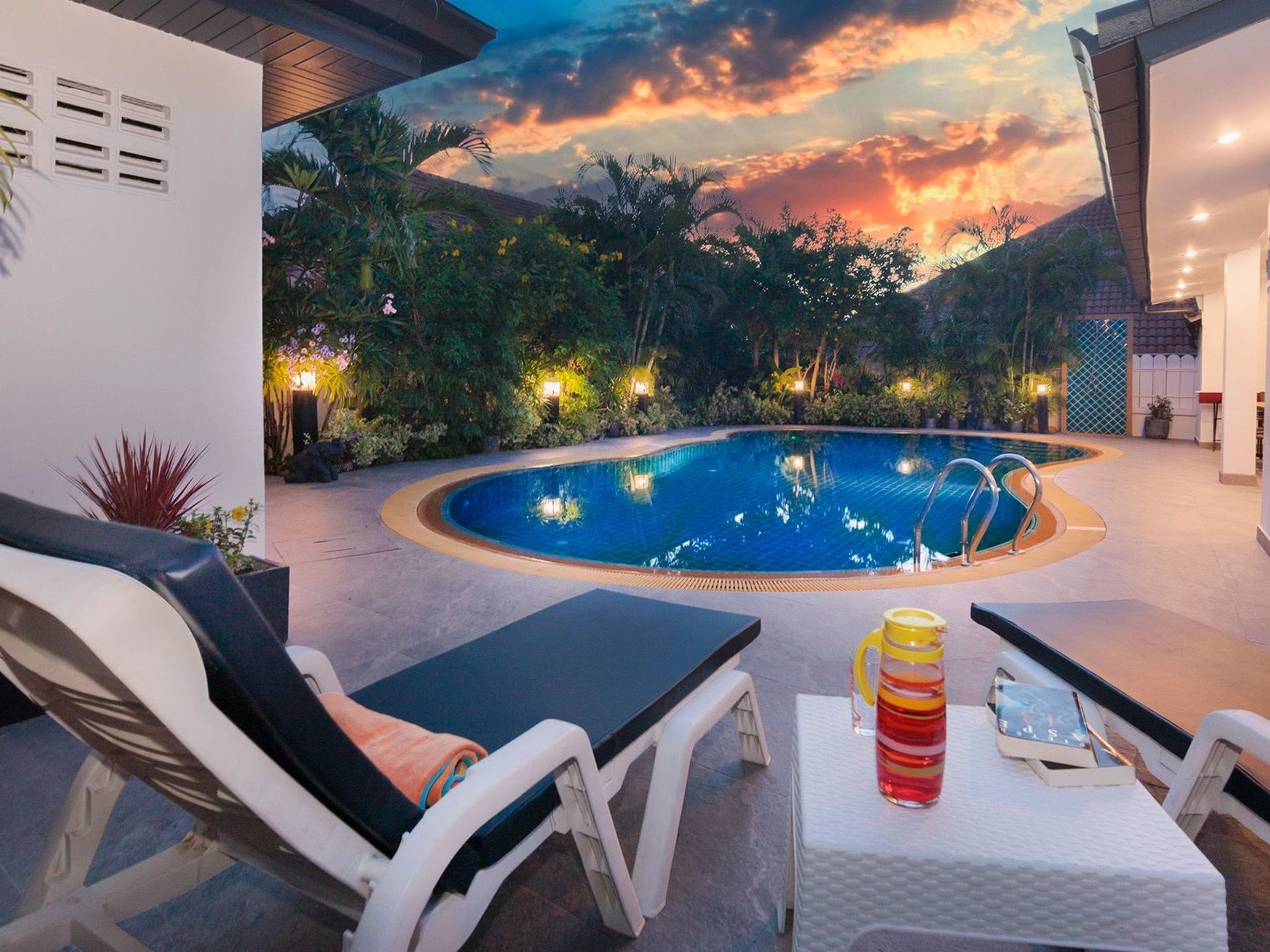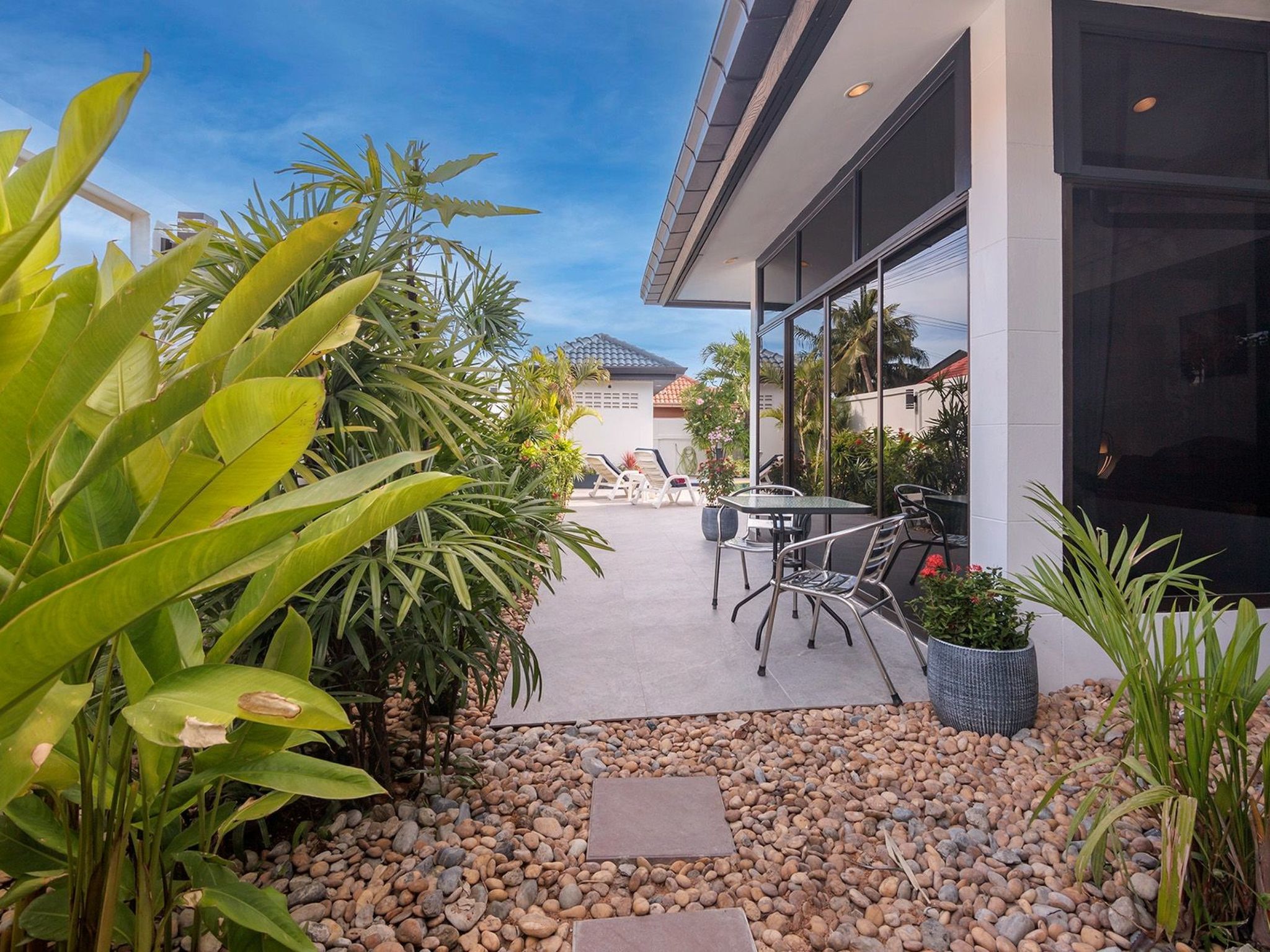 Das Anwesen ist rund um die Uhr bewacht und wird nachts überwacht. Das Anwesen liegt in der Nähe einer Hauptstraße mit vielen guten Restaurants und Bars, darunter ein Irish Pub, ein Supermarkt, ein Frischmarkt, eine deutsche Bäckerei (jeden Morgen frisches Brot), Geldautomaten, Geschäfte und Massagesalons, die alle nur wenige Gehminuten von der Villa entfernt sind.