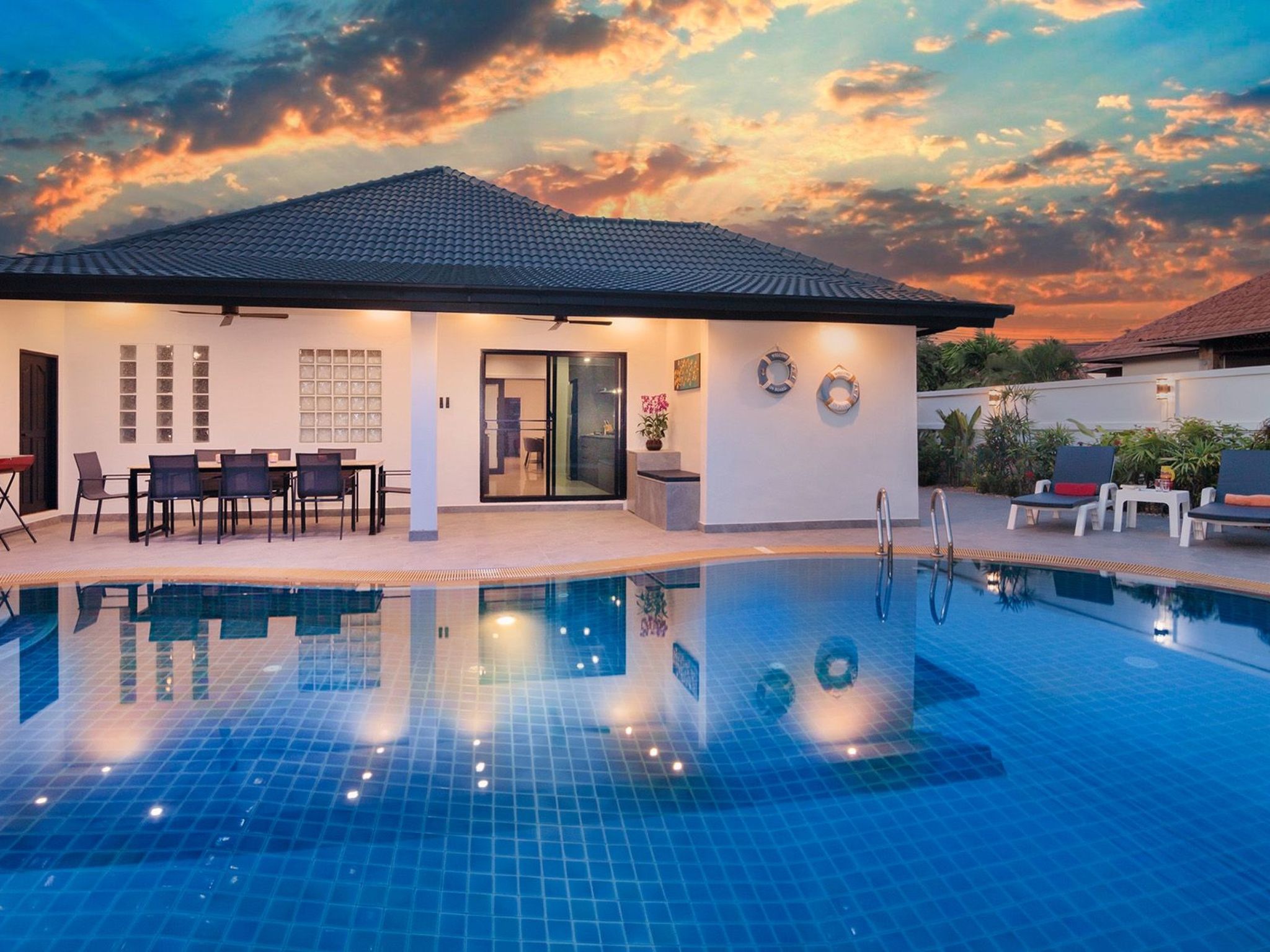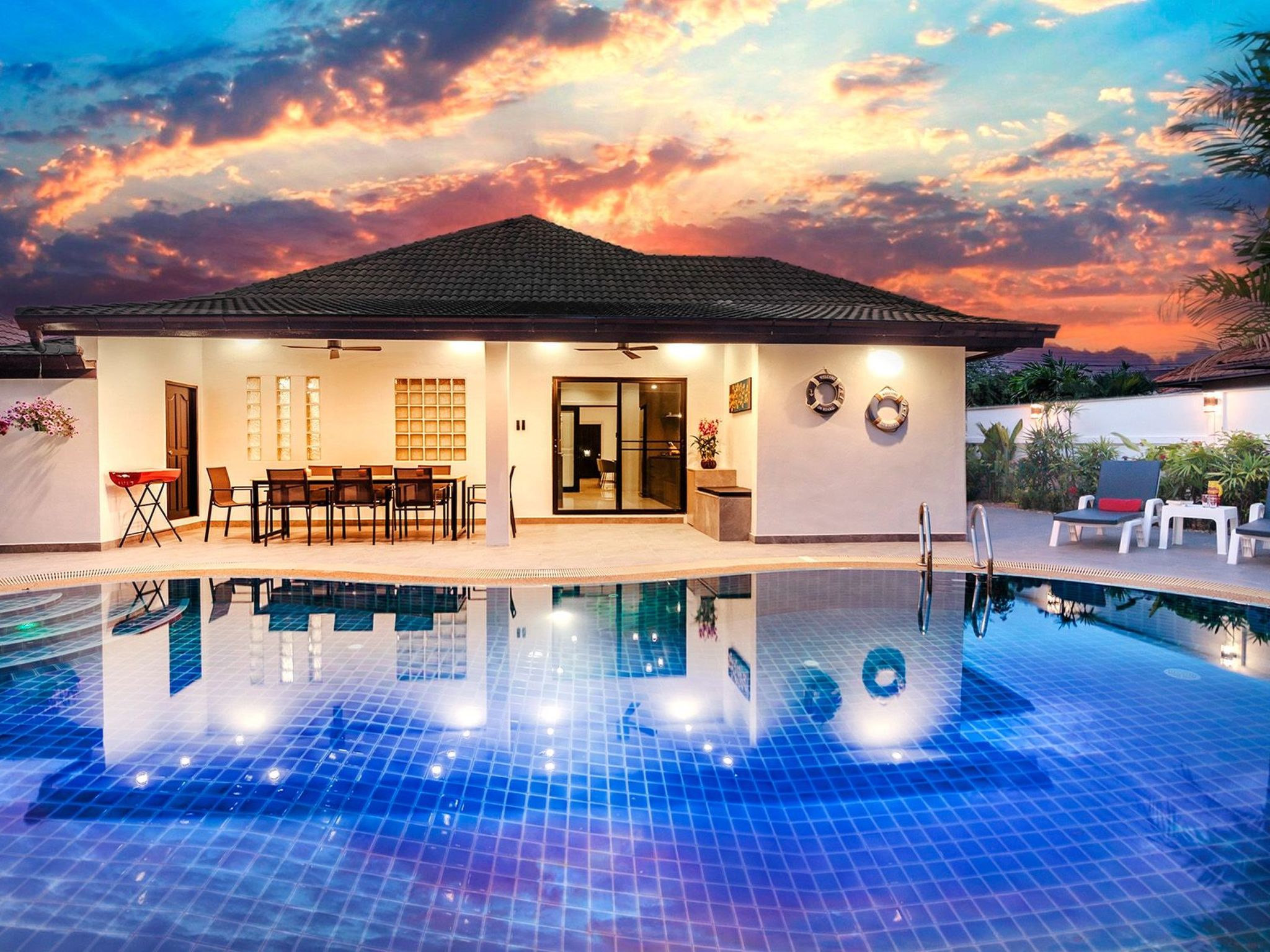 Diese Villa mit privatem Pool und Jacuzzi ist nur wenige Minuten vom geschäftigen Pattaya mit seinen Einkaufszentren, dem pulsierenden Nachtleben und den schönen Stränden entfernt.