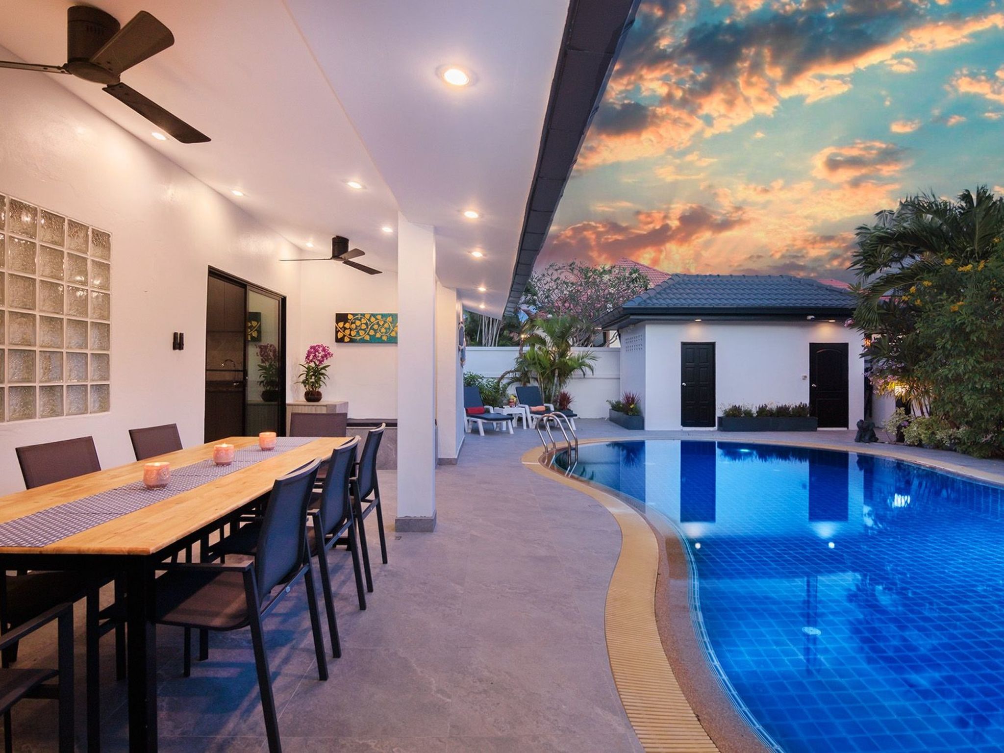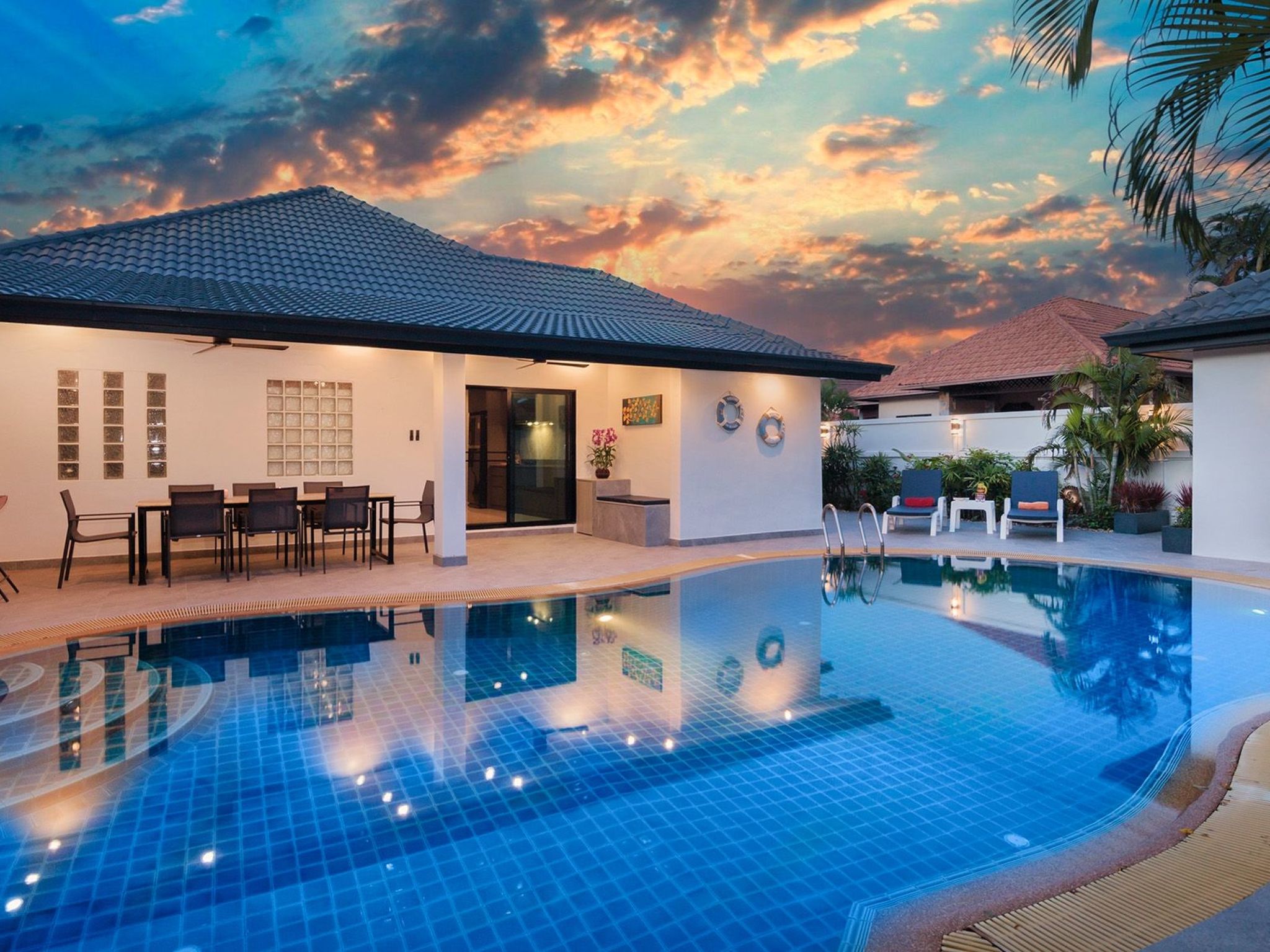 Die Villa ist nur wenige Minuten (mit dem Taxi oder Roller) vom Zentrum von Pattaya mit seinen großen Einkaufszentren, dem berühmten Nachtleben, den Straßenmärkten, den Golfplätzen und den schönen Stränden entfernt.