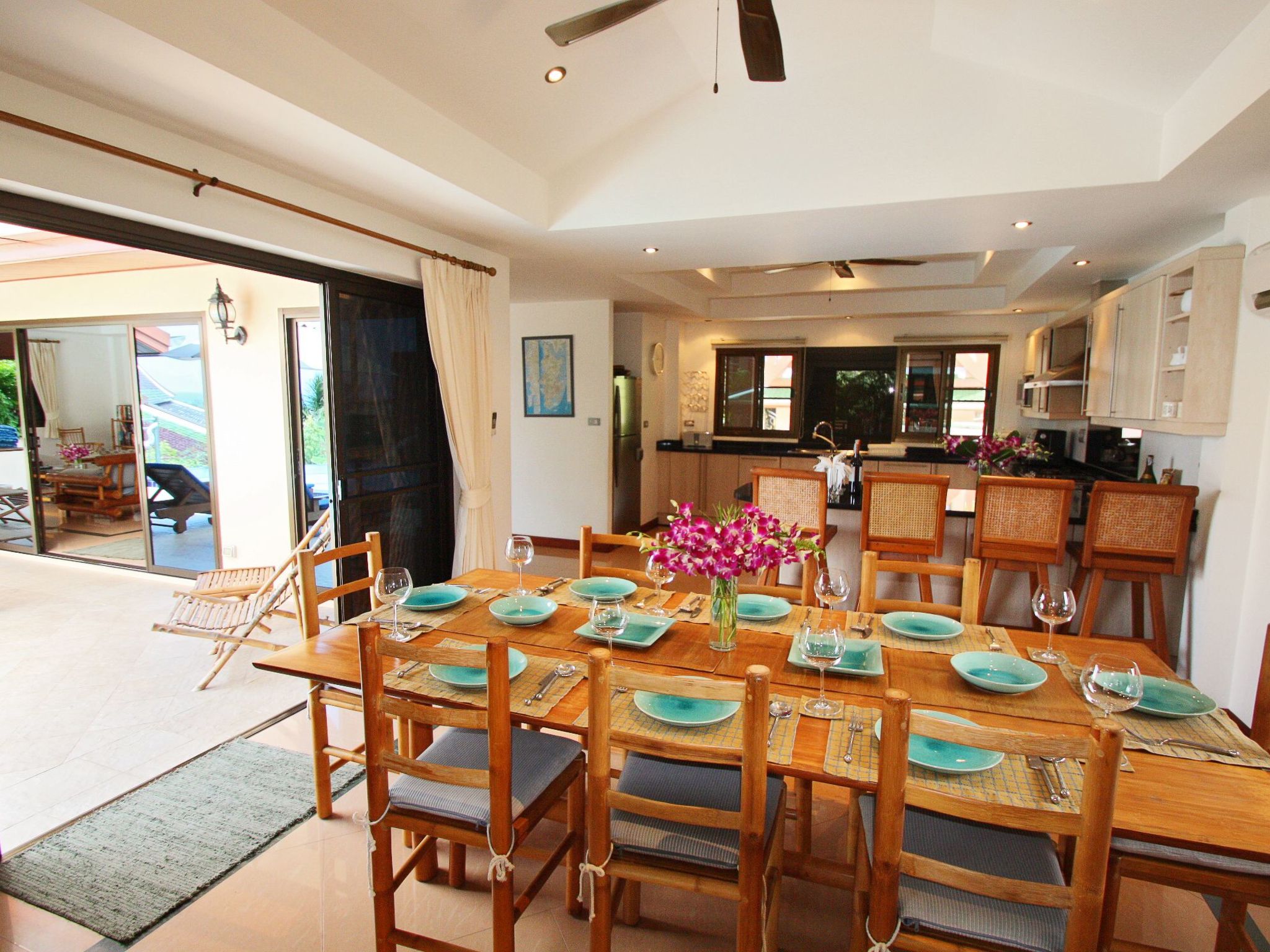 Jedes Schlafzimmer hat zu öffnende Schiebetüren, die zu einem kleinen Patio-Bereich führen. Wunderschöne Dächer im thailändischen Stil verleihen der Villa ein traditionelles Flair, während im Inneren alle modernen Einrichtungen vorhanden sind, mit einer offenen Raumaufteilung im Obergeschoss, um die kühle Brise zu genießen.