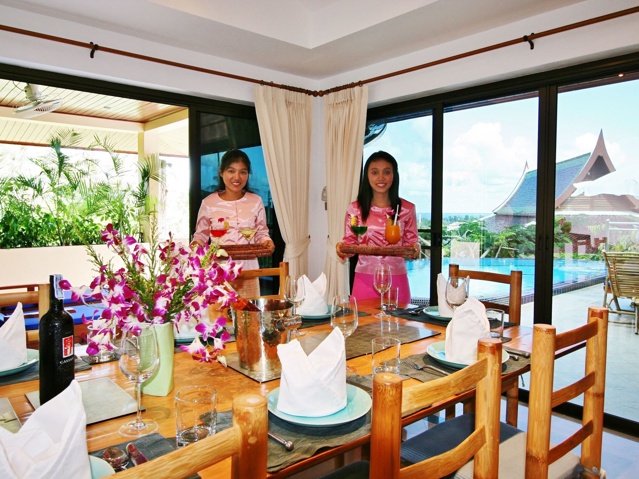 Der private Infinity-Pool auf dem Dach mit abgelegenen Sonnenbadebereichen und einer schönen Sala zum Genießen entspannender Sonnenuntergänge ist ein echtes Highlight. Der Zugang zur Villa erfolgt über ein großes, ferngesteuertes, schmiedeeisernes Tor, eine kurze Zufahrt und einen Carport im thailändischen Stil.