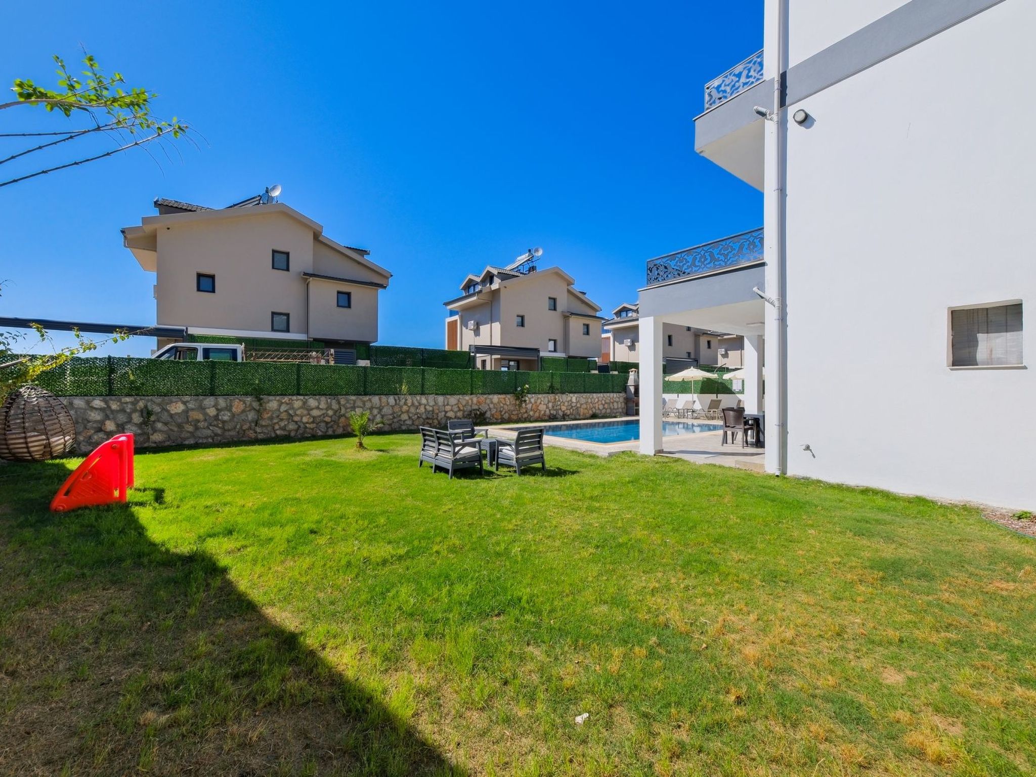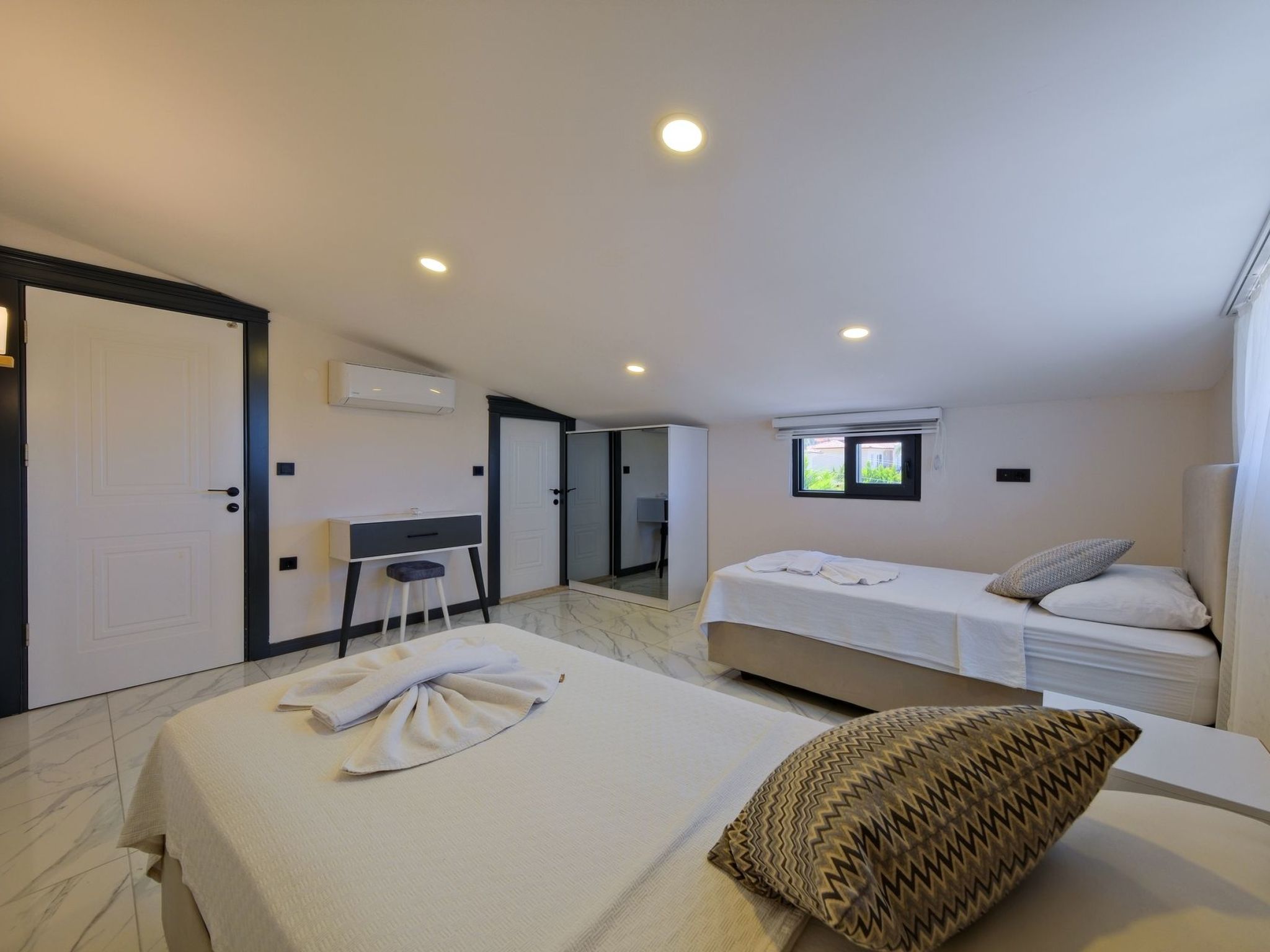 Entdecken Sie das ideale Urlaubszuhause in der malerischen Landschaft von Ölüdeniz, Anatolien, dass mit seiner Ausstattung und Atmosphäre für bis zu 8 Personen ein unvergleichliches Urlaubserlebnis verspricht. Jedes der vier Schlafzimmer ist sorgfältig eingerichtet, um Ihnen einen komfortablen Aufenthalt zu gewährleisten. Die Vollausstattung mit einer Klimaanlage in allen Räumen sorgt auch in den heißen Sommermonaten für angenehme Kühle. Für zusätzlichen Komfort steht Ihnen eine Waschmaschine zur alleinigen Nutzung zur Verfügung, und die Küche ist mit Annehmlichkeiten wie einem Gasherd, einer Kaffeemaschine, einem Wasserkocher und einer Spülmaschine ausgerüstet. Die Nutzung von Solarenergie unterstreicht das nachhaltige Konzept des Hauses.