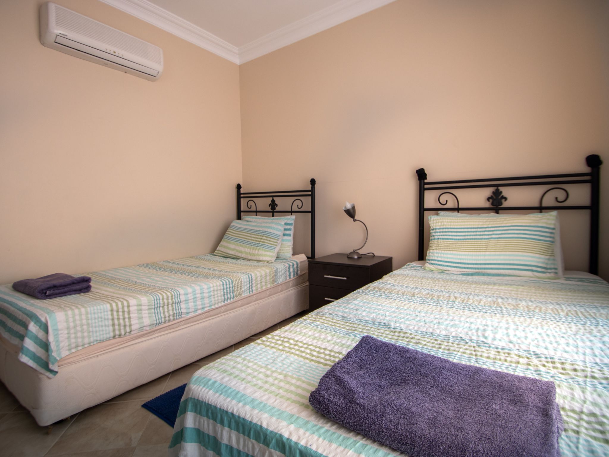 Im Inneren ist die Villa mit drei gut ausgestatteten Schlafzimmern und drei Badezimmern ausgestattet, die Komfort und Privatsphäre für alle Gäste gewährleisten. Jedes Badezimmer ist mit einer Badewanne und einer Dusche ausgestattet, die für Komfort und Entspannung sorgen. Die Klimaanlage im gesamten Haus garantiert ein angenehmes Klima, unabhängig von der Außentemperatur. Praktische Annehmlichkeiten wie eine Waschmaschine, ein Wäschetrockner, ein 2-Platten-Herd mit Gaskocher, eine Geschirrspülmaschine, ein Wasserkocher und ein Minibackofen sorgen für ein angenehmes Wohngefühl, so dass Sie und Ihre Familie oder Freunde sich ganz auf die Schaffung von Erinnerungen konzentrieren können.