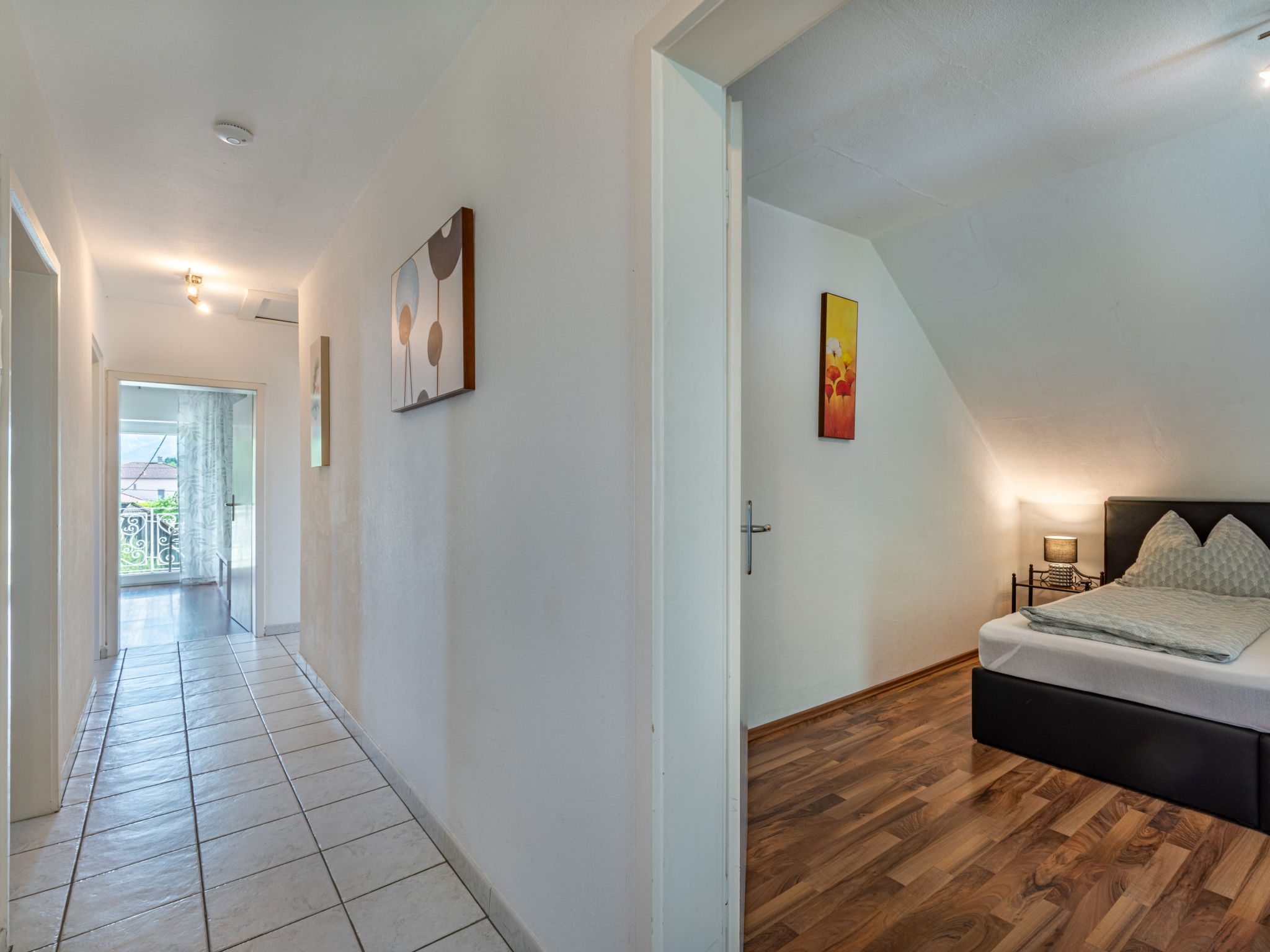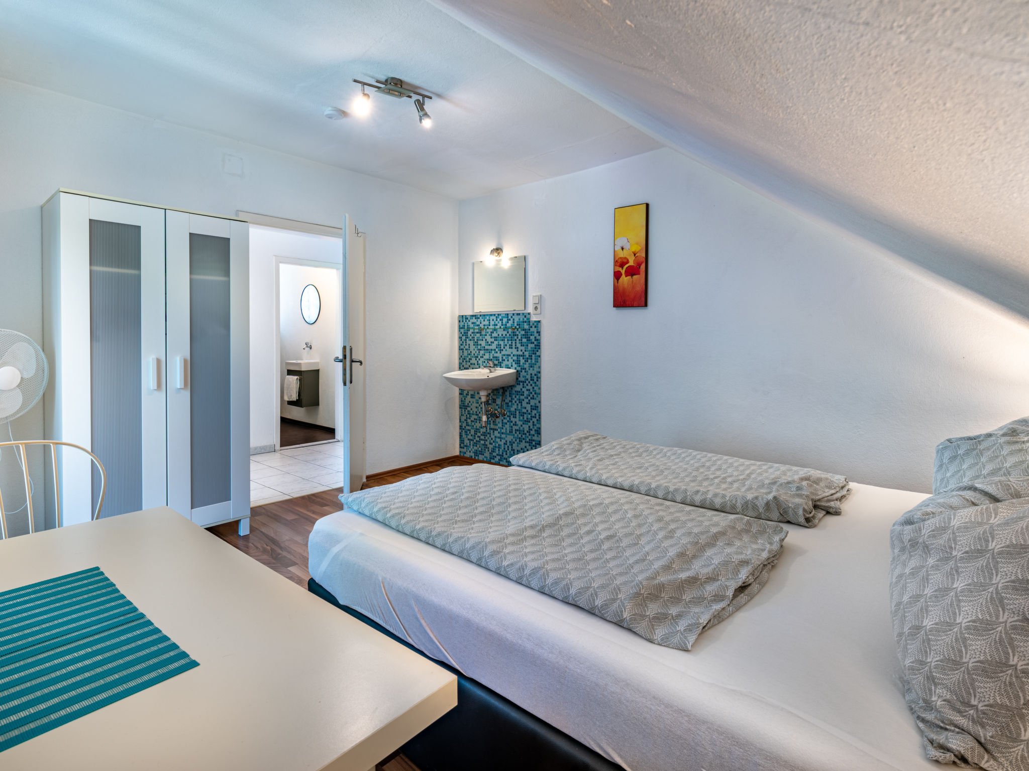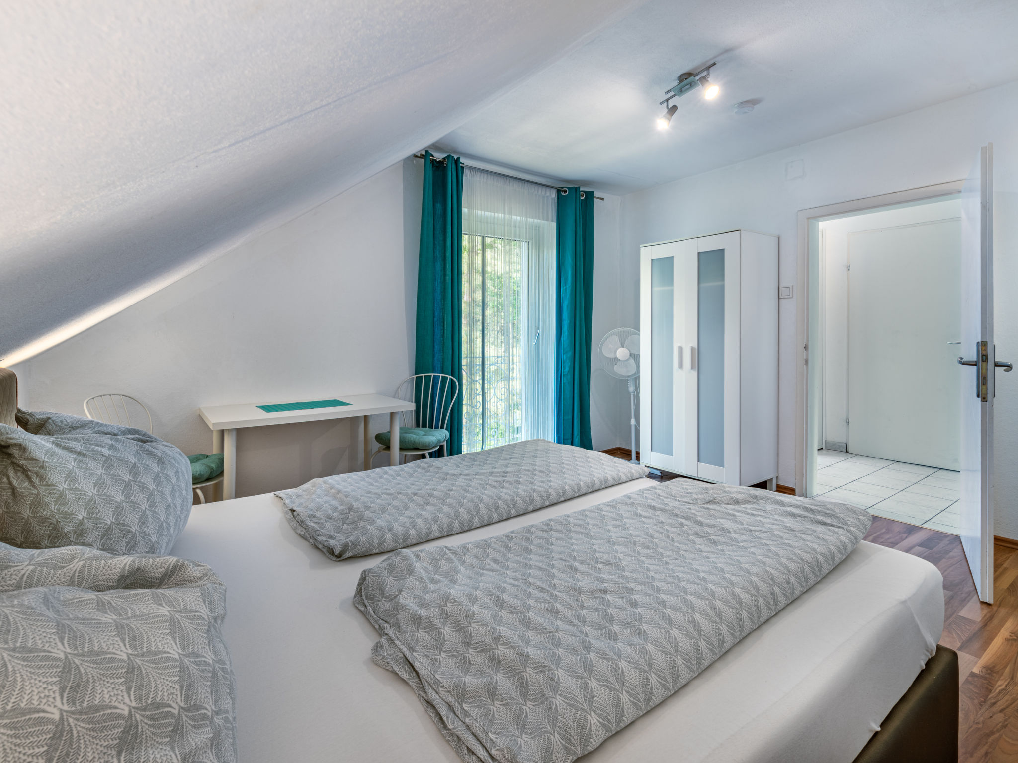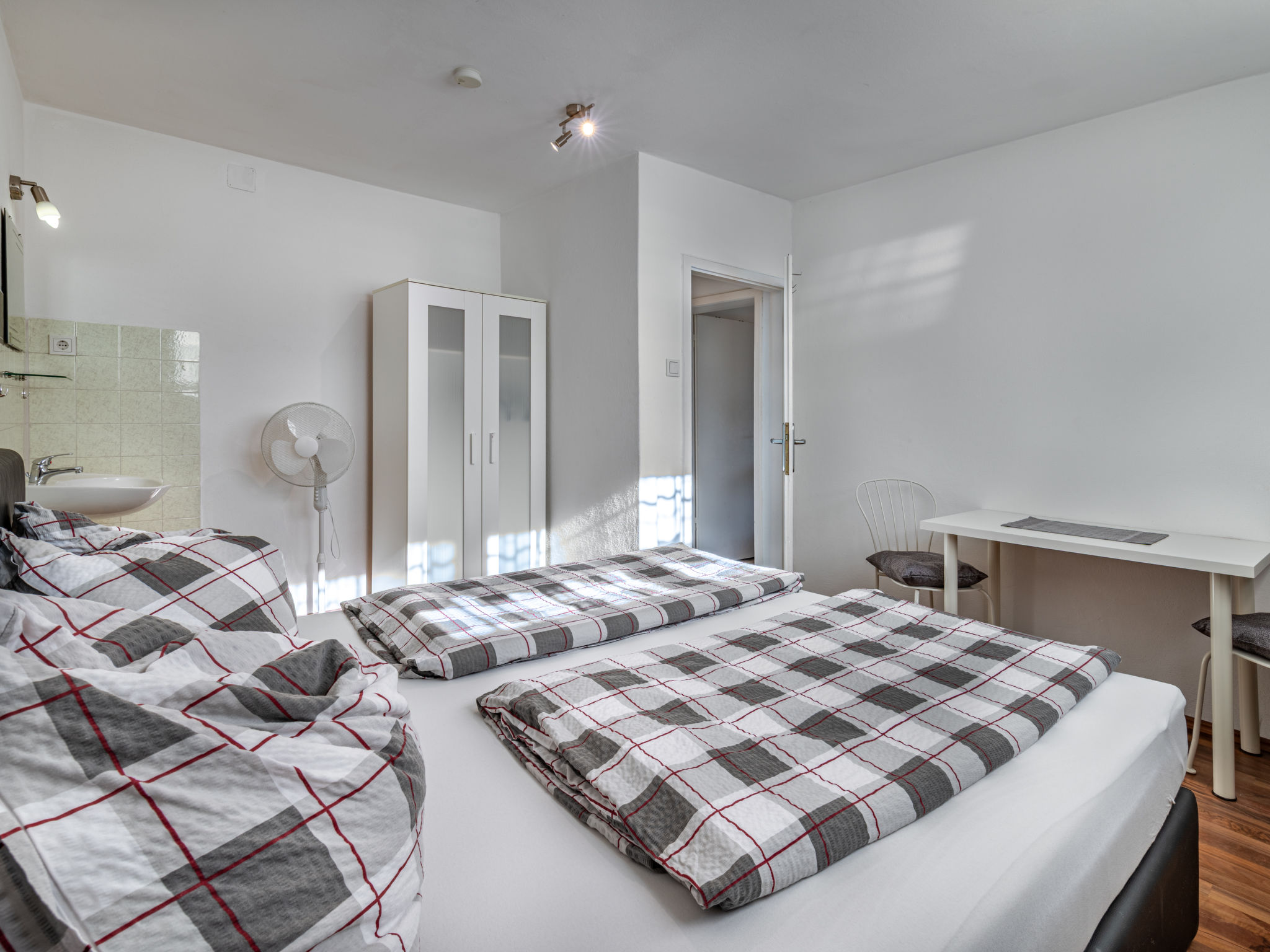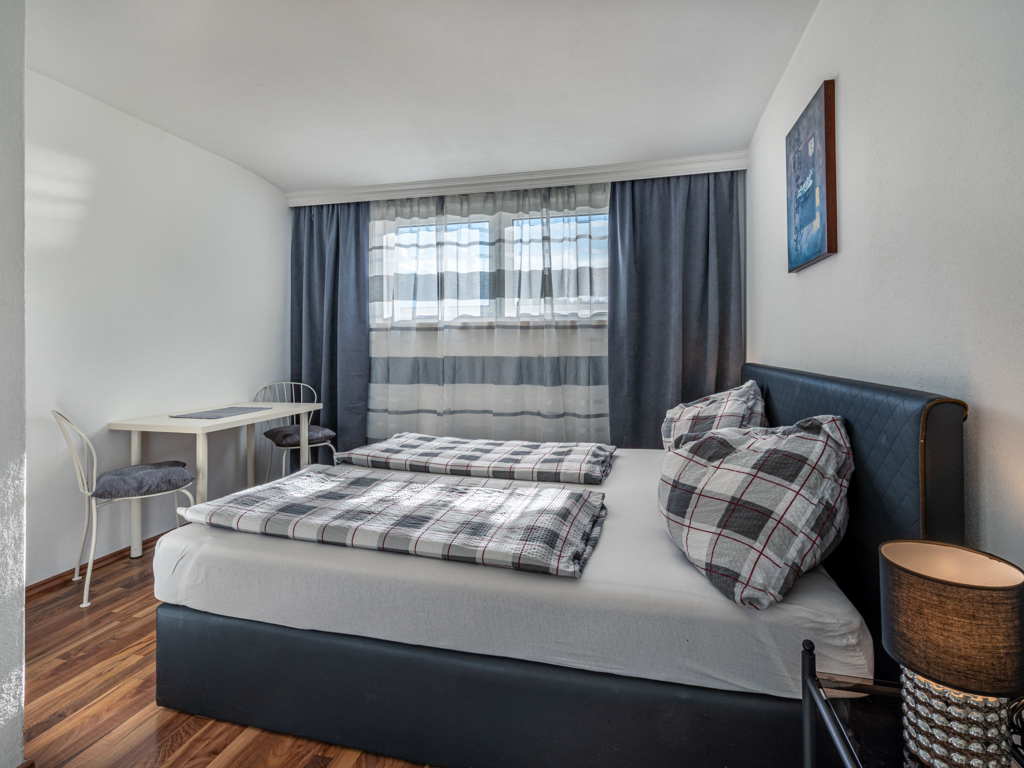 4-Zimmer-Wohnung 80 m2 im 2. Stock. Renoviert im Jahre 2014: Wohn-/Esszimmer abgeschrägtes mit Sat-TV (Flachbildschirm). Ausgang zum Balkon. Abgeschrägt 2 Doppelzimmer, jedes Zimmer mit Waschbecken. Abgeschrägt 1 Doppelzimmer mit Waschbecken. Ausgang zum Balkon. Küche (4 Kochplatten, Backofen, Mikrowelle). Dusche, sep. WC. Balkon 6 m2. Zur Verfügung: Internet (Wireless LAN, gratis). Bitte beachten: Kühlschrank ohne Gefrierfach. Maximal 1 Haustier/Hund erlaubt.