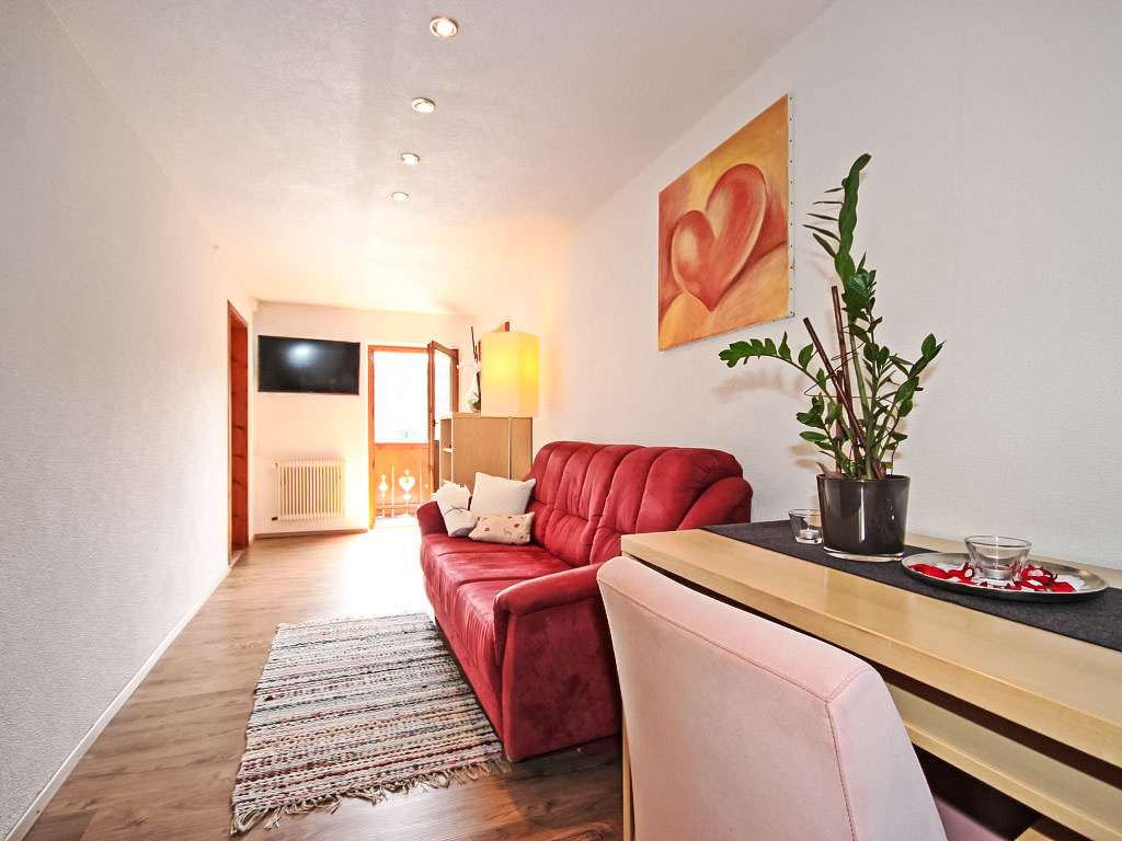 4-Zimmer-Wohnung 130 m2, im Dachgeschoss. Teilweise abgeschrägt, gemütlich eingerichtet: Eingang. 1 Doppelzimmer mit Dusche/WC. 2 Zimmer, jedes Zimmer mit 1 Diwanbett, 1 Doppelbett und Waschbecken. Durchgangszimmer mit 1 Doppeldiwanbett und Sat-TV (Flachbildschirm). Ausgang zum Balkon. Küche (4 Kochplatten, Backofen, Geschirrspüler, Mikrowelle, elektrische Kaffeemaschine, Kapseln für die Kaffeemaschine (Bohnen)) mit Essecke. Dusche, Dusche/WC, sep. WC. Balkon 20 m2. Gartengrill. Herrliche Panoramasicht auf die Landschaft. Zur Verfügung: Kinderhochstuhl, Babybett, Haartrockner. Internet (Wireless LAN, gratis). Geeignet für Familien. 1 Haustier/Hund erlaubt. Die Betten werden je nach Personenanzahl zur Verfügung gestellt.