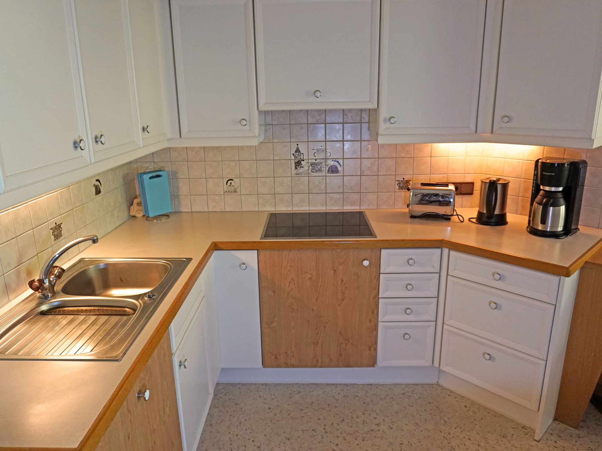 4-Zimmer-Wohnung 100 m2 im 3. Stock. Geschmackvoll und gemütlich eingerichtet: Eingang. 1 Doppelzimmer mit Dusche/WC. Ausgang zum Balkon. 1 Zimmer mit 1 franz. Bett (140 cm), Sat-TV (Flachbildschirm). Wohn-/Schlafzimmer mit 1 Ausziehbett (2 Pers.), Sat-TV (Flachbildschirm). Ausgang zum Balkon. Wohnküche (Geschirrspüler, 4 Glaskeramikherd Platten, elektrische Kaffeemaschine, Kombinationsmikrowelle) mit Essecke und Stereoanlage. Ausgang zum Balkon. Bad/WC, Doppelwaschbecken. Balkon 30 m2. Zur Verfügung: Safe, Kinderhochstuhl, Babybett, Haartrockner. Internet (Wireless LAN). Bitte beachten: Nichtraucher-Unterkunft. Gesamte Wohnung wird im Sommer 2022 renoviert!