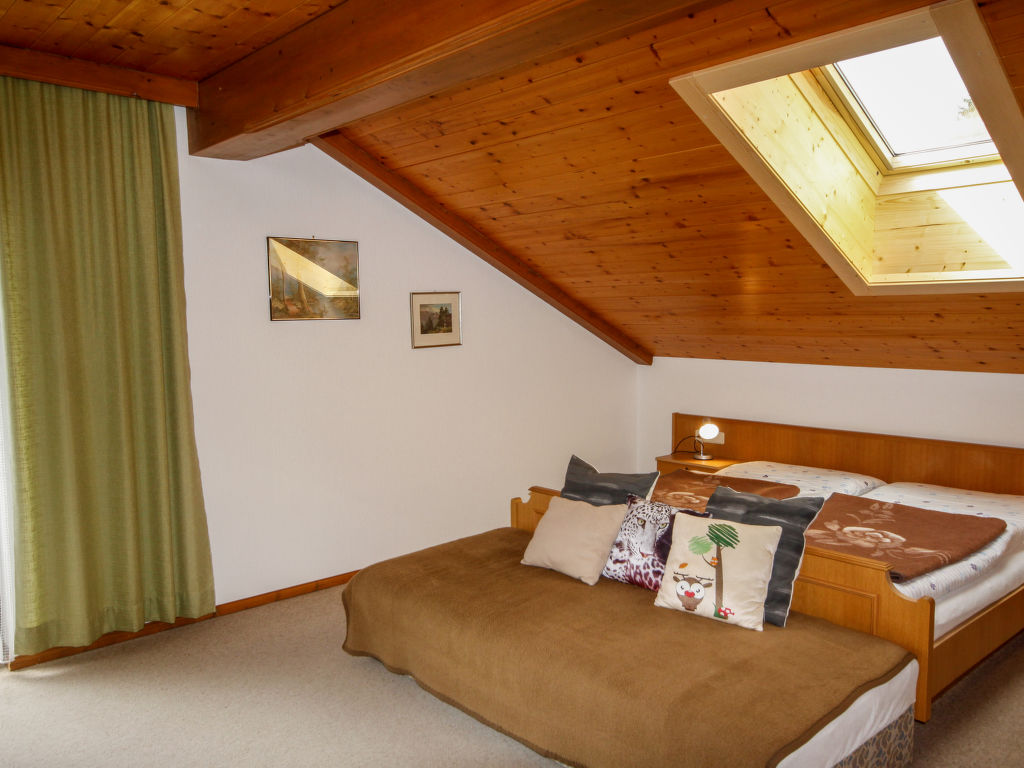2-Zimmer-Wohnung, 2. Etage (leichte Dachschräge), ca. 60 m². Flur mit Garderobe. Wohn-/Schlafraum mit 2x Bettcouch, Essplatz, Balkonausgang und Küchenzeile (4 Platten, Backofen, Mikrowelle, Geschirrspüler, Kühlschrank, Kaffeemaschine). Doppelzimmer mit Balkonausgang. Dusche/WC.