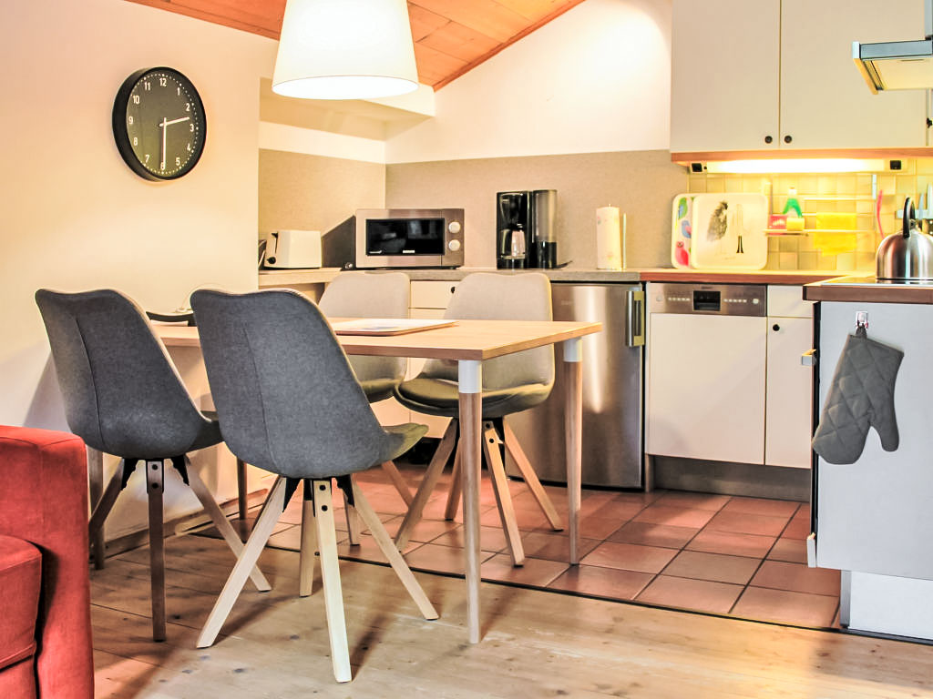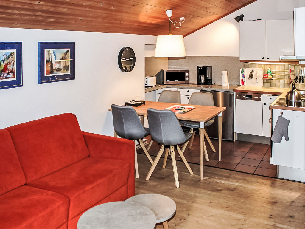 3-Zimmer-Wohnung 50 m2 im 1. Stock. Komfortabel eingerichtet: Wohn-/Esszimmer mit 1 Doppeldiwanbett und Sat-TV. Ausgang zum Balkon. 1 Doppelzimmer. 1 Zimmer mit 1 x 2 Etagenbetten. Offene Küche (Backofen, Geschirrspüler, 4 Induktionskochplatten). Dusche/WC. Balkon. Balkonmöbel. Sehr schöne Sicht auf die Berge. Parkplatz (1 Auto) beim Haus. Bitte beachten: Nichtraucher-Haus. Maximal 1 Haustier/Hund erlaubt. Die Wohnung ist teilweise abgeschrägt.