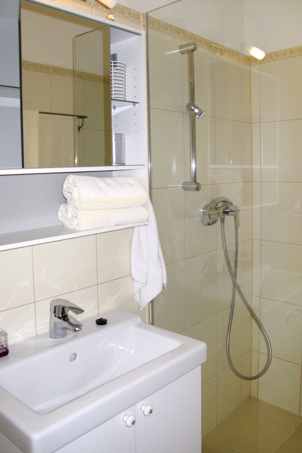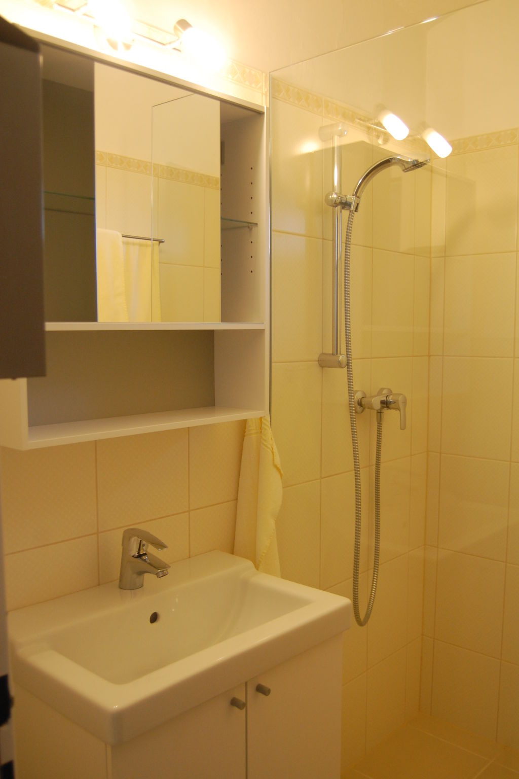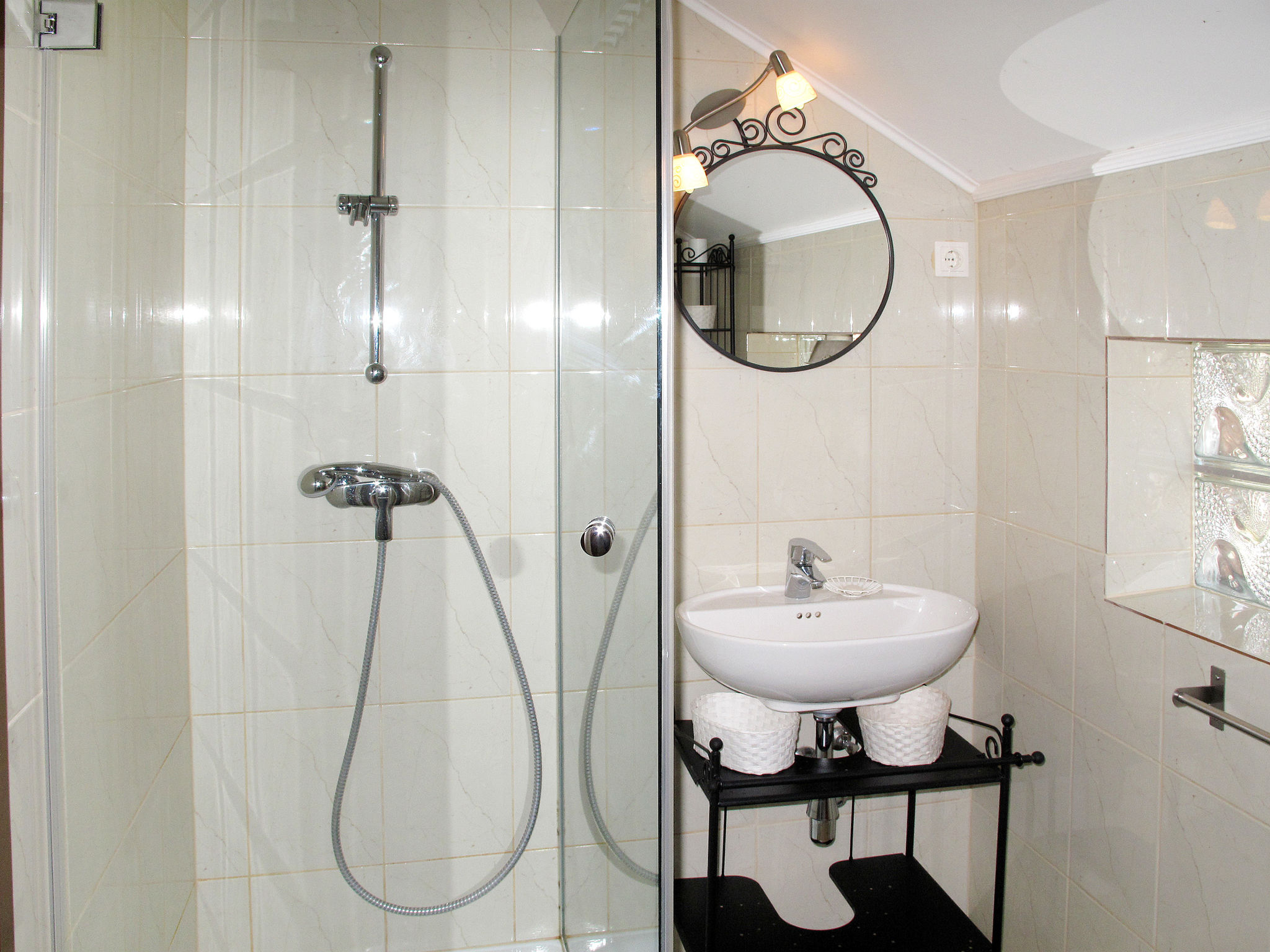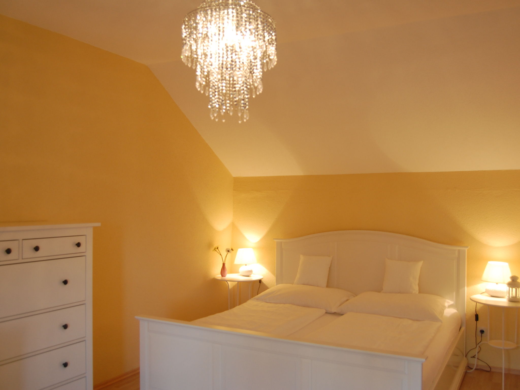 3-Zimmer-Haus, 2 Etagen, ca. 80 m². Erdgeschoss: Eingang in großen Wohn-/Schlafraum mit Sitzgruppe/Doppelbettcouch und Essplatz. Küche (4 Platten, Backofen, Mikrowelle, Kühlschrank, Kaffeemaschine, Toaster). Dusche. Sep.WC. Abstellraum. Treppe ins Obergeschoss: Schlafzimmer mit Doppelbett, Einzelbett und Ausziehbett. Doppelzimmer mit Dusche/WC. Es handelt sich um ein Nichtraucherhaus. Flexibilität bei der Bettenaufteilung: Es stehen mehr Schlafmöglichkeiten zur Verfügung als die maximal zugelassene Personenzahl, diese darf dennoch nicht überschritten werden.