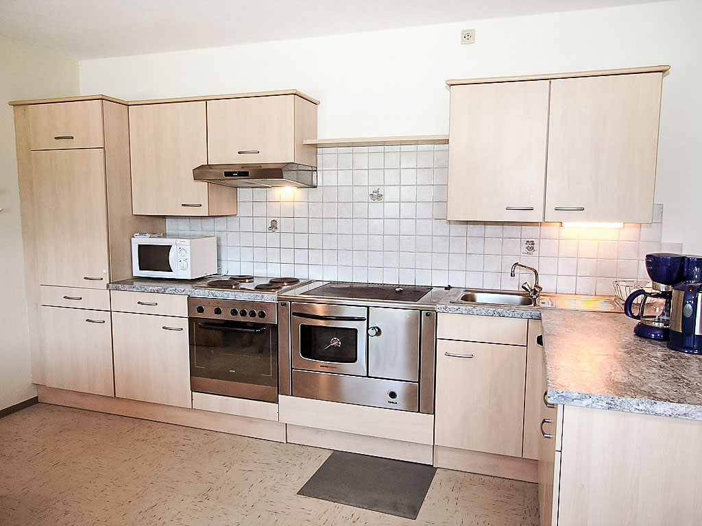 3-Zimmer-Wohnung 80 m2, im Erdgeschoss. Geräumig, schön und gemütlich eingerichtet: Eingang. 1 Zimmer mit 1 x 2 Etagenbetten, 1 Doppelbett. 1 Doppelzimmer. Grosses Wohn-/Esszimmer mit 1 Doppeldiwanbett und Sat-TV (Flachbildschirm). Offene Küche (4 Kochplatten, Backofen, Geschirrspüler, Toaster, Wasserkocher, Mikrowelle, elektrische Kaffeemaschine) mit Essecke und Holzofen. Dusche/WC. Terrasse. Terrassenmöbel. Herrliche Panoramasicht auf die Berge und die Landschaft. Bitte beachten: eigener Eingang.