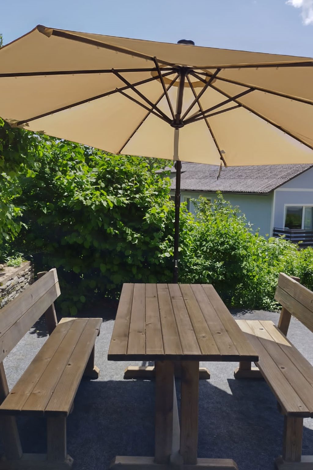3-Zimmer-Wohnung, 1. Etage, ca. 70 m². Flur. Wohnraum mit Sitzgruppe, Essplatz, Ausgang zu Balkon. Küche (4 Platten, Backofen, Mikrowelle, Kühlschrank, Kaffeemaschine). 2 Dreibettzimmer (Doppelbett und Einzelbett), eines davon mit Balkonausgang. Dusche. Sep.WC. Bei Belegung mit weniger Personen als der maximalen Personenzahl stehen nicht alle Wohneinheiten zur Verfügung.