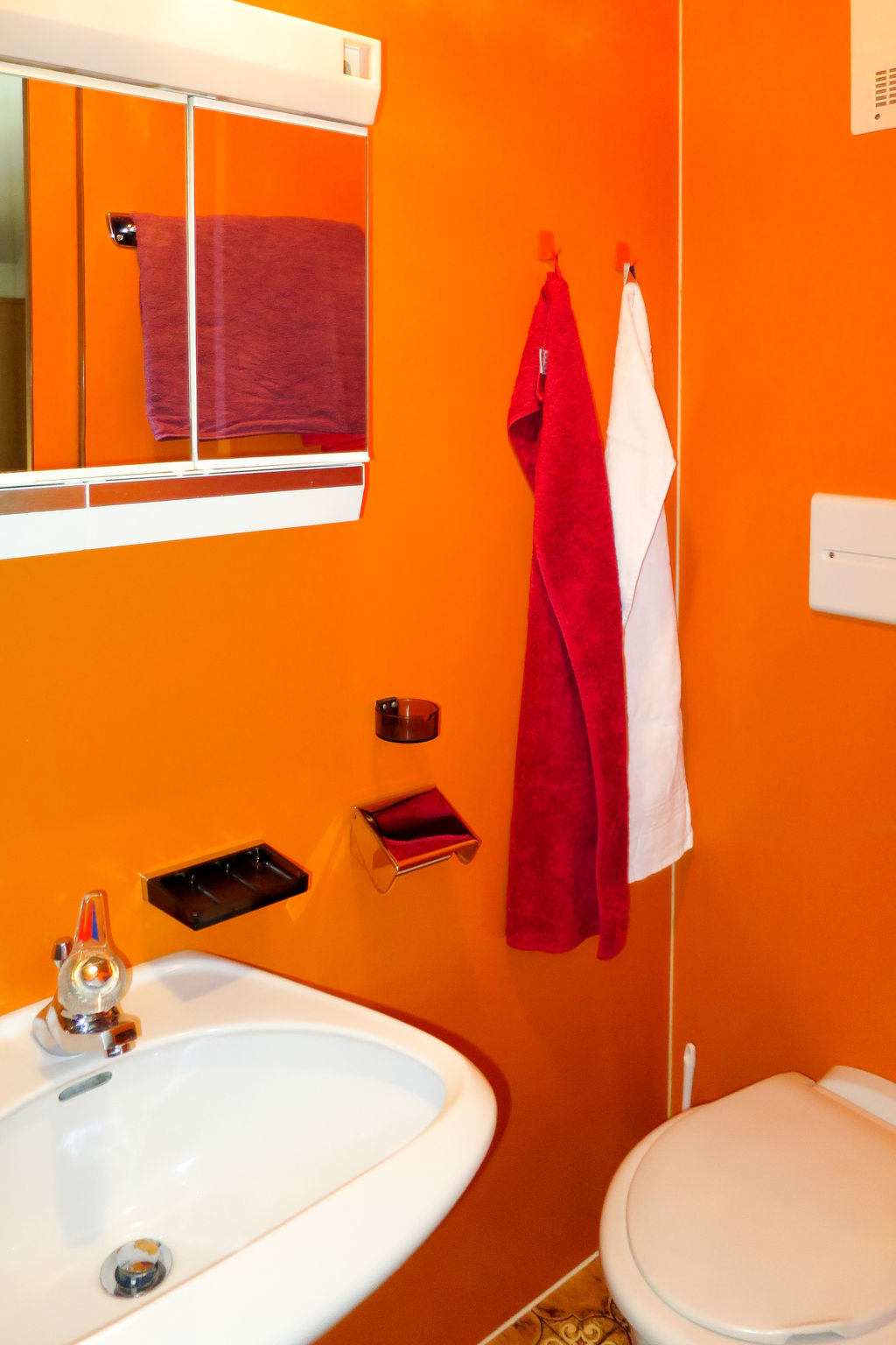2-Zimmer-Wohnung, 2. Etage (leichte Dachschräge), ca. 60 m². Flur mit Garderobe. Wohn-/Schlafraum mit Doppelbettcouch, Balkonausgang. Von hier Zugang zu Wohnküche (4 Ceranfelder, Backofen, Geschirrspüler, Kühlschrank, Kaffeemaschine, Wasserkocher, Toaster) mit Essplatz (Eckbank). Schlafzimmer mit Doppelbett, Einzelbett, Dusche/WC und Balkonausgang. Dusche/WC. Bei Belegung mit weniger Personen als der maximalen Personenzahl stehen nicht alle Wohneinheiten zur Verfügung.