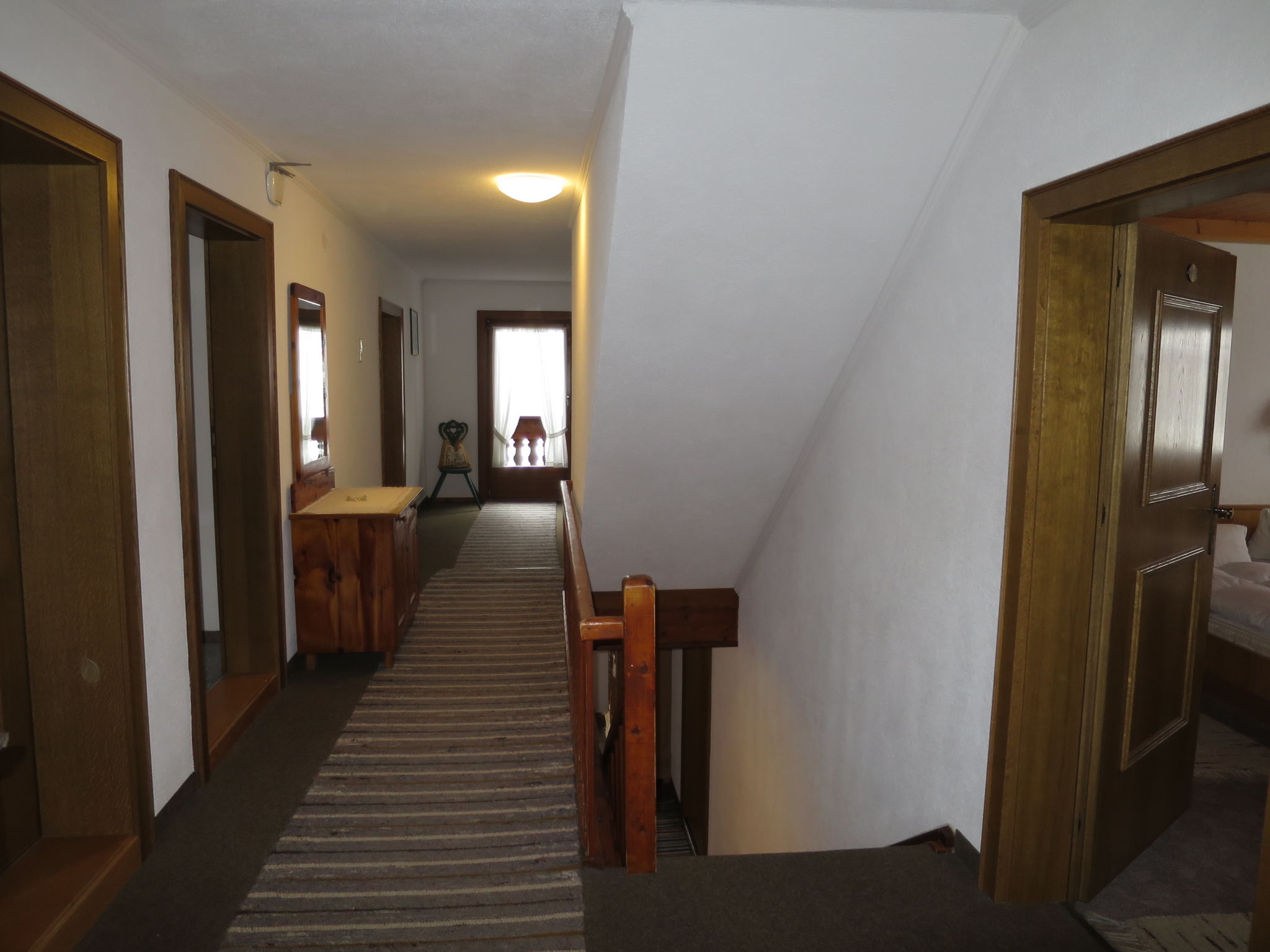 13-Zimmer-Wohnung, 2 Etagen, ca. 220 m². Separater Eingang in die 1. Etage: Flur mit Balkonausgang. Wohnküche (4 Ceranfelder, Backofen, Geschirrspüler, Kühlschrank, 2x Kaffeemaschine, Wasserkocher) mit Essplätzen (Eckbänke) für 18 Personen. Schlafzimmer mit Doppelbett, Bettcouch, Dusche/WC und Balkonausgang. Doppelzimmer mit Dusche/WC und Balkonausgang. Doppelzimmer mit Dusche/WC. Schlafzimmer mit Doppelbett, Bettcouch, Waschbecken und Balkonausgang. Doppelzimmer mit Waschbecken. Dusche.2. Etage: Flur mit Balkonausgang. Wohnküche (4 Platten, Backofen, Kühlschrank, Kaffeemaschine) mit Essplatz (Eckbank) für 6 Personen, Vorratsraum. 2 Schlafzimmer, jeweils mit Doppelbett, Bettcouch, Dusche/WC, eines mit Balkonausgang. 2 Schlafzimmer, jeweils mit Doppelbett, Bettcouch, Waschbecken, Balkonausgang. Doppelzimmer mit Waschbecken. Einzelzimmer mit Waschbecken und Balkonausgang. Bad/Dusche. Dusche. 2x sep.WC. Maximale Belegung: 24 Personen. Flexibilität bei der Bettenaufteilung: Es stehen mehr Schlafmöglichkeiten zur Verfügung als die maximal zugelassene Personenzahl, diese darf dennoch nicht überschritten werden.