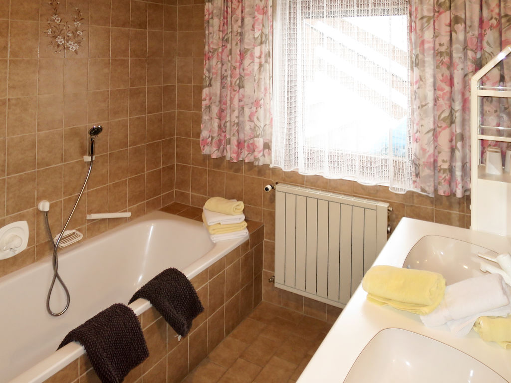 "Kerber (KPL225)", 4-Zimmer-Wohnung 85 m2, im Erdgeschoss. Rustikal und mit viel Holz eingerichtet: 1 Doppelzimmer. 1 Zimmer mit 1 Diwanbett und 1 Doppelbett. 1 Zimmer mit 1 Bett und 1 Doppelbett. Wohnküche (Backofen, Geschirrspüler, 4 Glaskeramikherd Platten, Toaster, Wasserkocher, Mikrowelle, elektrische Kaffeemaschine) mit Esstisch. Bad/Dusche, sep. WC, Doppelwaschbecken. Ölheizung. Parkettböden. Balkon. Balkonmöbel, Liegestühle. Schöne Panoramasicht. Zur Verfügung: Kinderhochstuhl, Babybett. Internet (Wireless LAN, gratis). Bitte beachten: Nichtraucher-Unterkunft. Eigener Eingang, Rauchmelder, Feuerlöscher. 4-Zimmer-Wohnung, Erdgeschoss (Hanglage), ca. 85 m². Flur mit Garderobe. Wohnküche (4 Ceranfelder, Backofen, Mikrowelle, Geschirrspüler, Kühlschrank, Kaffeemaschine, Wasserkocher) mit Essplatz (Eckbank). Doppelzimmer. Schlafzimmer mit Doppelbett und Bettcouch. Schlafzimmer mit Doppelbett und Einzelbett. Bad/Dusche/Doppelwaschbecken. Sep.WC. Bei Belegung mit weniger Personen als der maximalen Personenzahl stehen nicht alle Wohneinheiten zur Verfügung.