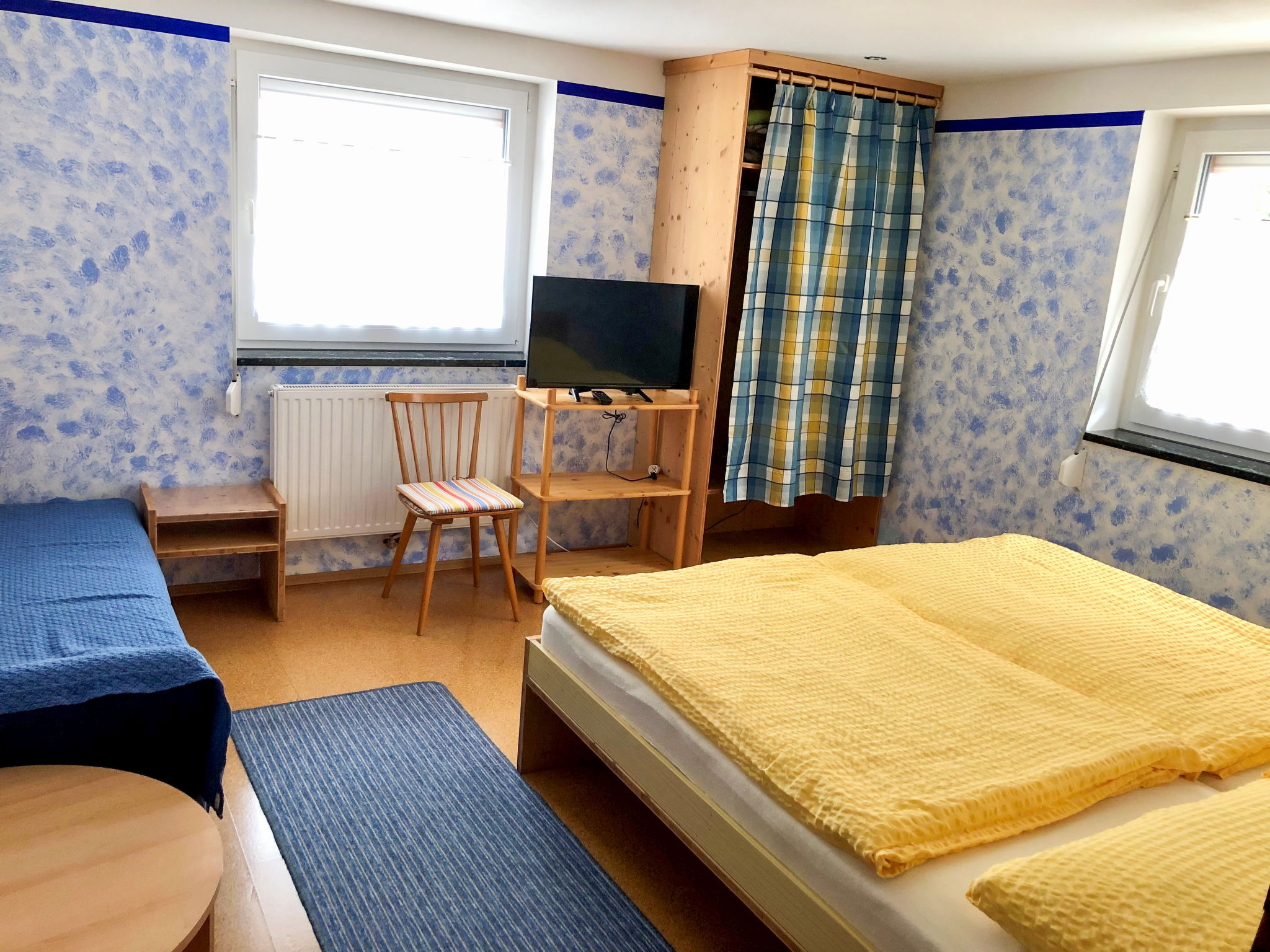 "Faulhaber (PET130)", 3-Zimmer-Wohnung 55 m2, im Erdgeschoss. Zweckmässig eingerichtet: 1 Zimmer mit 1 Diwanbett, 1 Doppelbett und Sat-TV. Ausgang zur Terrasse. 1 Doppelzimmer mit Sat-TV. Kleine Wohnküche (Geschirrspüler, 4 Glaskeramikherd Platten, Toaster, Wasserkocher, Mikrowelle, Tiefkühler, elektrische Kaffeemaschine) mit Esstisch. Dusche/WC. Ölheizung. Kleine Terrasse. Zur Verfügung: Babybett. Internet (Wireless LAN, gratis). Bitte beachten: Nichtraucher-Unterkunft.