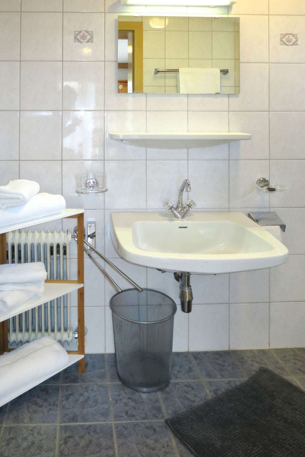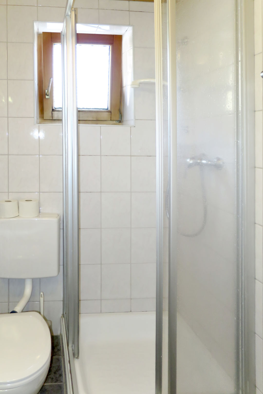 4-Zimmer-Wohnung, 1. Etage, ca. 80 m². Wohnküche (4 Platten, Backofen, Geschirrspüler, Kühlschrank, Kaffeemaschine, Wasserkocher) mit Sitzcouch und Essplatz (Eckbank). Schlafzimmer mit Doppelbett, Einzelbett und Dusche/WC, Balkonausgang. Doppelzimmer mit Dusche/WC und Balkonausgang. Einzelzimmer mit Dusche/WC.