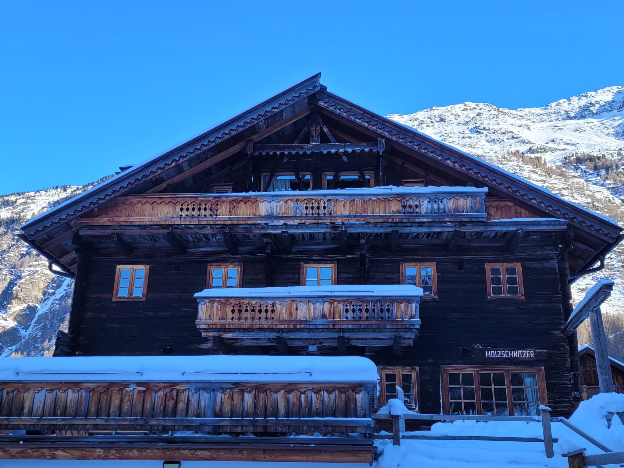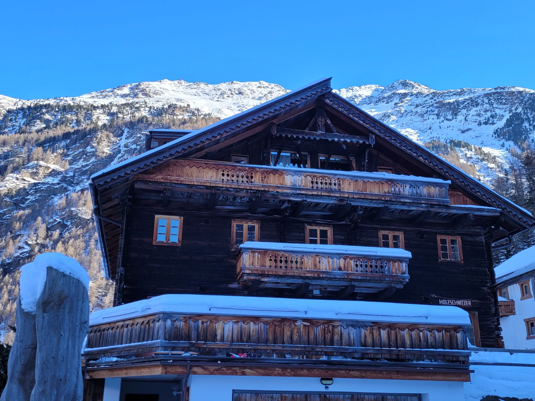 Zwieselstein 4 km von Sölden: Das 300 Jahre alte renovierte Chalet "Beim Holzschnitzer". Am Ortsrand, 300 m vom Zentrum von Zwieselstein, 4 km vom Skigebiet. Zur Mitbenutzung: Terrasse. Im Hause: Skiraum, Zentralheizung, Waschmaschine (zur Mitbenutzung, extra). Brötchenservice. Parkplatz. Lebensmittelgeschäft 4 km, Restaurant 200 m, Hallenbad 5 km, Thermalbad "Aqua Dome Längenfeld" 18 km. Golfplatz 40 km, Gondelbahn 4 km, Skibushaltestelle 20 m, Langlaufloipe 100 m. Nahe gelegene Sehenswürdigkeiten: Outdoor Park 'Area 47' in 40 km, Ötzidorf Umhausen 27 km, Klettersteig Stuibenfall 31 km, NEU: 007 Elements James Bond Museum. Bekannte Skigebiete sind gut erreichbar: Sölden 4 km, Obergurgl 9 km, Vent 13 km. Bekannte Seen in der Umgebung sind gut erreichbar: Piburger See 35 km. Bitte beachten: Gratis Skibus. Der gratis Skibus fährt zum Skigebiet Sölden, Hochgurgl, Vent. Bitte beachten: In diesem Haus sind weitere Ferienwohnungen mietbar. Frühstücks- und Halbpensionsmöglichkeit in der Nähe 200 m (Preis auf Anfrage). Im Haus befindet sich eine Schnitzerwerkstatt mit Galerie. Regionale Spezialitäten in 100m im "Gampe Ladele" der Familie.