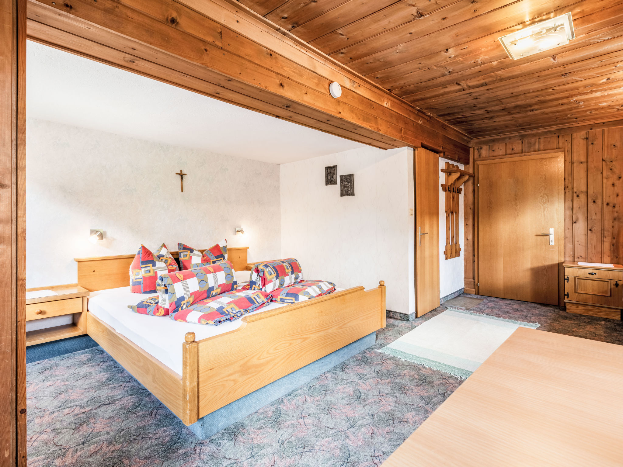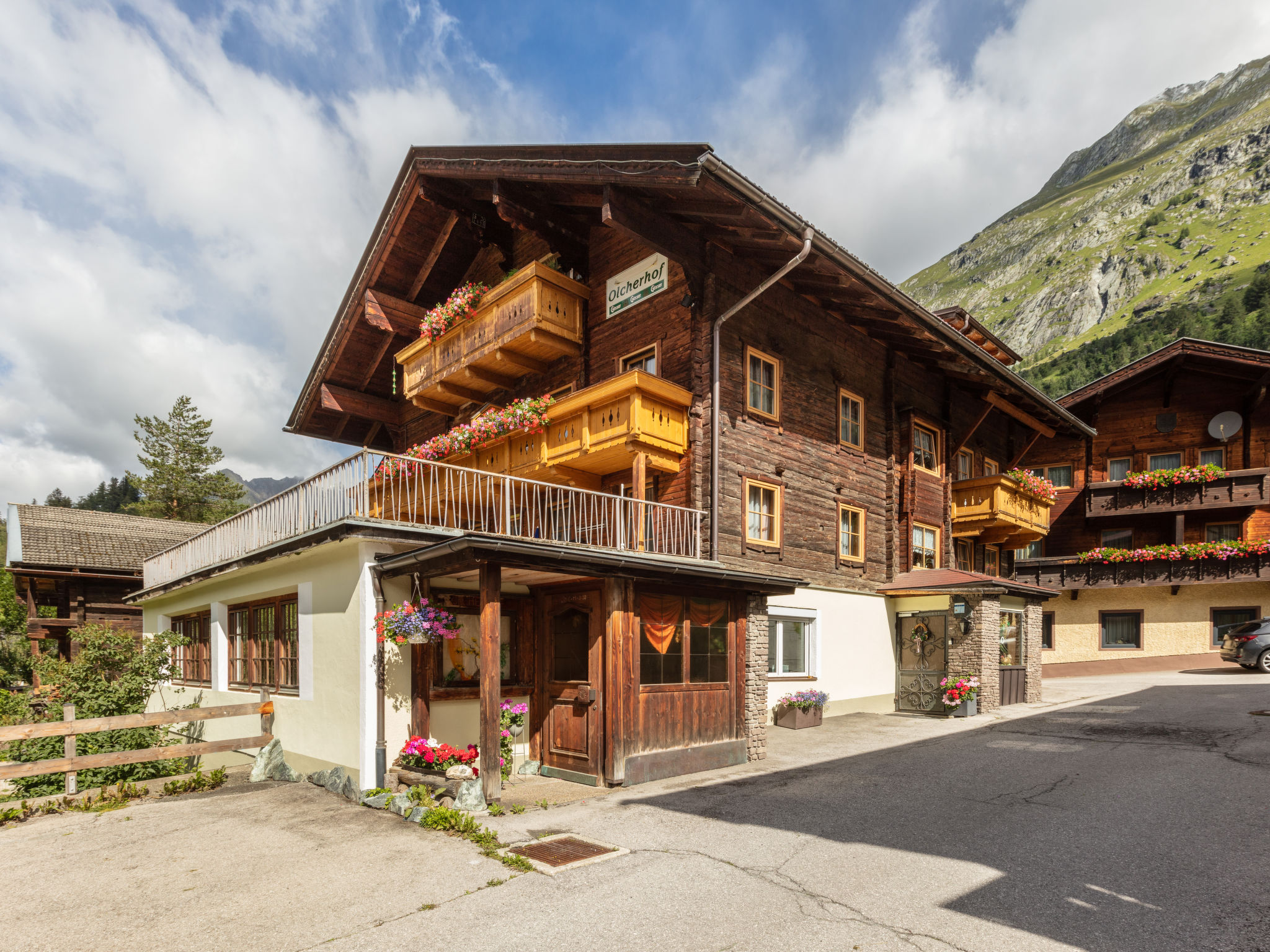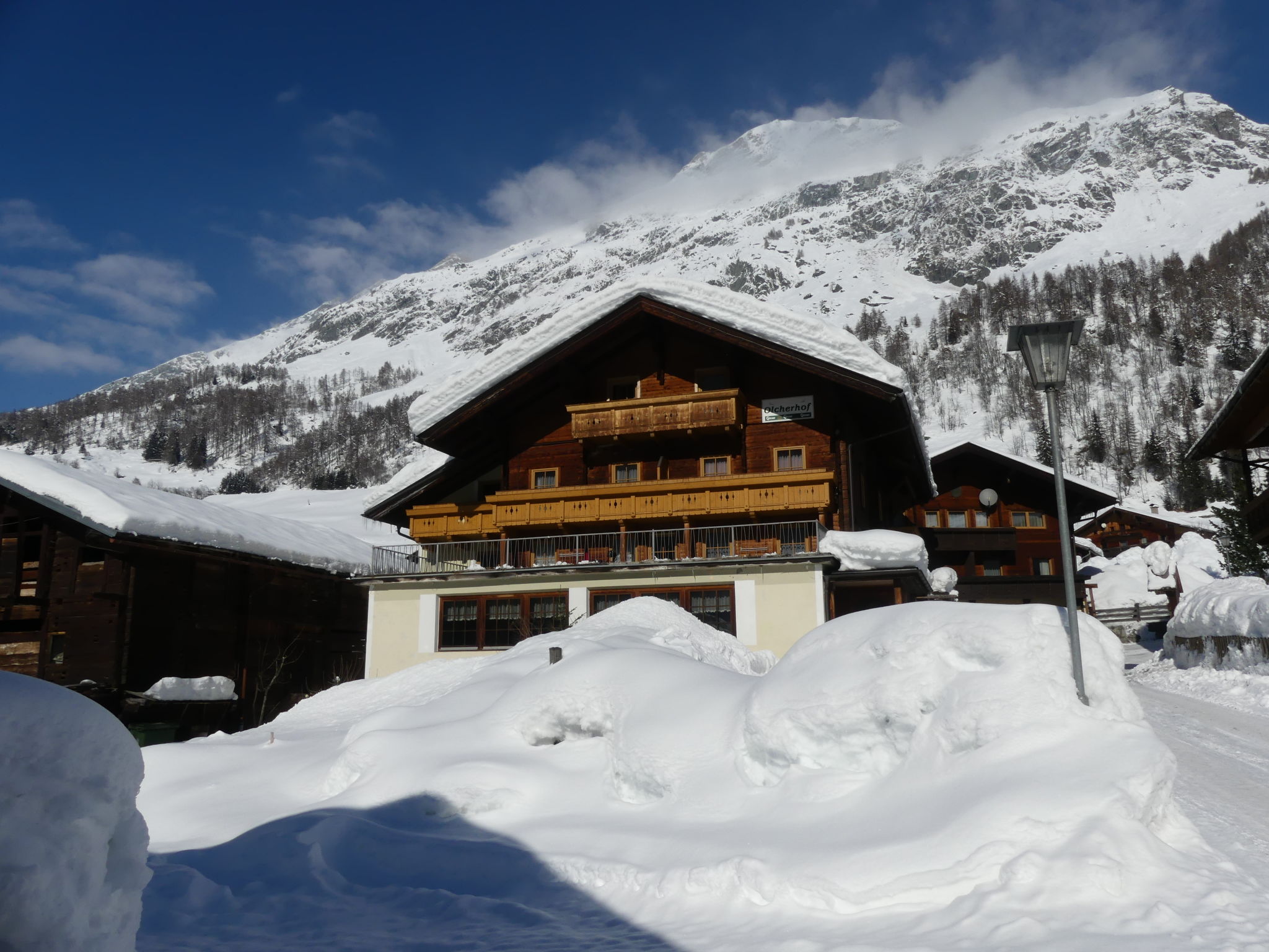 "Olcherhof", 11-Zimmer-Wohnung 350 m2 auf 3 Stockwerken. Geräumig, einfach und gemütlich eingerichtet: 1 grosses Zimmer mit Esstisch, Bar und Sat-TV. Grosses Esszimmer. Grosse Küche (8 Kochplatten, Backofen, Geschirrspüler, Toaster, Wasserkocher, Mikrowelle, Tiefkühler, elektrische Kaffeemaschine, Dampfgarer) mit Esstisch. 2 sep. WC's. Heizung. Obergeschoss: 3 Doppelzimmer, jedes Zimmer mit Dusche/WC, Sat-TV und Flachbildschirm. Ausgang zum Balkon. 1 Zimmer mit 1 Bett, 1 Doppelbett und Dusche/WC. Ausgang zur Terrasse. Heizung. 2. Obergeschoss: 2 Zimmer, jedes Zimmer mit 1 Bett, 1 Doppelbett, Dusche/WC, Sat-TV und Flachbildschirm. Ausgang zum Balkon. 3 Doppelzimmer, jedes Zimmer mit Dusche/WC, Sat-TV und Flachbildschirm. Heizung. Natursteinböden, Teppichboden. Terrassenmöbel, Balkonmöbel, Gartengrill. Schöne Panoramasicht auf die Berge. Zur Verfügung: Internet (Wireless LAN, gratis). Bitte beachten: Nichtraucher-Unterkunft. Bei Belegung mit weniger Personen als der maximalen Personenzahl stehen nicht alle Wohneinheiten zur Verfügung.