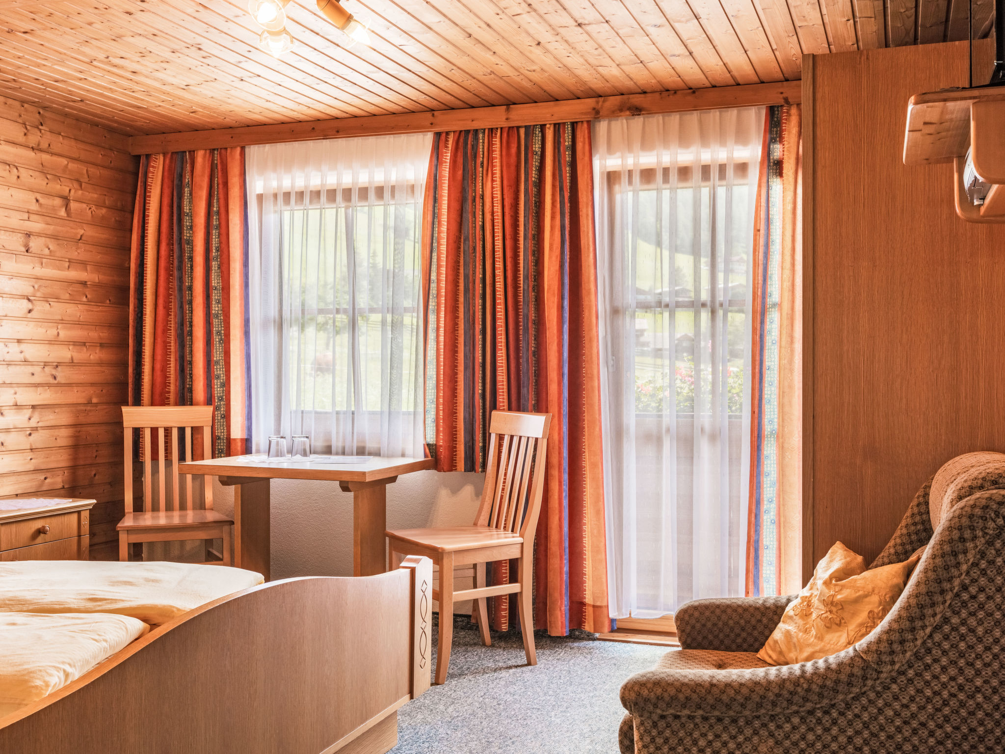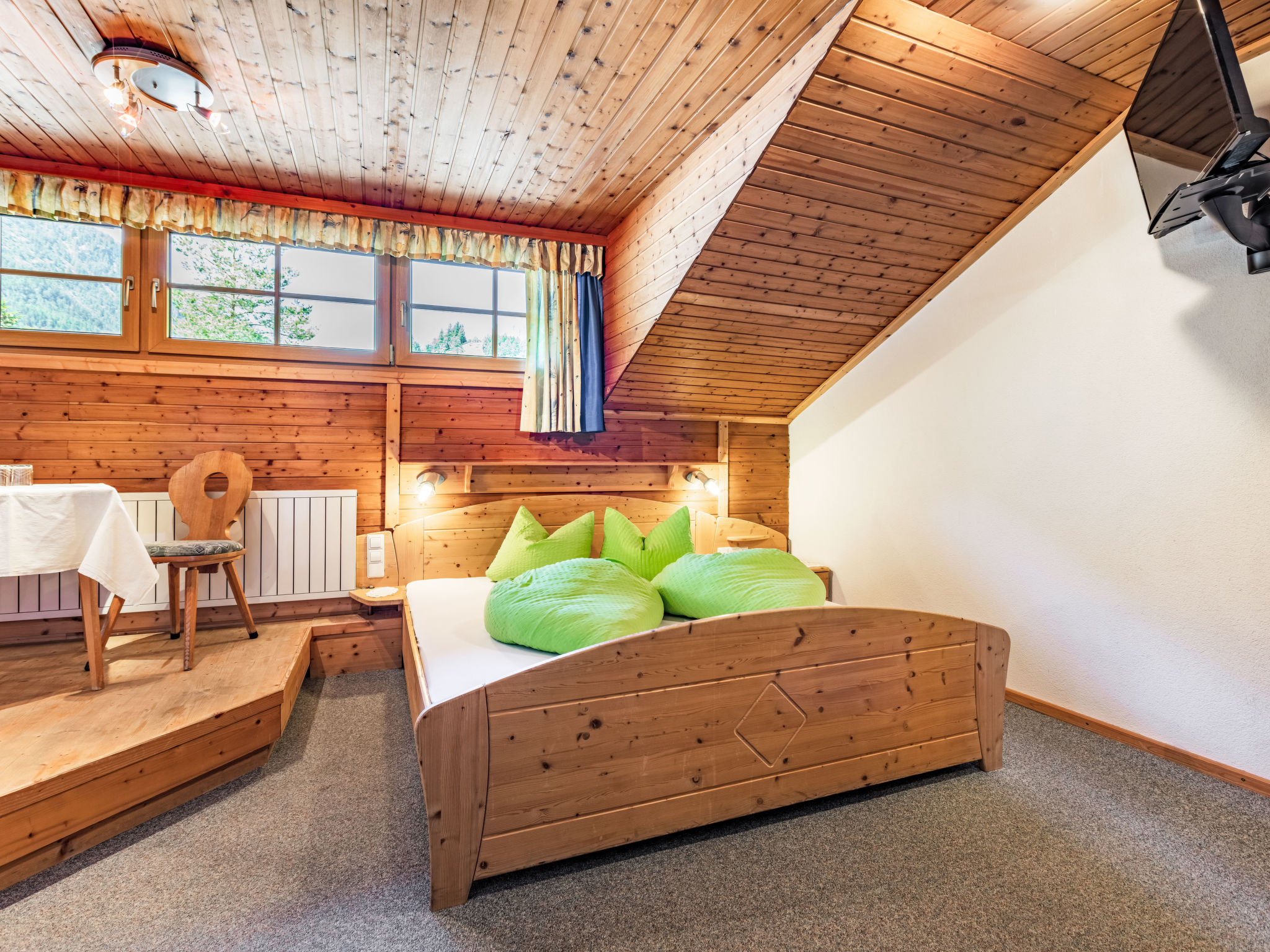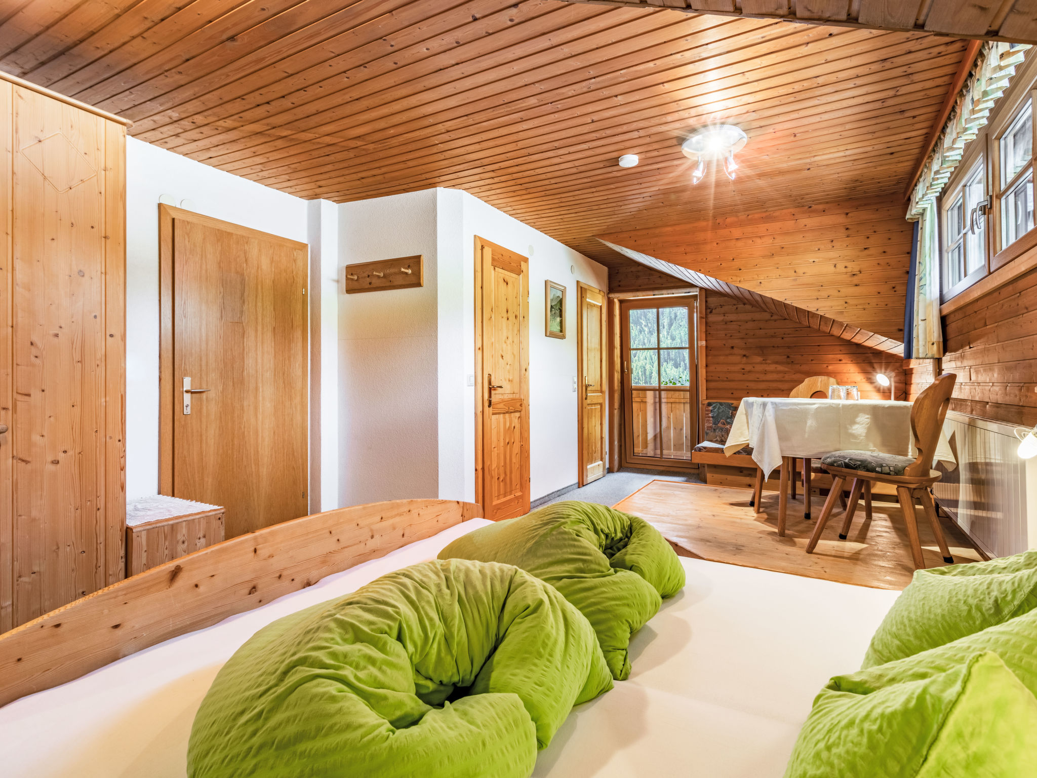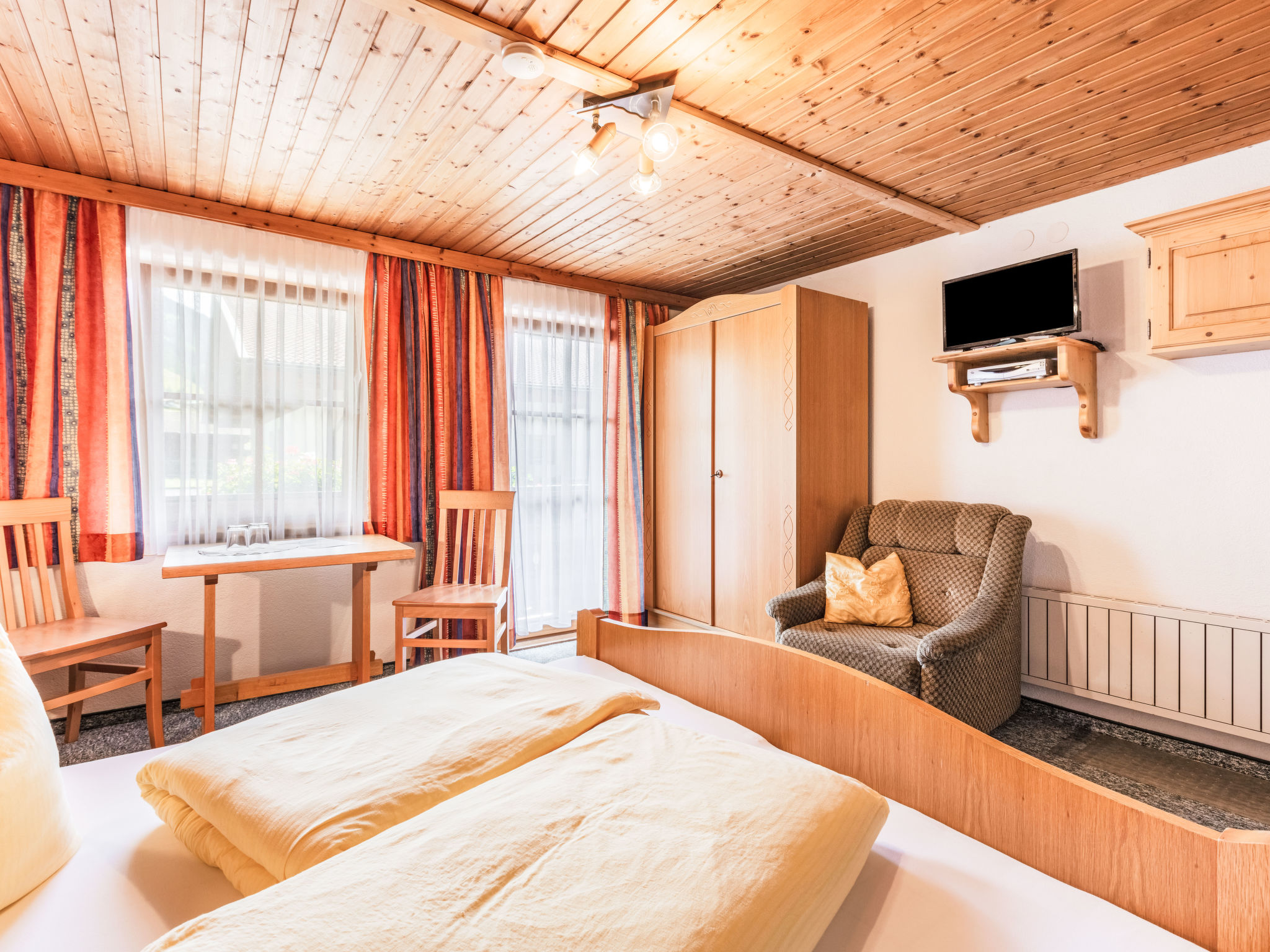 "Olcherhof", 11-Zimmer-Wohnung 350 m2 auf 3 Stockwerken. Geräumig, einfach und gemütlich eingerichtet: 1 grosses Zimmer mit Esstisch, Bar und Sat-TV. Grosses Esszimmer. Grosse Küche (8 Kochplatten, Backofen, Geschirrspüler, Toaster, Wasserkocher, Mikrowelle, Tiefkühler, elektrische Kaffeemaschine, Dampfgarer) mit Esstisch. 2 sep. WC's. Heizung. Obergeschoss: 3 Doppelzimmer, jedes Zimmer mit Dusche/WC, Sat-TV und Flachbildschirm. Ausgang zum Balkon. 1 Zimmer mit 1 Bett, 1 Doppelbett und Dusche/WC. Ausgang zur Terrasse. Heizung. 2. Obergeschoss: 2 Zimmer, jedes Zimmer mit 1 Bett, 1 Doppelbett, Dusche/WC, Sat-TV und Flachbildschirm. Ausgang zum Balkon. 3 Doppelzimmer, jedes Zimmer mit Dusche/WC, Sat-TV und Flachbildschirm. Heizung. Natursteinböden, Teppichboden. Terrassenmöbel, Balkonmöbel, Gartengrill. Schöne Panoramasicht auf die Berge. Zur Verfügung: Internet (Wireless LAN, gratis). Bitte beachten: Nichtraucher-Unterkunft. Bei Belegung mit weniger Personen als der maximalen Personenzahl stehen nicht alle Wohneinheiten zur Verfügung.