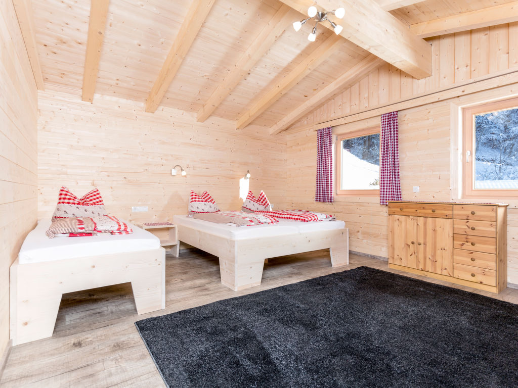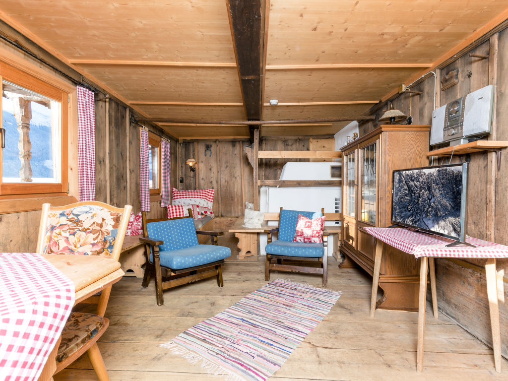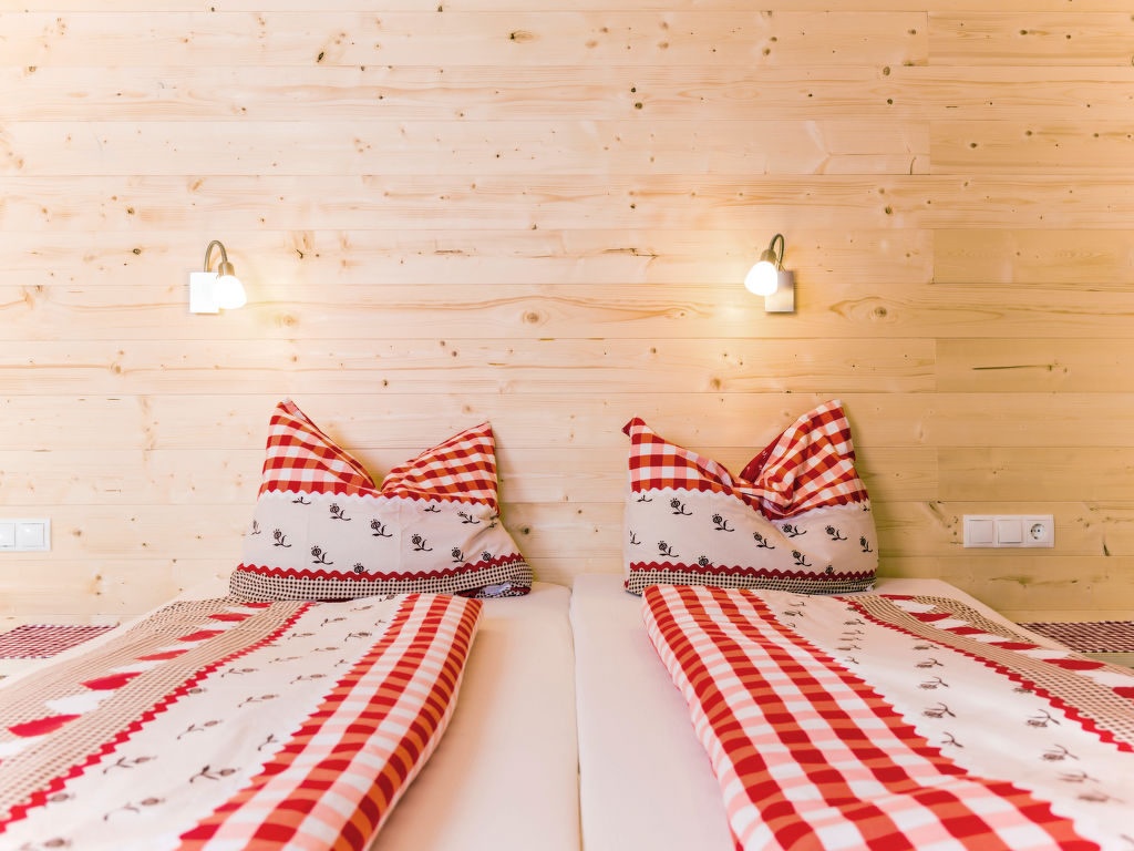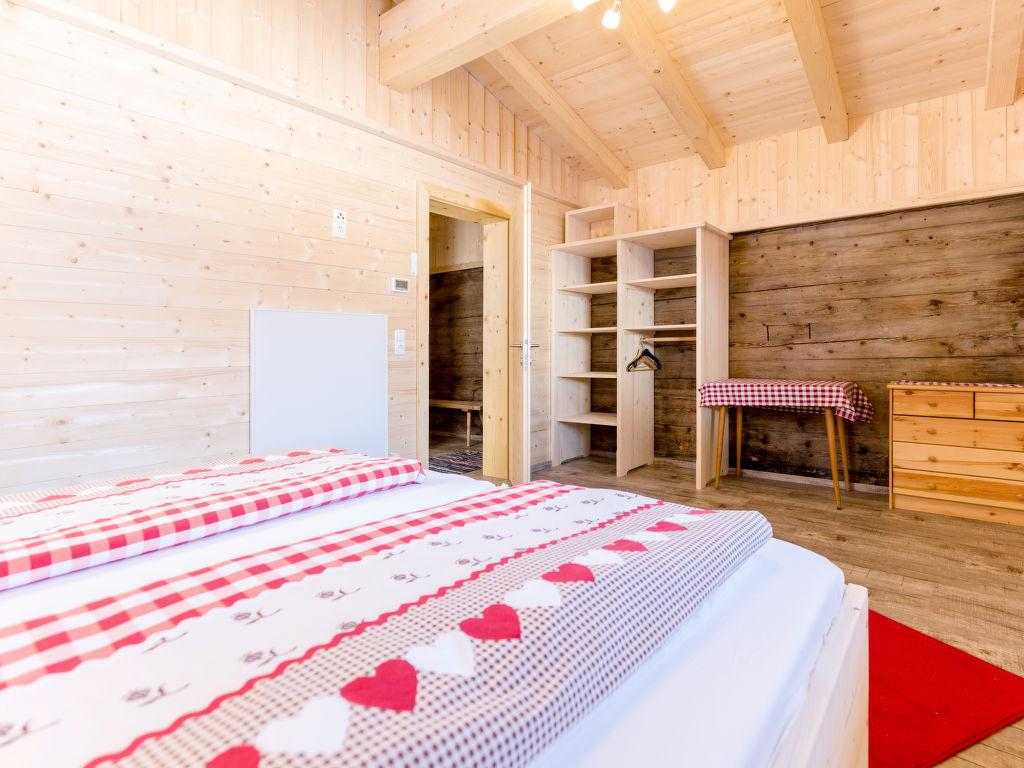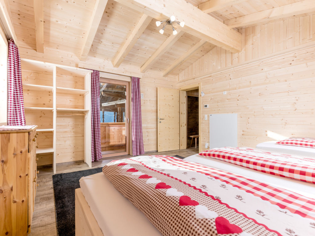 5-Zimmer-Haus, 2 Etagen, ca. 85 m². Erdgeschoss: Kleine Diele mit Garderobe. Gemütliche Bauernstube mit Essplatz (Eckbank) für 10 Personen, Holzofen und Couch. Küche (4 Platten, Backofen, Geschirrspüler, Kühlschrank, Kaffeemaschine, Wasserkocher, Toaster) mit Essplatz (Eckbank) für 6 Personen und Terrassenausgang. Bad/WC. Von der Diele über schmale Holztreppe in 1. Etage: Kleine Diele mit Balkonausgang. Großes Schlafzimmer (ca. 25 m², in der Mitte durch Vorhang abgeteilt) mit Doppelbett, Etagenbett und Einzelbett. Schlafzimmer mit franz. Bett. Doppelzimmer. Schlafzimmer mit Doppelbett, Einzelbett und Balkonausgang. Großes Bad mit 2 Duschkabinen. Sep.WC. Die Raumhöhe beträgt teilweise nur ca. 1,90 m. Die Durchgangshöhe der Türstöcke teilweise nur ca. 1,80 m.