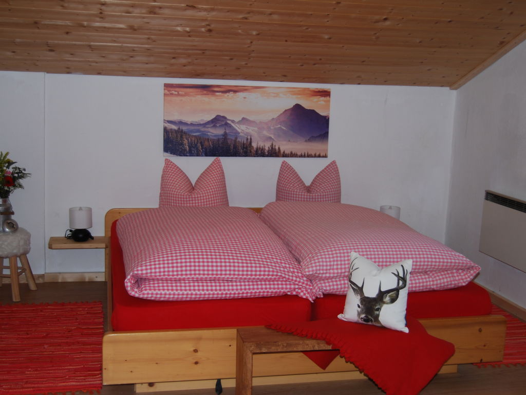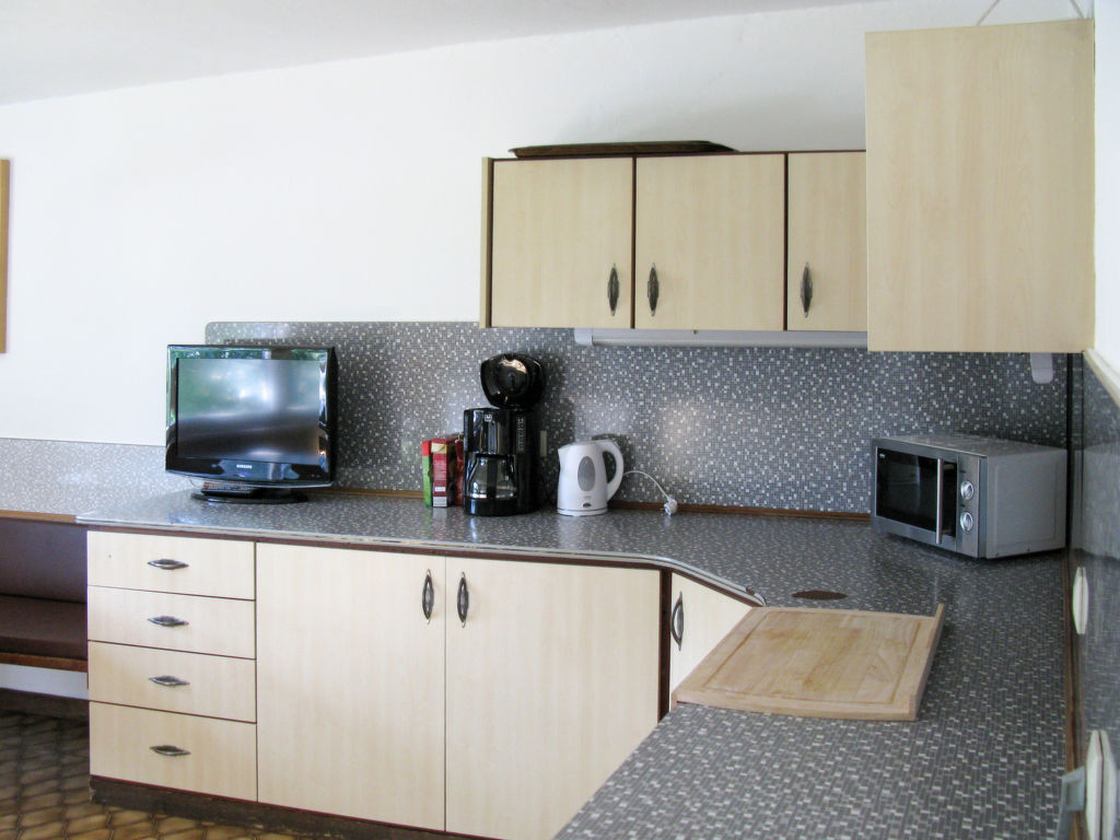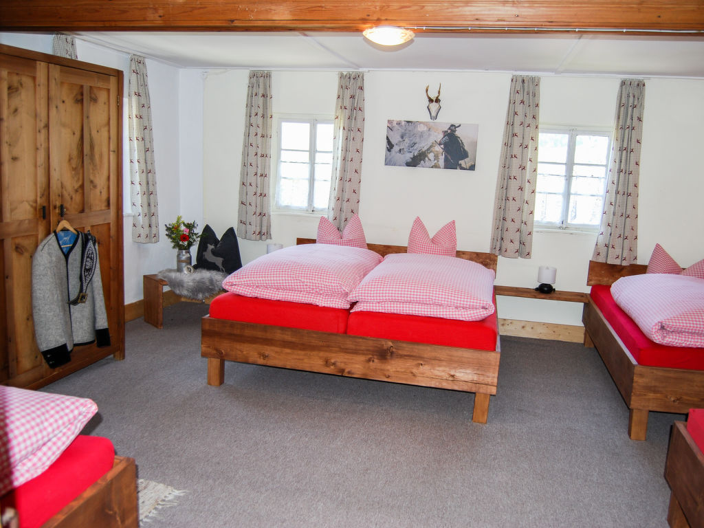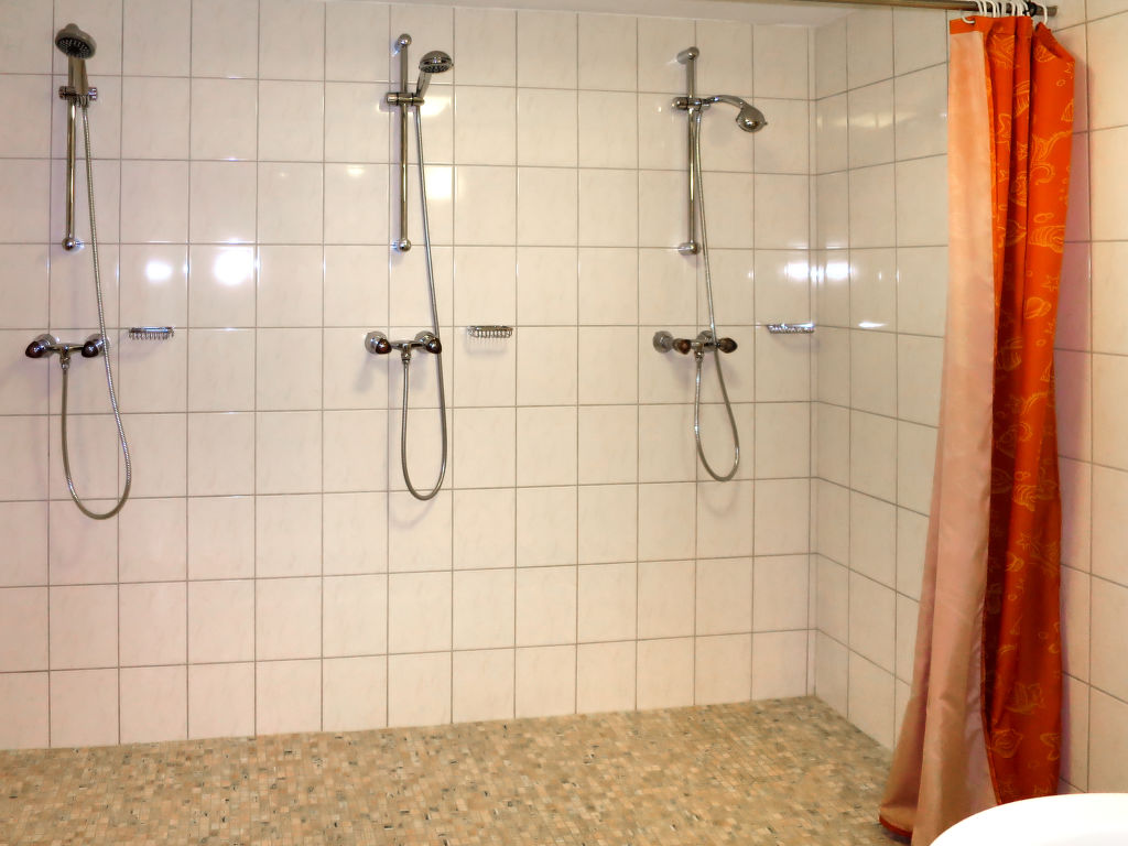 7-Zimmer-Haus, 2 Etagen, ca. 200 m². Erdgeschoss: Wohn-/Aufenthaltsraum mit Kachelofen und Essplätzen (Bänke). Küche (4 Platten, Holzherd, Backofen, Mikrowelle, Geschirrspüler, Kühlschrank, 2x Kaffeemaschine, Wasserkocher) mit Essplatz für 6 Personen. Bad/WC. Gemeinschaftsduschraum (3 Duschen). Sep.WC. 1. Etage: Schlafzimmer mit Doppelbett und Einzelbett. 2 Schlafzimmer, jeweils mit Doppelbett und 2 Einzelbetten. Schlafzimmer mit Doppelbett und 3 Einzelbetten. Dreibettzimmer. Großes Schlafzimmer mit 2 Doppelbetten und 2 Einzelbetten.