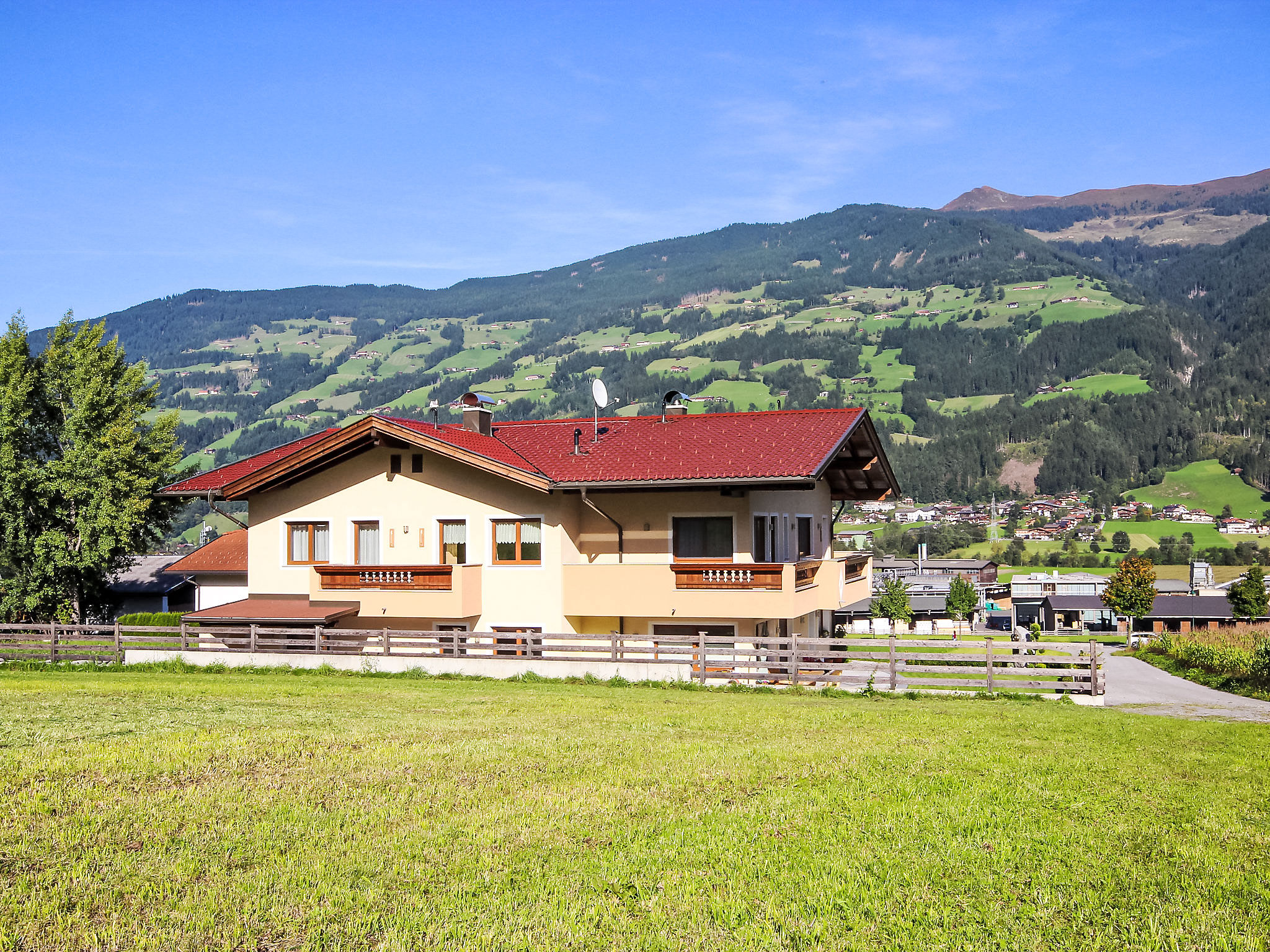 Fügen: Modernes, komfortables Zweifamilienhaus "Christian", Baujahr 2010, umgeben von Wiesen. 500 m vom Zentrum von Fügen, ruhige, sonnige Lage, 4.7 km vom See, 900 m vom Skigebiet. Im Hause: Wireless LAN, Zentralheizung. Zufahrt bis zum Haus. Parkplatz beim Haus. Supermarkt, Restaurant 100 m, Freibad 300 m, Thermalbad "Erlebnistherme Zillertal" 300 m, Badesee "Schlitterer See" 4.7 km. Golfplatz (18 Loch) 2 km, Tennis 400 m, Gondelbahn 900 m, Skibushaltestelle 150 m, Skischule 900 m, Schlittelbahn 1.5 km, Langlaufloipe 400 m, Eisfeld 100 m. Bekannte Skigebiete sind gut erreichbar: Spieljoch 900 km, Kaltenbach - Hochfügen 6 km, Zillertal Arena 13 km. Bitte beachten: Gratis Skibus.