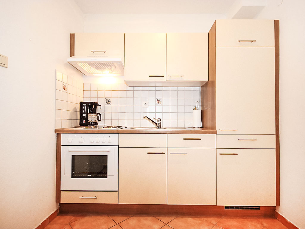 1-Zimmer-Wohnung 33 m2, im erhöhten Erdgeschoss. Gemütlich eingerichtet: Wohn-/Esszimmer mit 1 Doppelwandschrankbett, Kabel-TV und Radio. Küche (4 Kochplatten, Backofen). Dusche/WC. Balkon. Zur Verfügung: Telefon. Bitte beachten: Nichtraucher-Unterkunft. Maximal 1 Haustier/Hund erlaubt. Rauchmelder.