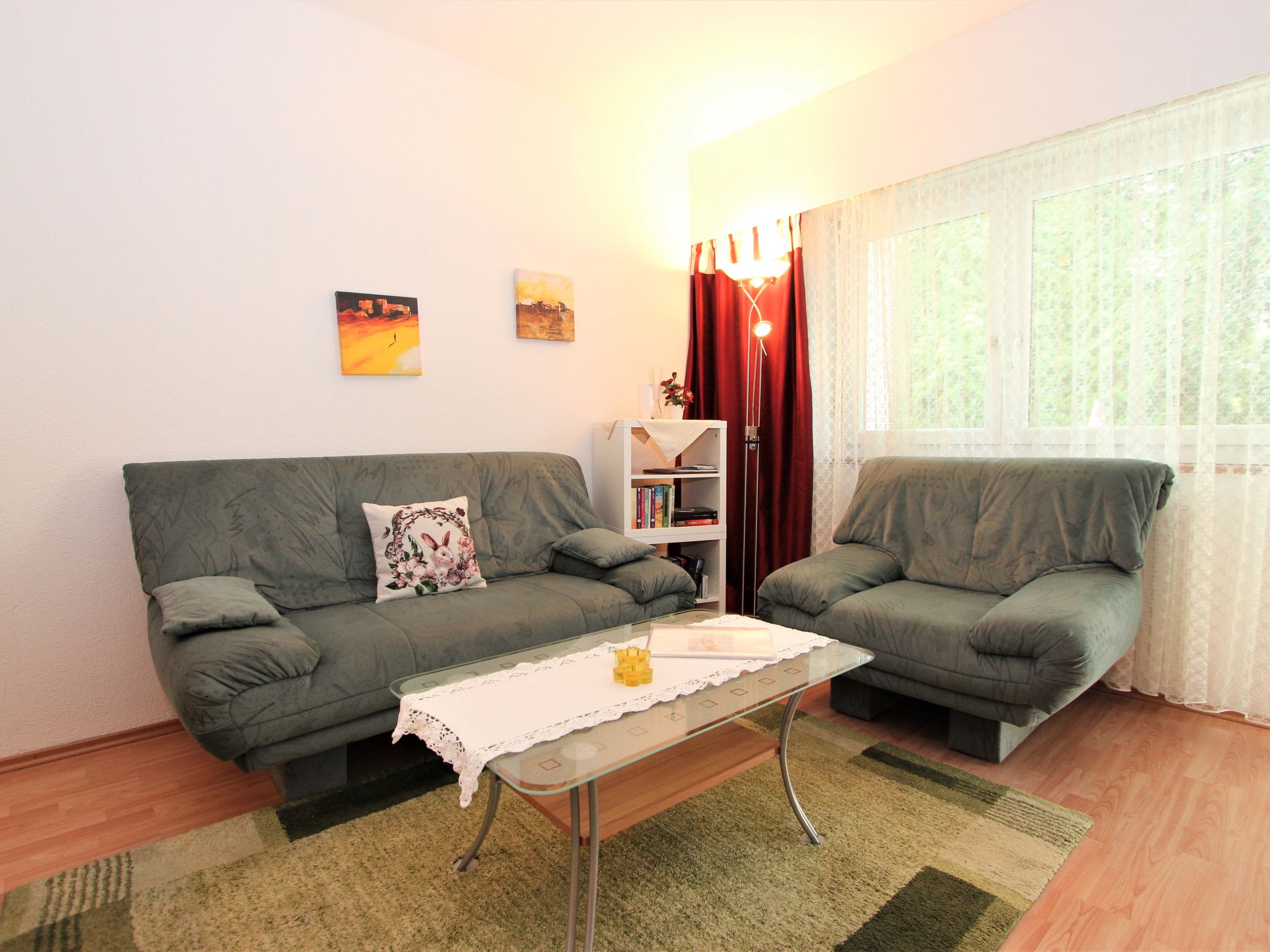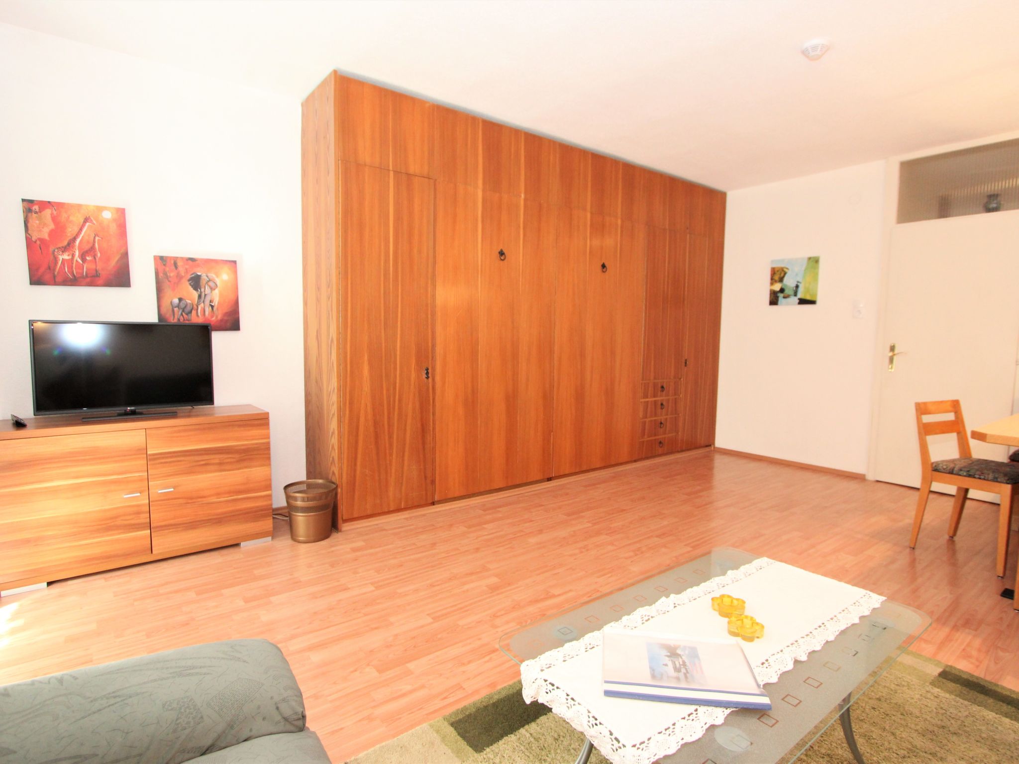 1-Zimmer-Wohnung 33 m2, im erhöhten Erdgeschoss. Gemütlich eingerichtet: Wohn-/Esszimmer mit 1 Doppelwandschrankbett, Kabel-TV und Radio. Küche (4 Kochplatten, Backofen). Dusche/WC. Balkon. Zur Verfügung: Telefon. Bitte beachten: Nichtraucher-Unterkunft. Maximal 1 Haustier/Hund erlaubt. Rauchmelder.