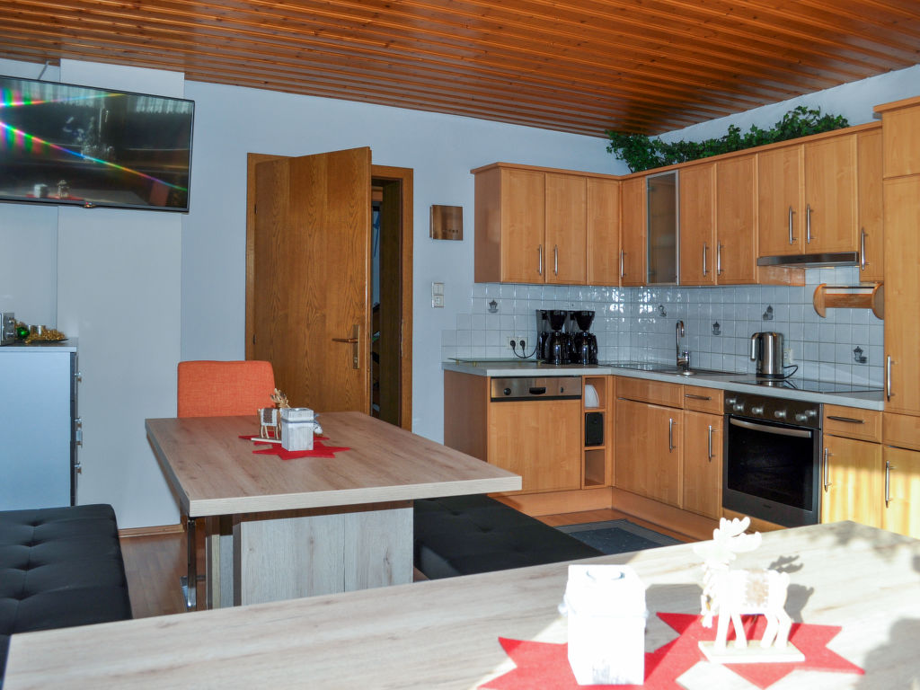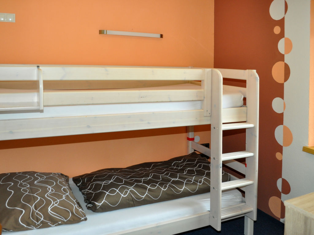 5-Zimmer-Wohnung, 2. Etage, ca. 100 m². Große Wohnküche (4 Ceranfelder, Backofen, Mikrowelle, Geschirrspüler, Kühlschrank, kleiner Gefrierschrank, Kaffeemaschine, Wasserkocher, Toaster) mit Essplatz. 3 Doppelzimmer. Schlafzimmer mit Etagenbett. 2x Dusche/WC.