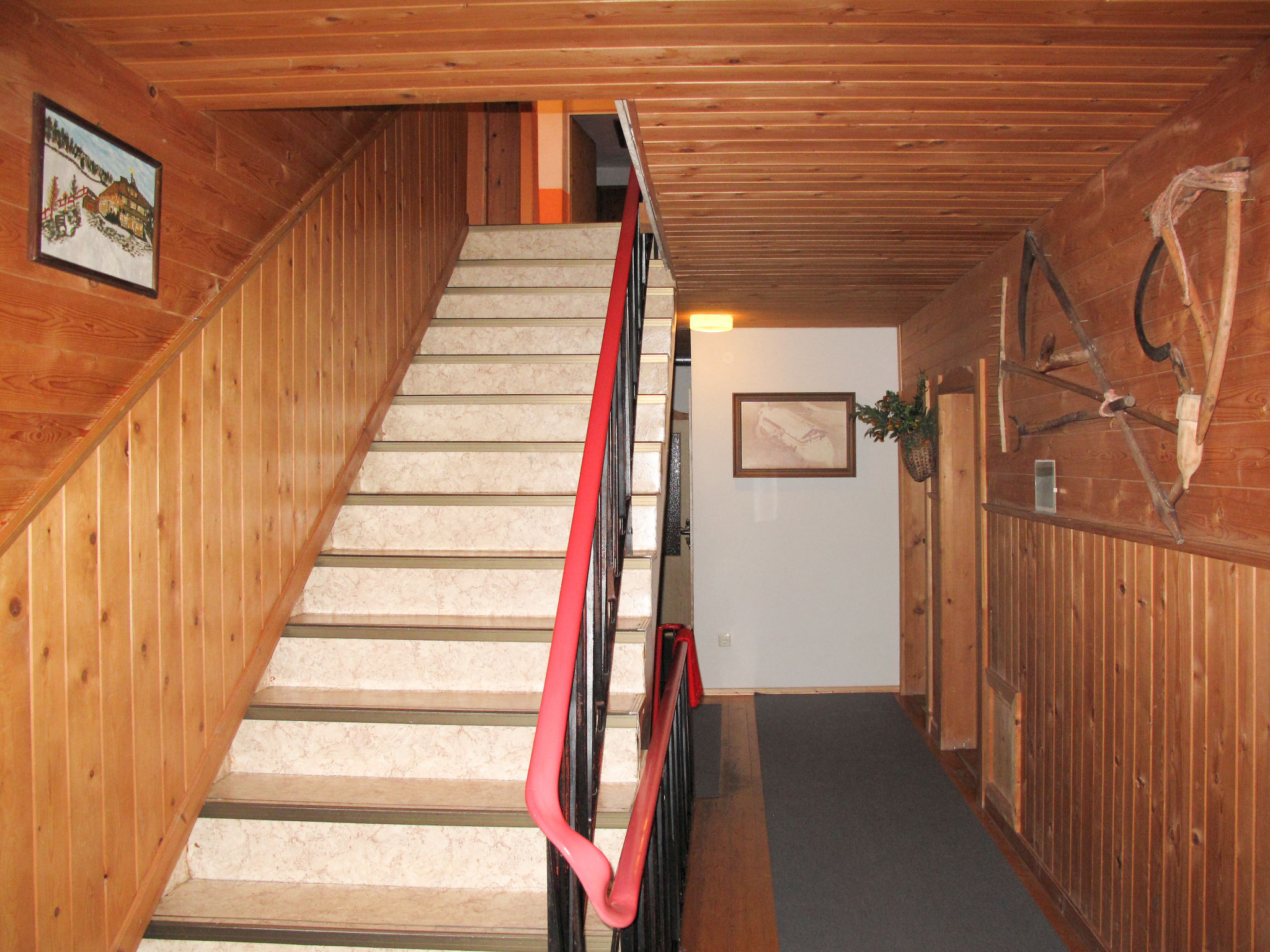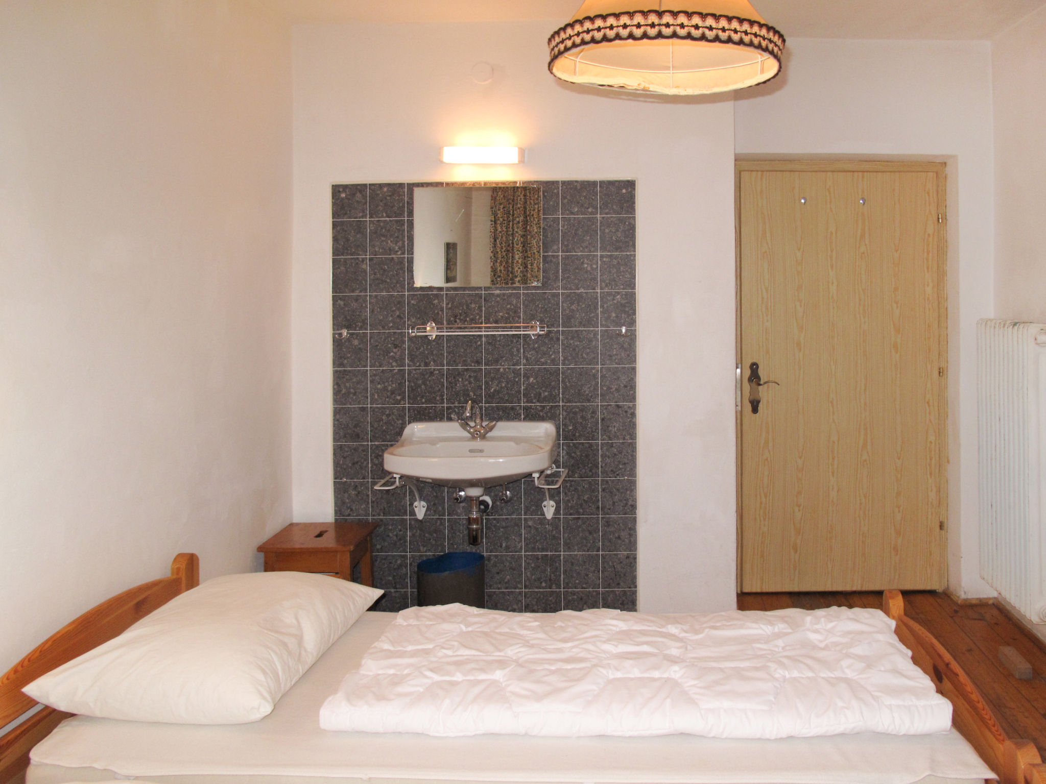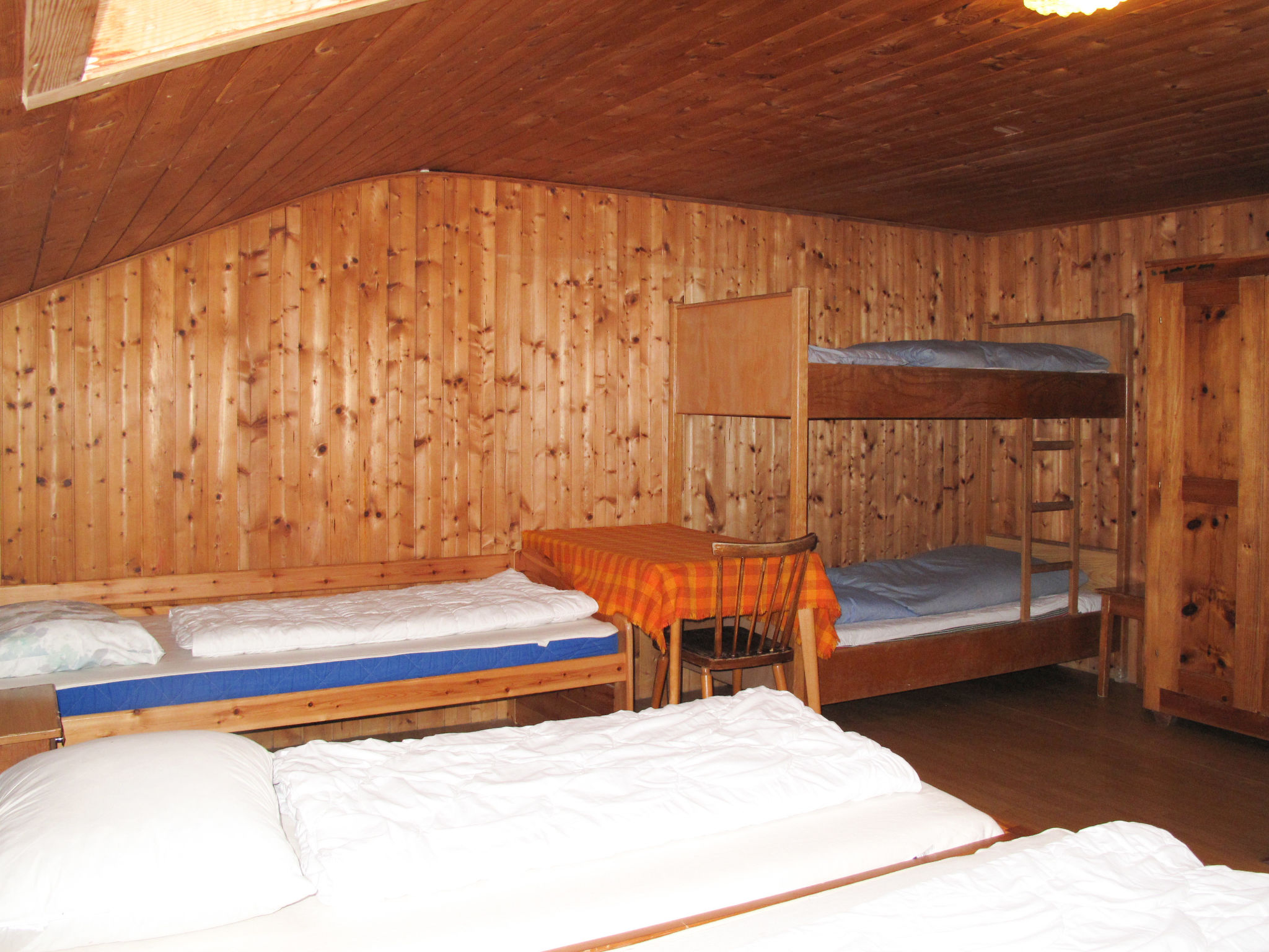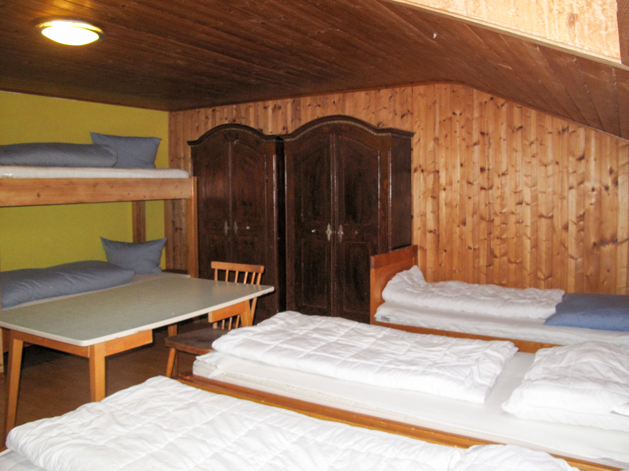 13-Zimmer-Haus, 3 Etagen, ca. 300 m². Erdgeschoss: Eingang in Flur/Treppenhaus. Großer Aufenthaltsraum (ca. 65 m²) mit Kachelofen (Holz inklusive), Sat-TV, zahlreichen Essplätzen (Eckbänke), Theke und Küchenzeile (4 Platten-Großküchenherd, Backofen, Geschirrspüler, 2 Kühlschranke, 1 große und 1 kleine Kaffeemaschine, Wasserkocher, Toaster, Aufschnittmaschine). 2x sep. WC. 1. Etage: Flur. Doppelzimmer. 2 Doppelzimmer, jeweils mit Dusche. Schlafzimmer mit Doppelbett und Etagenbett. Schlafzimmer mit 2 Einzelbetten und Etagenbett. Duschraum mit 4 abgetrennten Duschen. 2x sep. WC. Dachgeschoss: Flur. Zweibettzimmer (ohne Waschbecken). Doppelzimmer. Dreibettzimmer. Vierbettzimmer. Schlafzimmer mit 2 Einzelbetten und Etagenbett. 2 Schlafzimmer, jeweils mit 4 Einzelbetten und Etagenbett. 2x sep. WC. Im Untergeschoss 2 Duschen und Vorratskeller mit Gefriertruhe. Bei Belegung mit weniger Personen als der maximalen Personenzahl stehen nicht alle Schlafzimmer zur Verfügung.