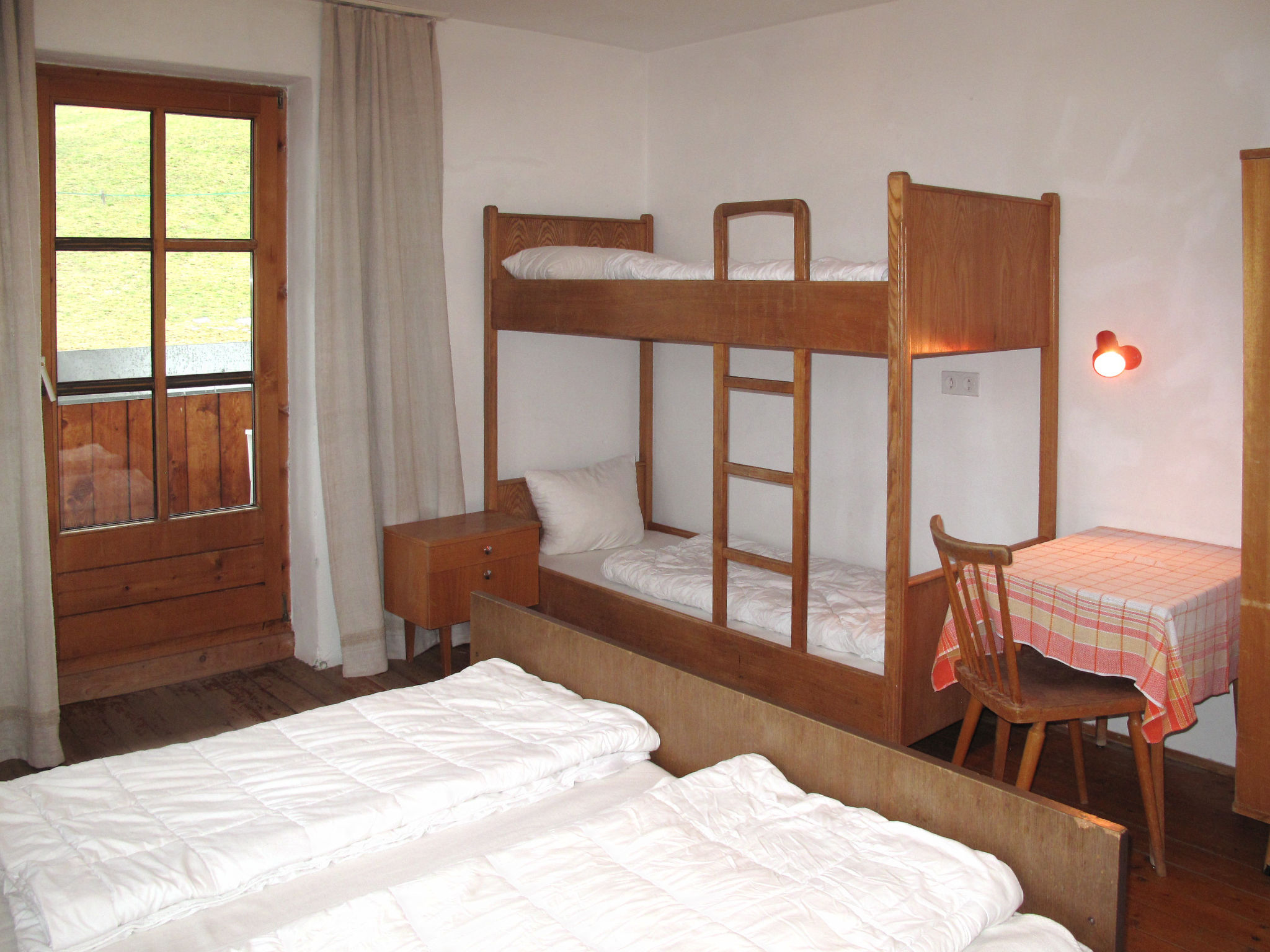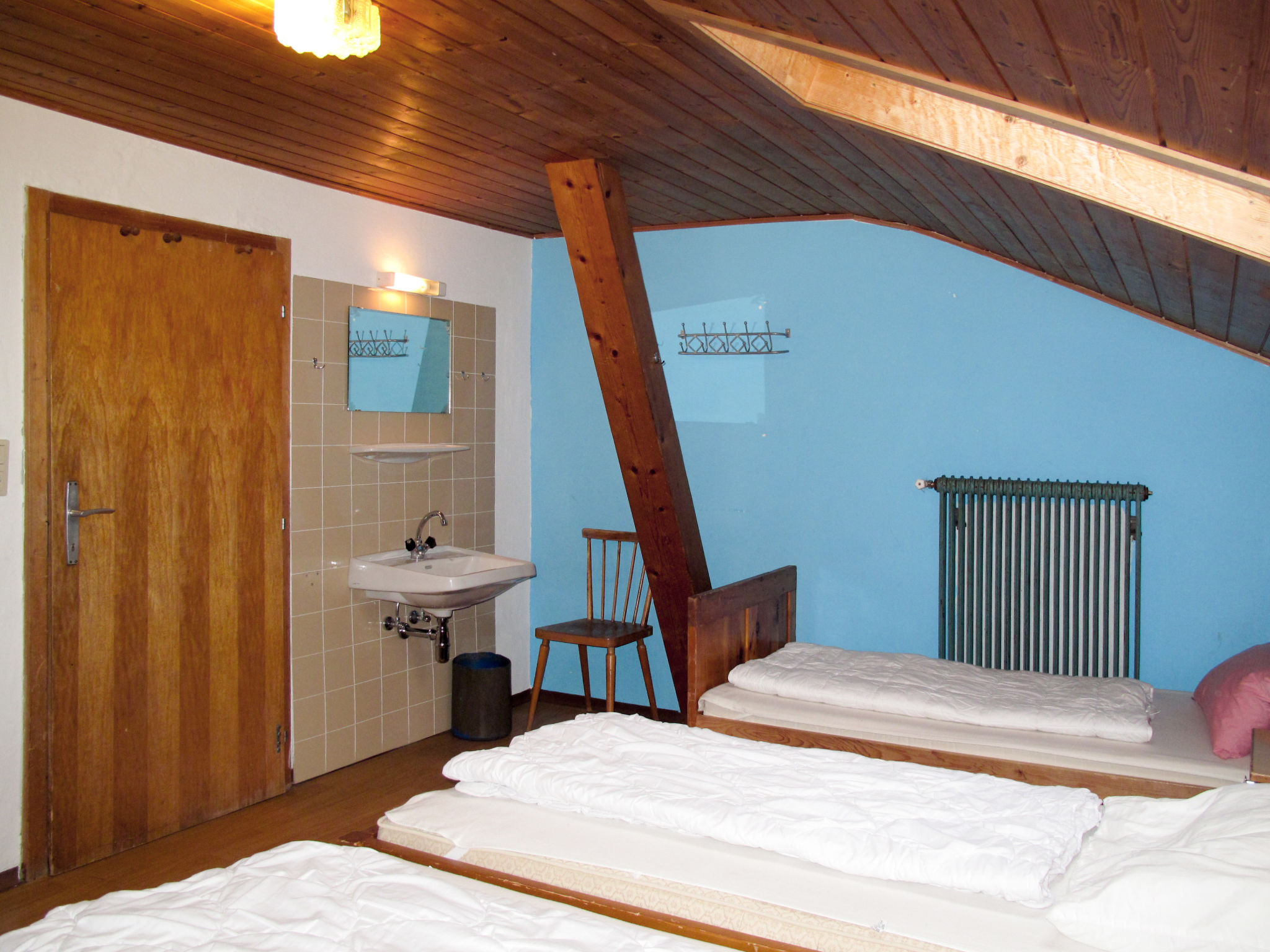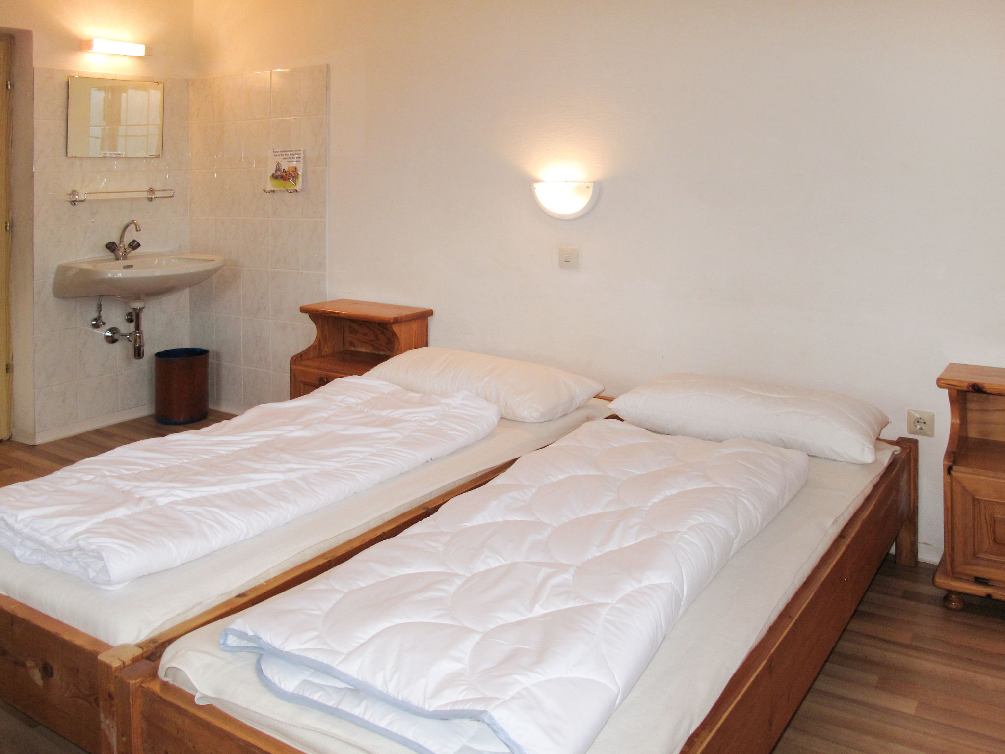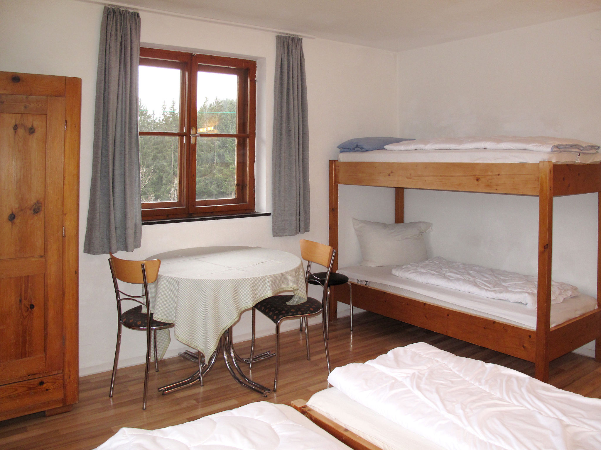13-Zimmer-Haus, 3 Etagen, ca. 300 m². Erdgeschoss: Eingang in Flur/Treppenhaus. Großer Aufenthaltsraum (ca. 65 m²) mit Kachelofen (Holz inklusive), Sat-TV, zahlreichen Essplätzen (Eckbänke), Theke und Küchenzeile (4 Platten-Großküchenherd, Backofen, Geschirrspüler, 2 Kühlschranke, 1 große und 1 kleine Kaffeemaschine, Wasserkocher, Toaster, Aufschnittmaschine). 2x sep. WC. 1. Etage: Flur. Doppelzimmer. 2 Doppelzimmer, jeweils mit Dusche. Schlafzimmer mit Doppelbett und Etagenbett. Schlafzimmer mit 2 Einzelbetten und Etagenbett. Duschraum mit 4 abgetrennten Duschen. 2x sep. WC. Dachgeschoss: Flur. Zweibettzimmer (ohne Waschbecken). Doppelzimmer. Dreibettzimmer. Vierbettzimmer. Schlafzimmer mit 2 Einzelbetten und Etagenbett. 2 Schlafzimmer, jeweils mit 4 Einzelbetten und Etagenbett. 2x sep. WC. Im Untergeschoss 2 Duschen und Vorratskeller mit Gefriertruhe. Bei Belegung mit weniger Personen als der maximalen Personenzahl stehen nicht alle Schlafzimmer zur Verfügung.
