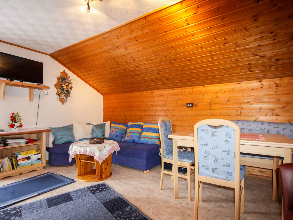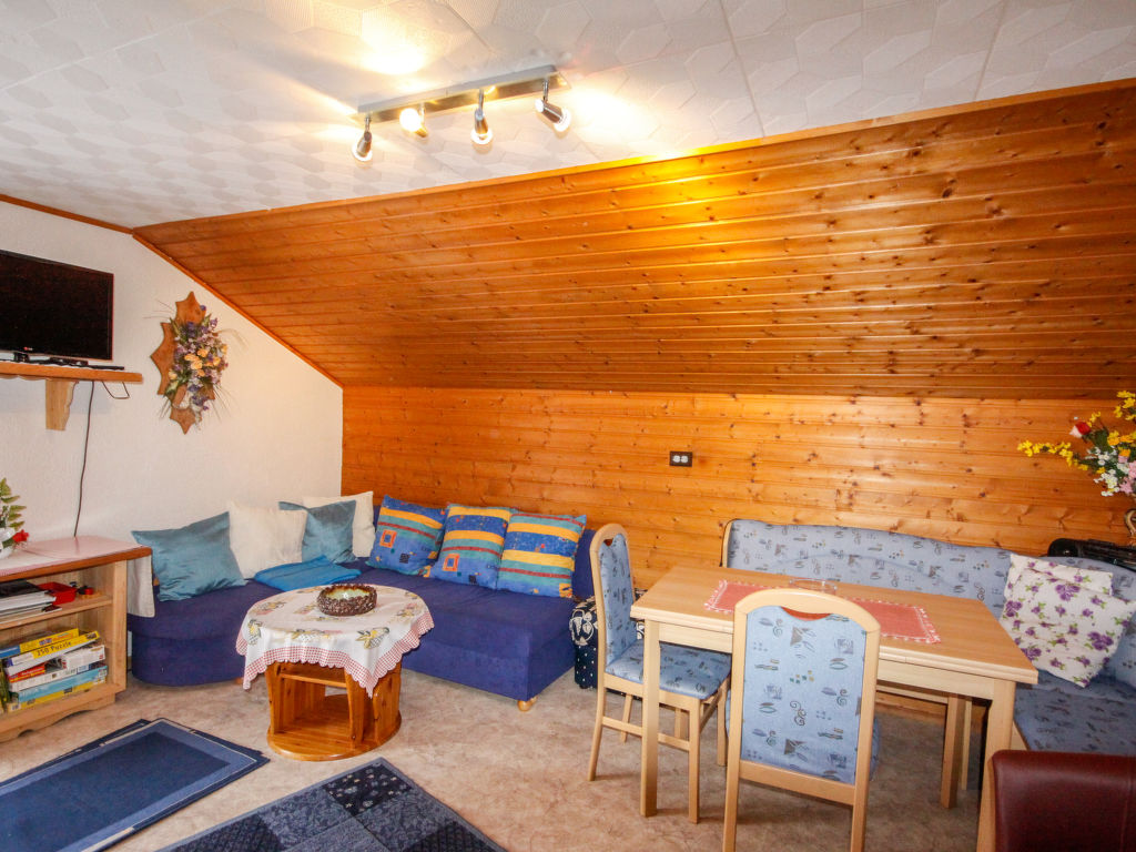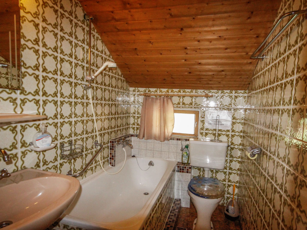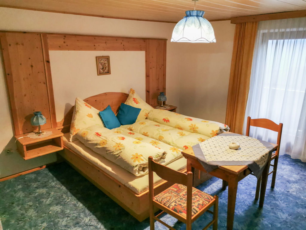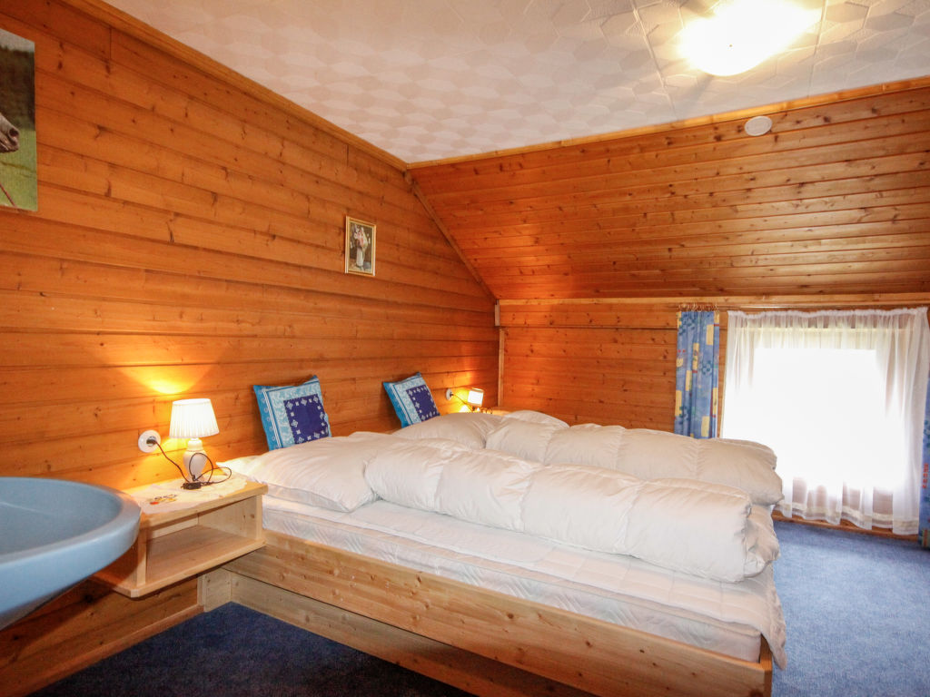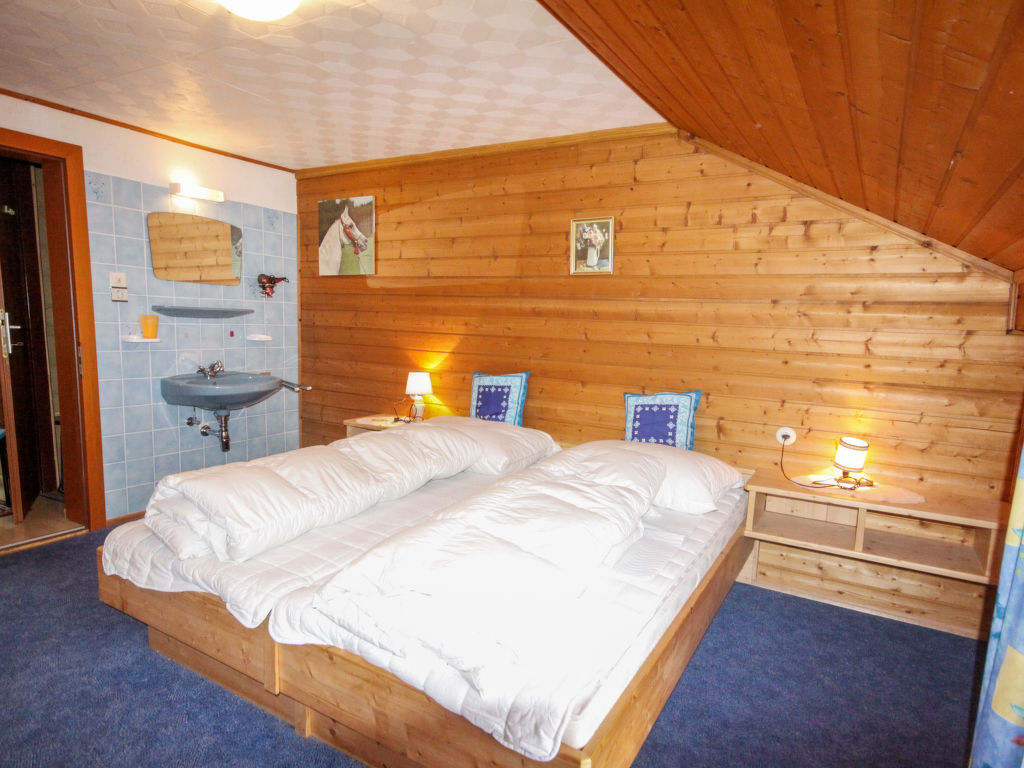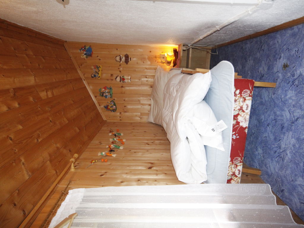 3-Zimmer-Wohnung 80 m2, im Obergeschoss. Teilweise abgeschrägt, gemütlich eingerichtet: Wohn-/Esszimmer mit 1 Diwanbett, Küchenblock und Sat-TV. Ausgang zum Balkon. 1 Doppelzimmer mit 1 Doppelbett und Waschbecken. Ausgang zum Balkon. 1 abgeschrägtes kleines Kinderzimmer mit 1 Bett. 1 abgeschrägtes Doppelzimmer mit 1 Doppelbett und Waschbecken. (Backofen, Geschirrspüler, 4 Glaskeramikherd Platten, Toaster, Wasserkocher, Mikrowelle, elektrische Kaffeemaschine). Bad/WC, Dusche. Parkettböden. Terrassenmöbel, Gartengrill. Fernsicht auf die Berge und das Tal. Zur Verfügung: Internet (Wireless LAN, gratis). Bitte beachten: Nichtraucher-Unterkunft. Eigener Eingang.