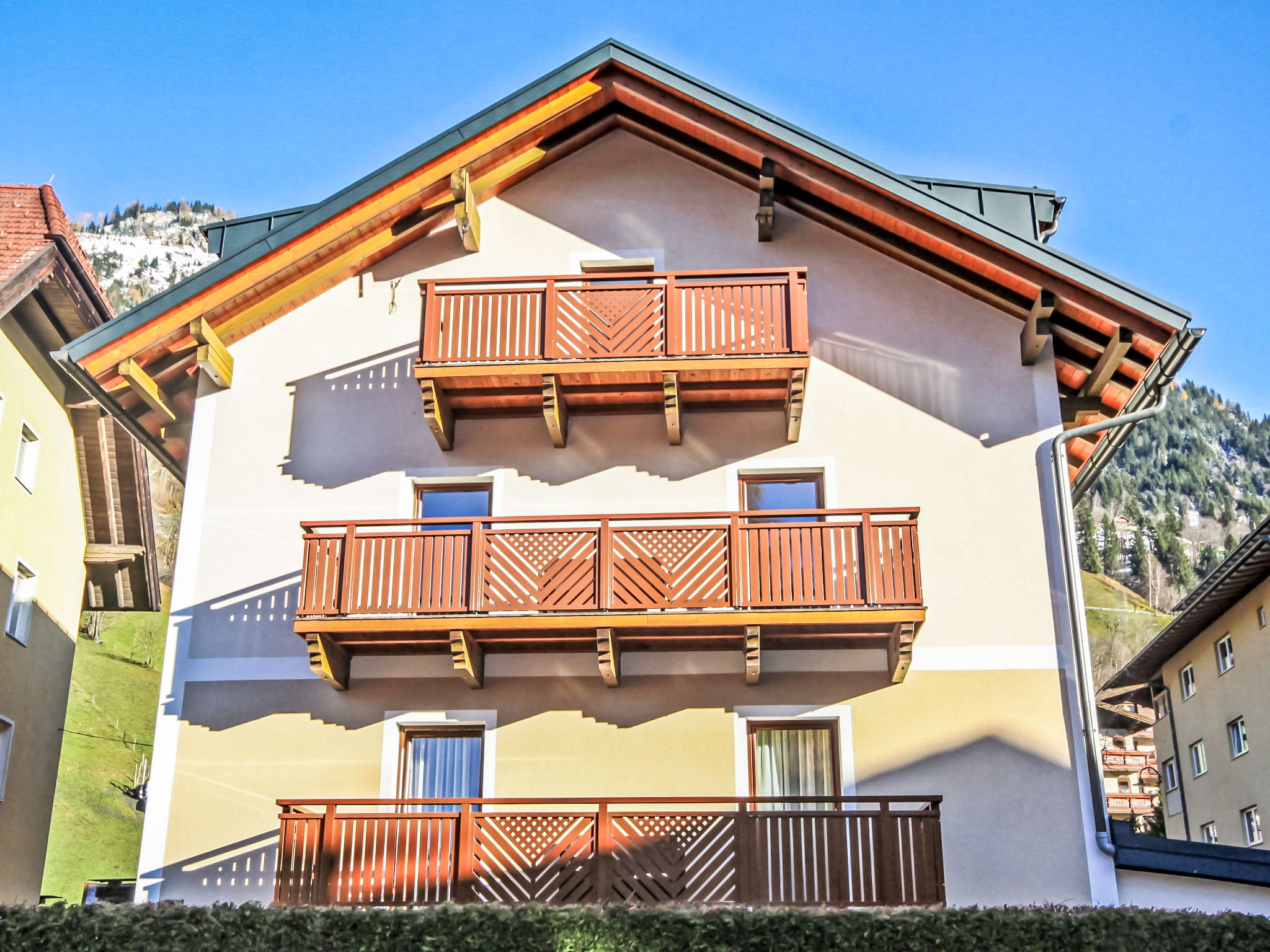 Gemütliches Mehrfamilienhaus "Sattlerweg", auf 3 Stockwerken, renoviert im Jahre 2017. Im Ortszentrum von Bad Hofgastein, 300 m vom Zentrum, ruhige Lage, 2.5 km vom Skigebiet. Zur Alleinbenutzung: Garten 40 m2 (nicht eingezäunt). Im Hause: Einstellraum für Fahrräder, Skiraum. Zufahrt bis zum Haus. Parkplatz beim Haus. Einkaufsgeschäft 600 m, Lebensmittelgeschäft, Supermarkt 950 m, Café, Fußgängerzone, Biergarten 500 m, Freibad 1.1 km, Hallenbad 1.1 km, Thermalbad "Alpentherme" 1.1 km. Golfplatz (18 Loch) 6 km, Wanderwege ab Haus 10 m, Skisportanlagen 2.5 km, Skiverleih 2.5 km, Skischule 2.5 km. Bekannte Skigebiete sind gut erreichbar: Bad Hofgastein, Bad Gastein, Dorfgastein. Wandergebiete: Hohe Tauern.