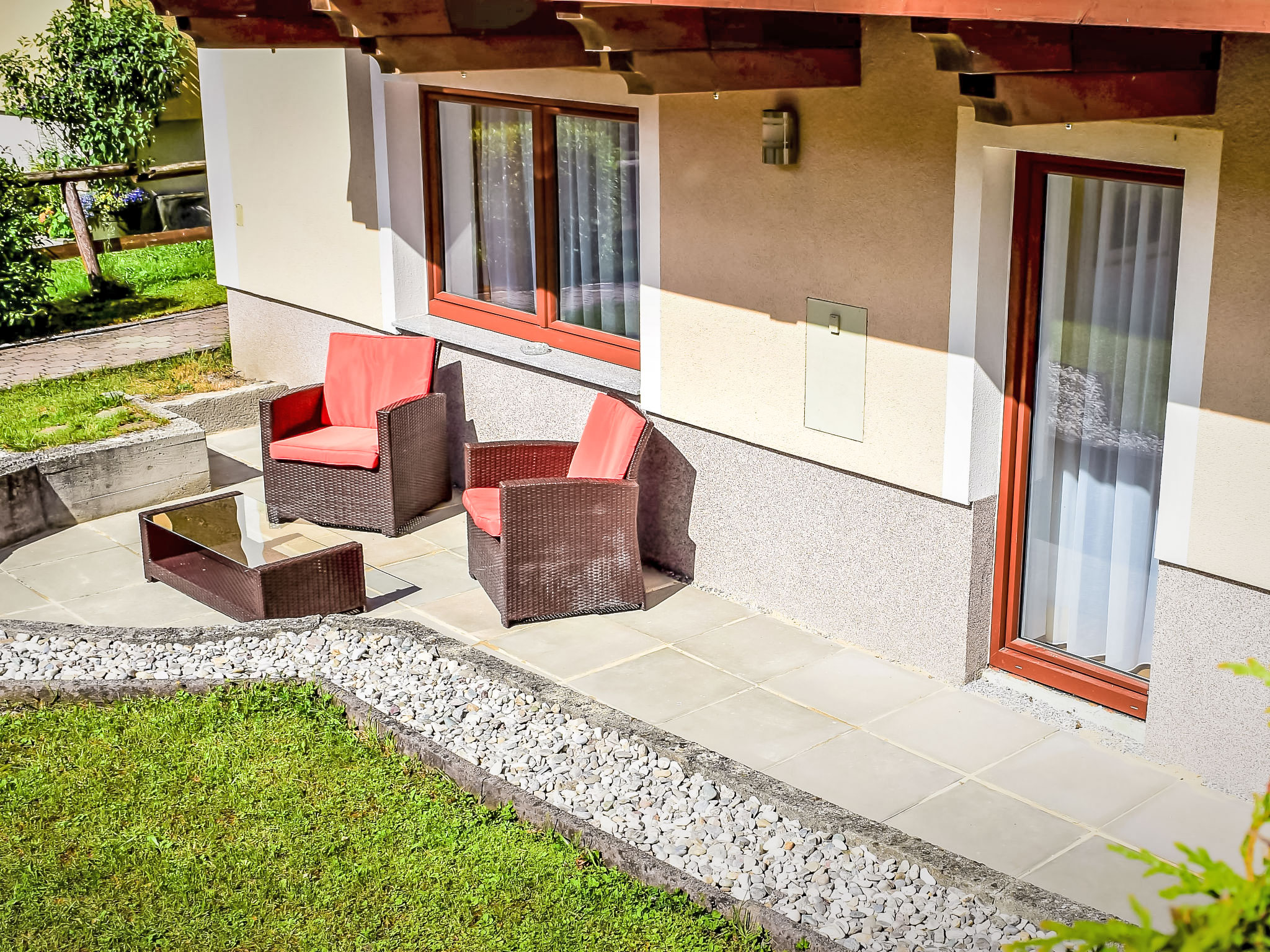 "Sattlerweg", 2-Zimmer-Wohnung 50 m2, im Erdgeschoss. Objekt geeignet für 3 Erwachsene. Modern eingerichtet: Eingang. 1 Doppelzimmer. Wohn-/Schlafzimmer mit 1 Diwanbett (130 cm, Länge 190 cm), Esstisch und Sat-TV (Flachbildschirm), Radio. Ausgang zur Terrasse. Offene Küche (Backofen, Geschirrspüler, 4 Glaskeramikherd Platten, Toaster, Wasserkocher, Tiefkühler, elektrische Kaffeemaschine, Kapseln für die Kaffeemaschine (Nespresso)). Dusche/WC. Kleine Terrasse. Terrassenmöbel. Sicht auf die Ortschaft. Zur Verfügung: Internet (Wireless LAN, gratis). Bitte beachten: Nichtraucher-Unterkunft. 50402-000629-2020
