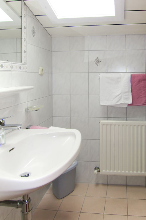 6-Zimmer-Wohnung, 2 Etagen, ca. 148 m². 1. Etage: Flur. Schlafzimmer mit Doppelbett, Einzelbett, Dusche/WC. Doppelzimmer mit Dusche/WC, Balkonausgang. 2. Etage (Dachgeschoss): Aufenthaltsraum (Dachfenster) mit großem Essplatz (Eckbank). Küche (4 Ceranfelder, Backofen, Mikrowelle, Geschirrspüler, Kühlschrank, 2 Kaffeemaschinen, Kaffeekapselmaschine, Wasserkocher, Toaster). Doppelzimmer mit Dusche/WC, Südbalkon. Weiteres Doppelzimmer mit Dusche/WC. Doppelzimmer mit Dusche/WC und Südbalkon. Sep.WC.